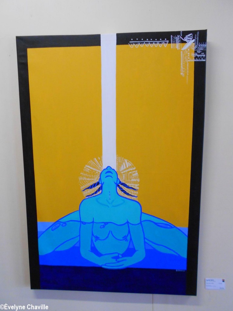 A. D. : Le public est timide, pour l’instant, parce que ce n’est pas un lieu d’exposition classique, ni habituel, ce n’est que la deuxième exposition donc les gens n’ont pas encore d’habitude mais au vernissage, il y a eu beaucoup d’invités, beaucoup d’artistes de la région qui sont venus. Je n’ai pas le bilan comptable du nombre de passages parce que je ne suis pas là tous les jours, vivant au Gosier, je suis là une fois par semaine mais ce sont de belles rencontres et c’est nécessaire. Je pense que même si je ne suis pas là, les toiles parlent d’elles-mêmes, j’ai des mots sur le livre d’or, parfois des gens me laissent des numéros de téléphone pour que je puisse les contacter lors d’une prochaine exposition, pour pouvoir me suivre.