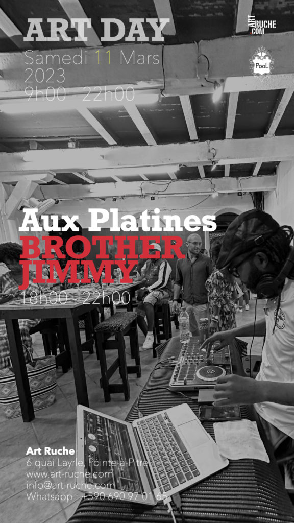 Entre 18h00 et 22h00, Brother Jimmy – ancien présentateur de l’émission B World Connection consacrée à la diaspora noire et membre du collectif “Karukéra Sound System” – assurera l’animation musicale de la manifestation artistique.