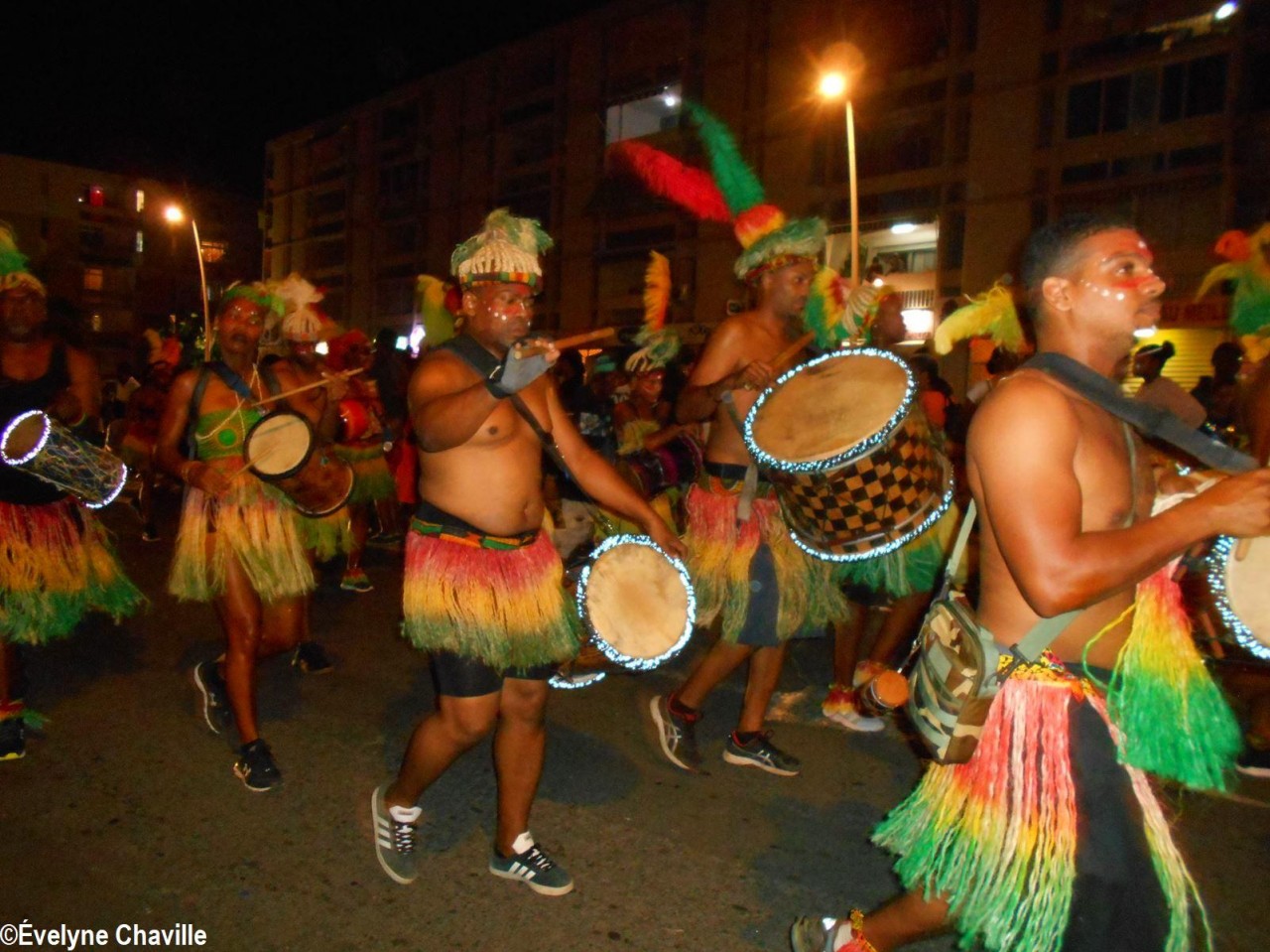 Le dimanche 2 février dernier, on a pu voir ces costumes qui libèrent le corps lors du défilé nocturne des “groupes à peau” dans les rues de Pointe-à-Pitre, seuls deux ou trois groupes portaient des tenues plus conventionnelles…