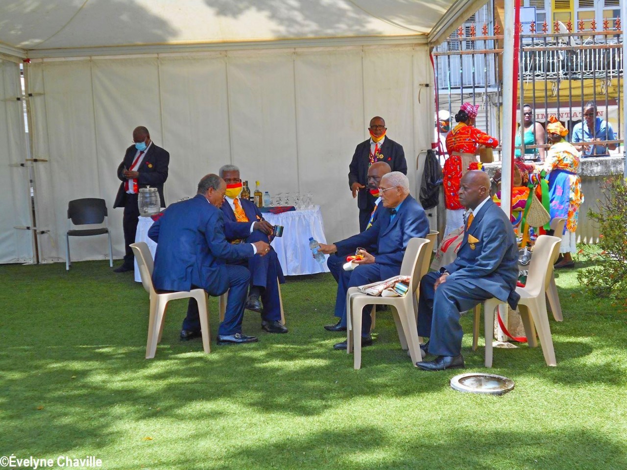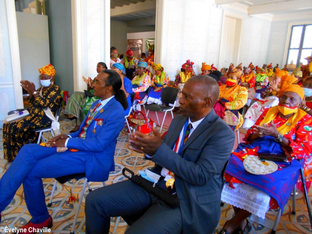 Après la messe qui s’est terminée vers 13h00, les Cuisinières n’ont pas oublié de distribuer quelques gâteaux à la foule puis le cortège s’est dirigé vers le Pavillon de la Ville situé à quelques mètres de là où tout le monde a été arrosé de rhum en guise de bienvenue mais la foule n’était pas conviée… Rony Théophile, le président de l’association “Les Cuisinières de la Guadeloupe” qui avait déjà remercié tous les participants à l’église a invité les personnalités présentes à prendre la parole, tous ont souhaité préserver le patrimoine culinaire de l’archipel. Vers 14h00, il a commencé à officier la cérémonie d’intronisation de nouveaux membres…