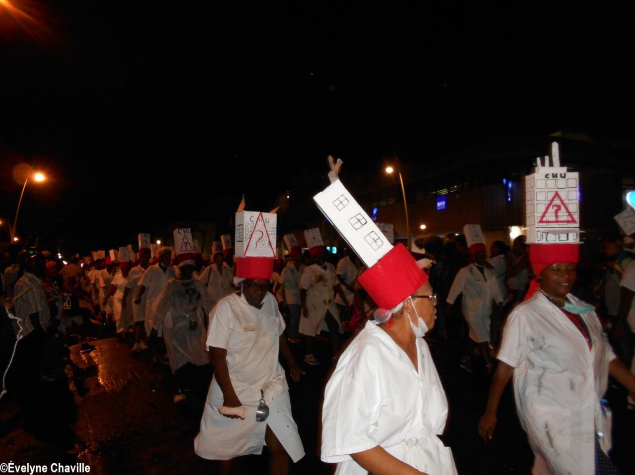 El domingo 14 de enero, muchos grupos habían sido invitados a participar en dos grandes desfiles que tuvieron lugar en dos municipios de la isla de Guadalupe : “La Grande Parade Carnavalesque” en Goyave y “Masanblaj” en Sainte-Anne. Sin embargo, algunos grupos de carnaval de la zona metropolitana de Pointe-à-Pitre y Les Abymes entre los cuales los grupos con piel (Akiyo, Mas Ka Klé, Nasyon a Nèg Mawon, Klé la, VIM, Moun Ki Moun etc.), el grupo con caja, Toumblack, (una de las asociaciones de carnaval más antiguas del Departamento que celebra este año sus 40 años de existencia) o el grupo de pequeños Mas o “Ti Mas” (llamado así porque se compone de jóvenes), Mass LaPwent, se habían quedado para garantizar el espectáculo en la ciudad. La lluvia no desanimó a los amantes del carnaval o al público numeroso. Este desfile, durante el cual los grupos mostraron en particular su gran creatividad en los trajes, comenzó después de las 6:00 y continuó hasta bien entrada la noche. Los temas fueron, por ejemplo, la esclavitud, los problemas del Centro Hospitalario y Universitario de Guadalupe…