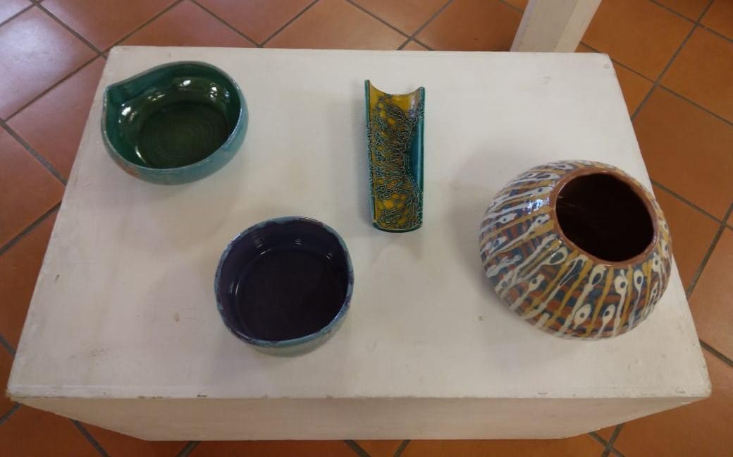 Otro espacio de la planta baja, antes reservado a una biblioteca más bien centrada en el Caribe y a una zona de lectura, fue ocupado por la joven asociación “Té et Difé”, que reúne a ceramistas escultores entre los cuales escultores de arcilla del archipiélago. Era una oportunidad para que sus miembros mostraran al público todo su conocimiento y creatividad. Se expusieron muchas piezas de diferentes tamaños: tazas, ollas, jarrones, cuencos, platos, jarras, figuritas, etc. Durante esta exposición, “Té et Difé” también organizó talleres de artes del fuego.