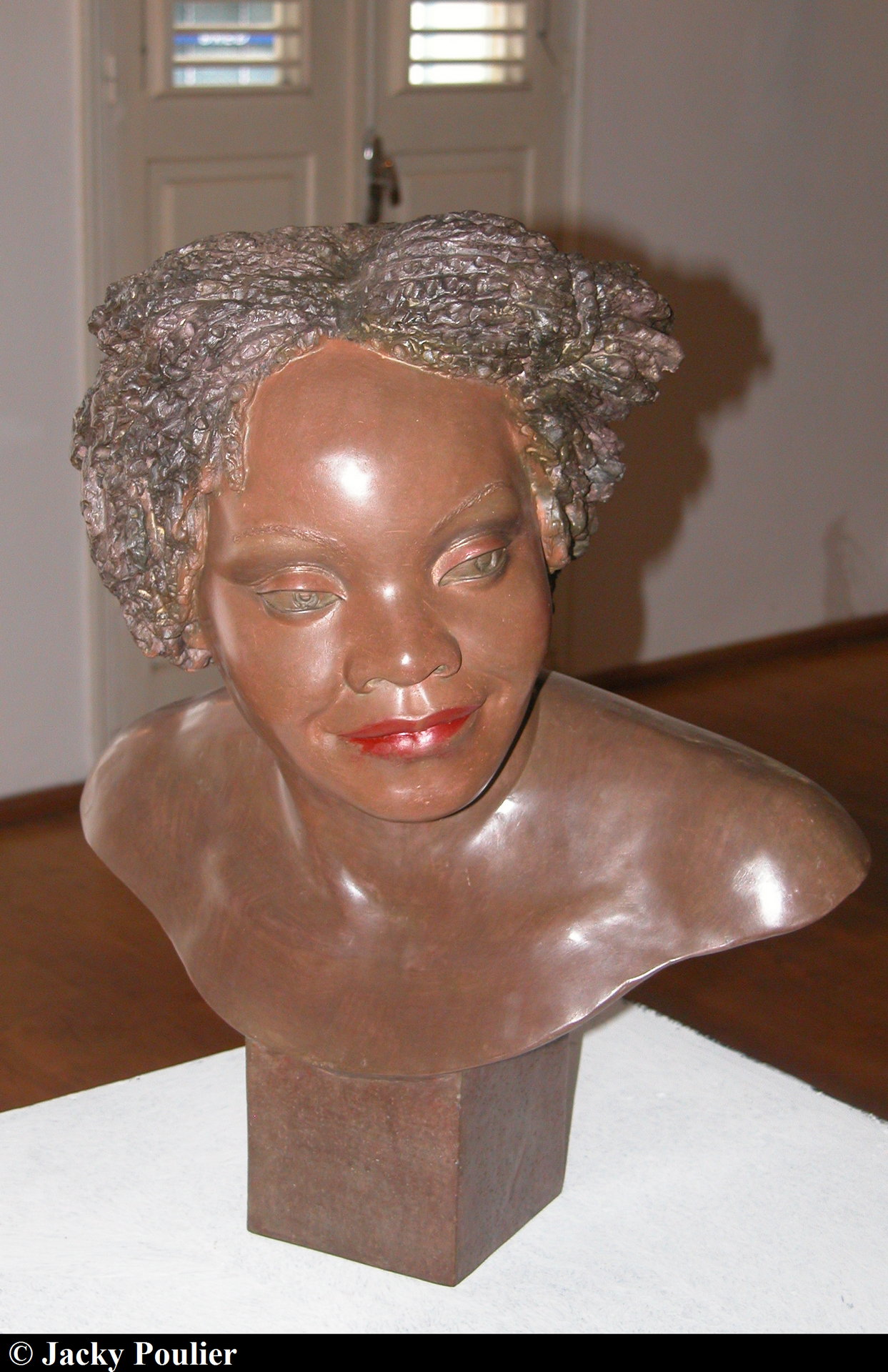 Jacky Poulier es un autodidacto. Adolescente, ha empezado a dibujar luego ha querido “descubrir la profundidad, las tres dimensiones de las cosas” experimentando la escultura. “He comenzado por el “Bois d’Inde” (Pimenta racemosa), una madera muy dura que esculpía con formones de carpintero. Después, he utilizado la arcilla que es muy frágil. Entonces, he adoptado la resina Epoxy que da tiempo para trabajarla. Pero, el material que prefiero es el bronce por su solidez extraordinaria”, explica Jacky Poulier.