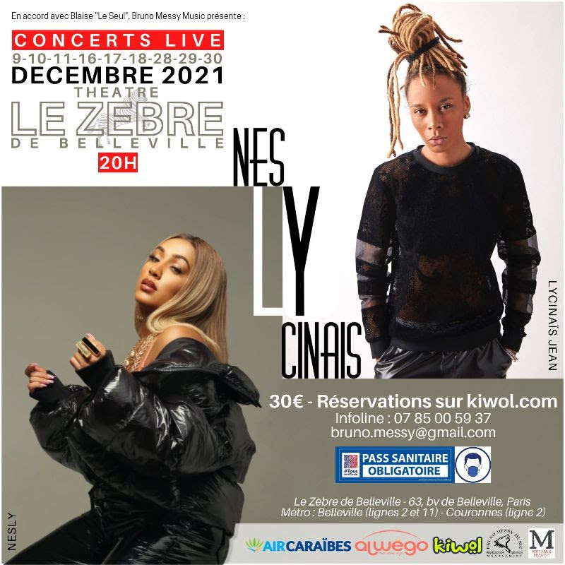 Si viven en Francia o están de visita en la capital, la cantante martinico-guadalupeña Lycinaïs Jean y la cantante guayano-martinico-egipcia Nesly les invitan al concierto inédito que organizan – en colaboración con Blaise “Le Seul” y Bruno Messy Music – en el teatro Le Zèbre de Belleville situado en el distrito 11° de París.