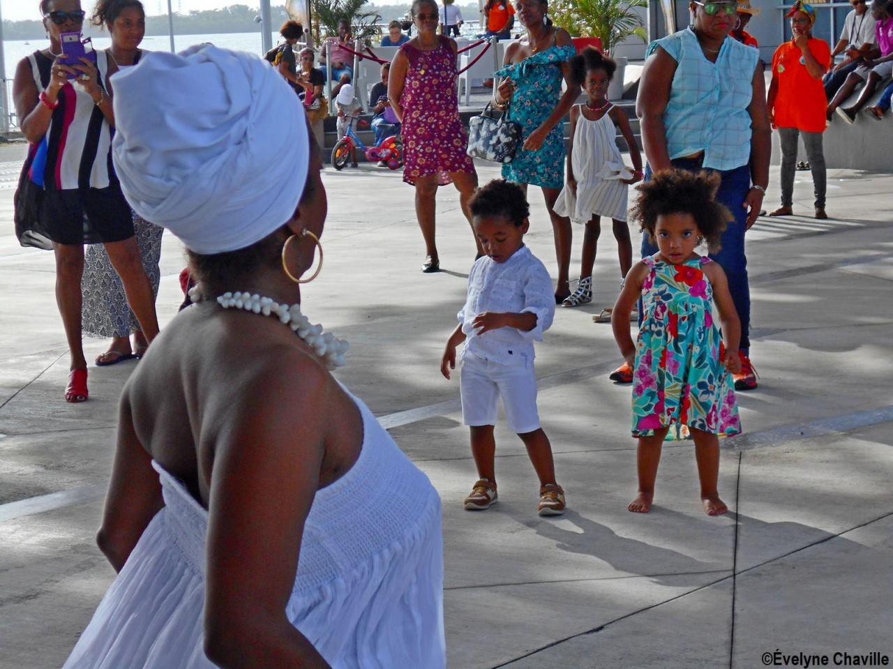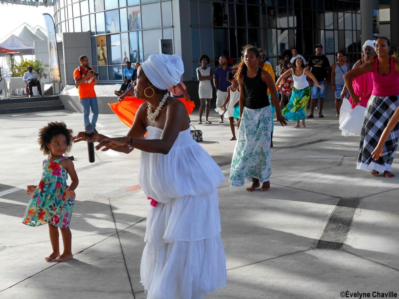 Durante casi una hora, la audiencia del Mémorial ACTe (las numerosas participantes y los espectadores) aprendió varios pasos del gwoka. Como siempre, los niños fueron sin duda los más motivados y no vacilaron en mostrar lo que habían aprendido durante esta iniciación. La muchedumbre admirativa aplaudió mucho sus actuaciones. Por desgracia, este “Kalakaswé” especial duró sólo una hora en lugar de las dos horas que se le dedica una vez al mes…