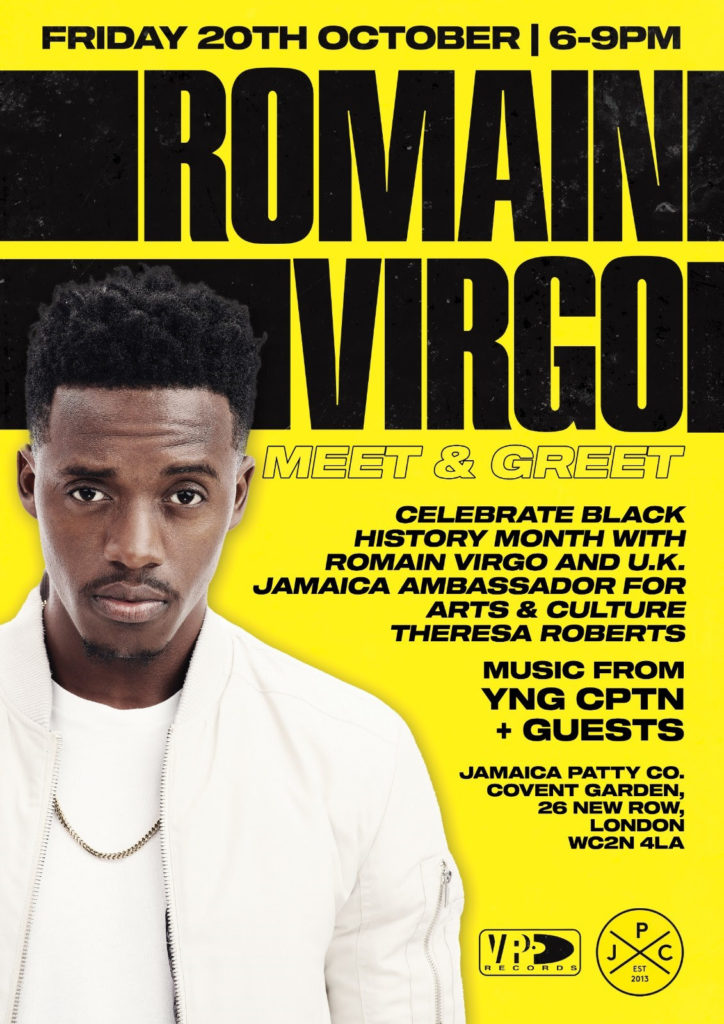 Para iniciar su gira por el Reino Unido y el lanzamiento de su nuevo sencillo “Switch You On”, Romain Virgo se unirá a la embajadora Theresa Roberts en el Jamaica Patty Co en Covent Garden para conocer a sus fans y celebrar el Mes de la Historia Negra.