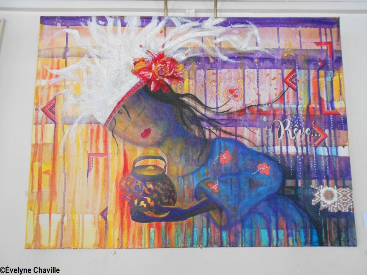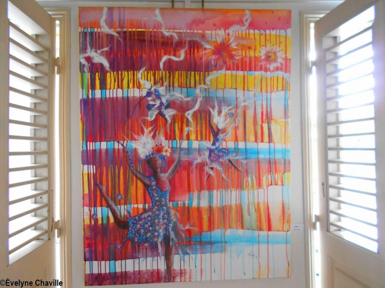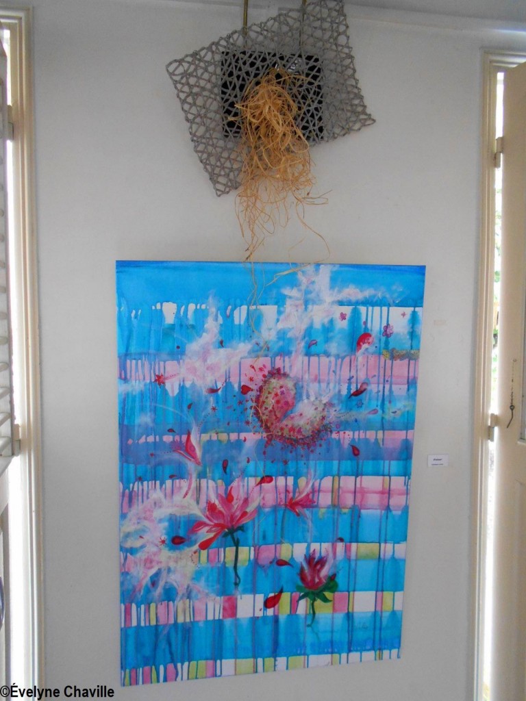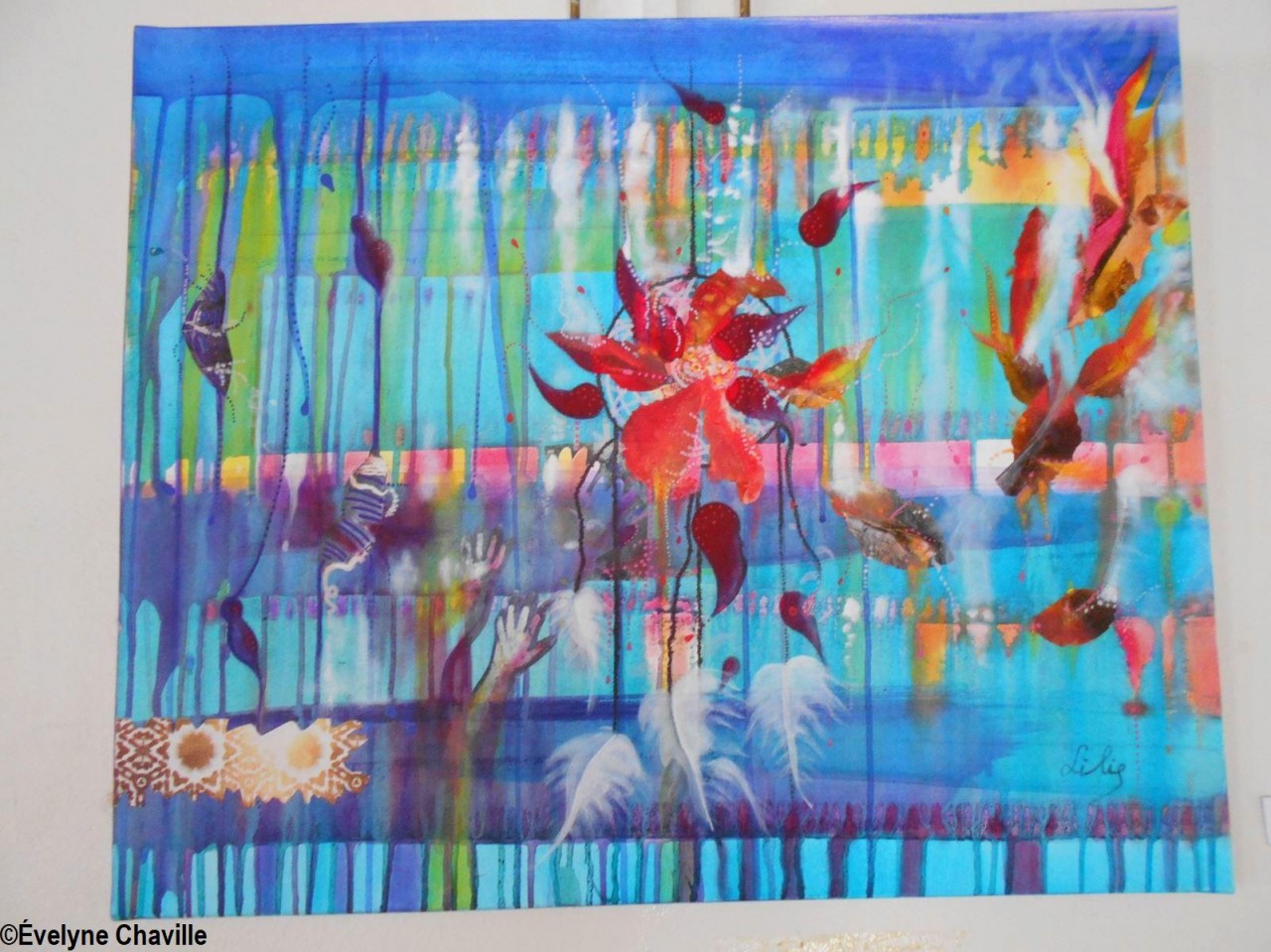 Aunque se sintió atraída por el dibujo y la pintura desde que era joven, aprendió a pintar hace más de veinte años en Guadalupe. “Tomé clases de pintura con una artista excepcional, Catherine Plugiesi-Conti. Durante sus clases, trabajé mucho la técnica”, dice. La artista se considera más como una artista visual, le gusta agregar varios materiales a sus obras, así fue como para esta exposición, “Les Féeries de Lilie”, utilizó papel de seda y fibras de coco.