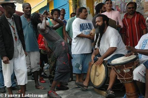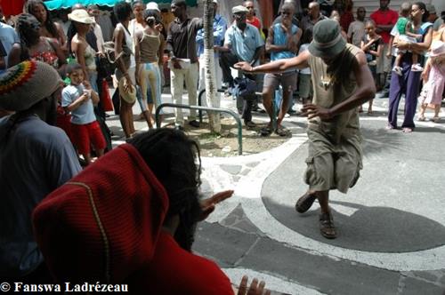 F.L. : Depuis 1988, je joue du ka dans la rue. Cela me permet, évidemment, d’être en contact avec le public. Jouer du ka dans la rue me donne de la force, jouer du ka dans la rue est aussi une forme de résistance. C’est un moyen de perpétuer l’oeuvre de “Vélo”, la tradition locale pour les enfants qui sont attirés pas tant de choses qui viennent d’ailleurs. Être à la rue piétonne de Pointe-à-Pitre tous les jours du lundi au samedi et sur la Place de la Victoire, le dimanche est une mission pour moi. Par ailleurs, je suis un artiste professionnel, je ne fais que de la musique.