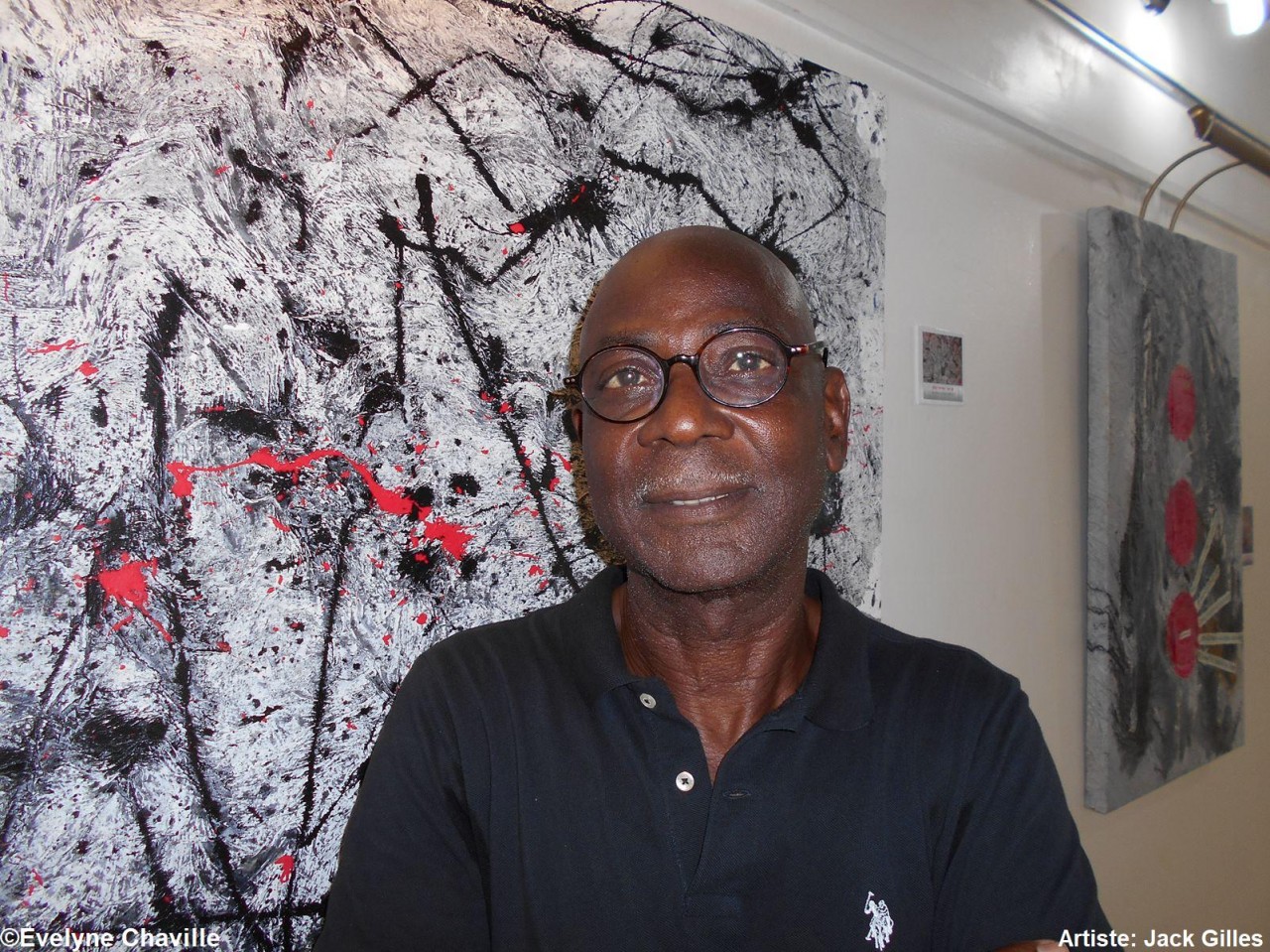 Jack Gilles: J’ai commencé à peindre à l’âge de 13 ans. Mon père qui était entrepreneur en bâtiment construisait la nouvelle maison familiale à Dugazon et il m’avait autorisé à peindre sur les murs de ma future chambre; j’avais dessiné la mer, des cocotiers et une plage. Ma première véritable exposition personnelle en Guadeloupe – “Émotions” – était en 2000 à l’OMCS de Sainte-Anne avec Didier Gillet. Avant les années 80, j’avais fait une exposition consacrée au tennis. Ma mère possède toujours une toile que j’avais faite très jeune, elle représente l’Allée Dumanoir à Capesterre Belle-Eau, avec l’arche qui existait toujours, à l’époque.