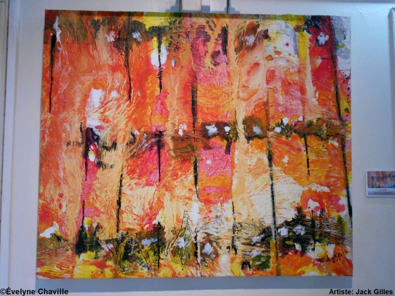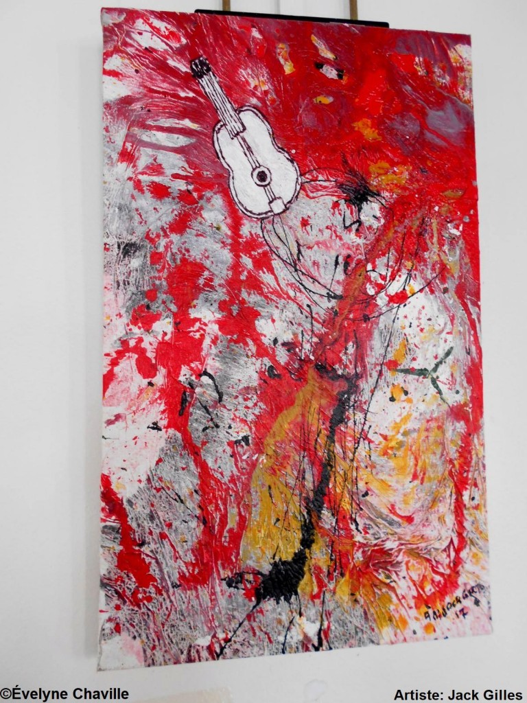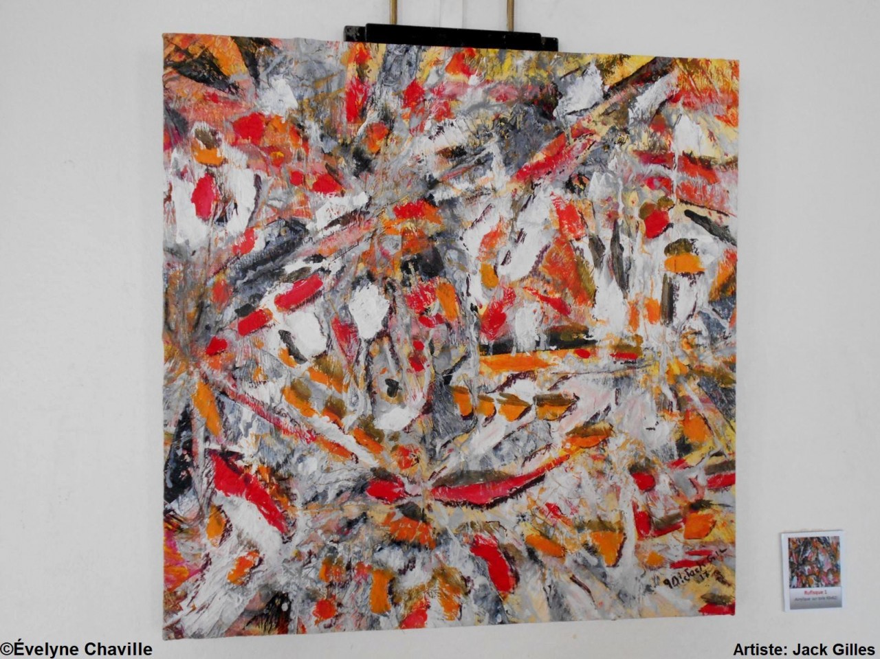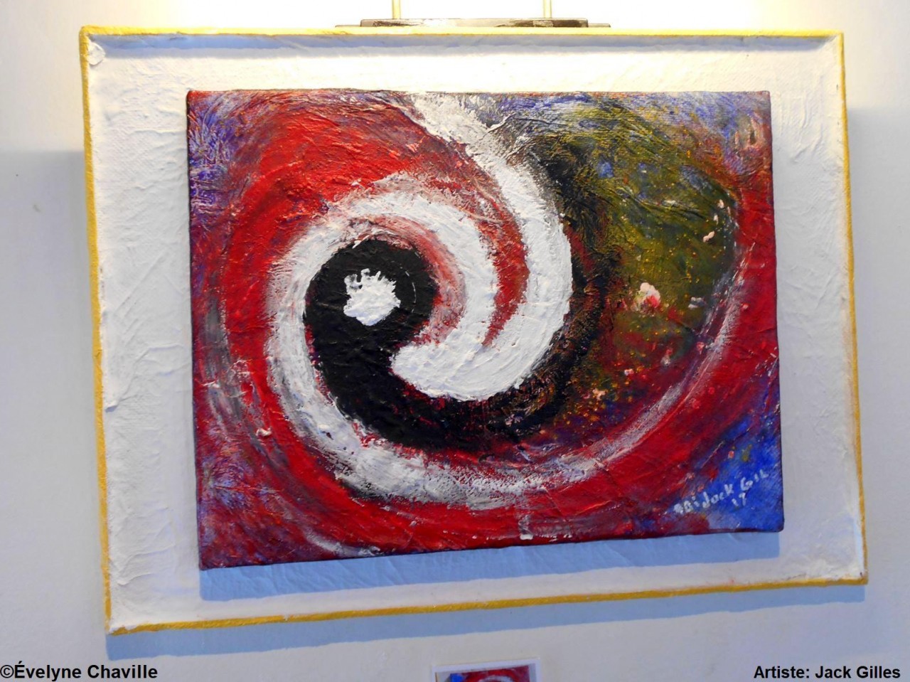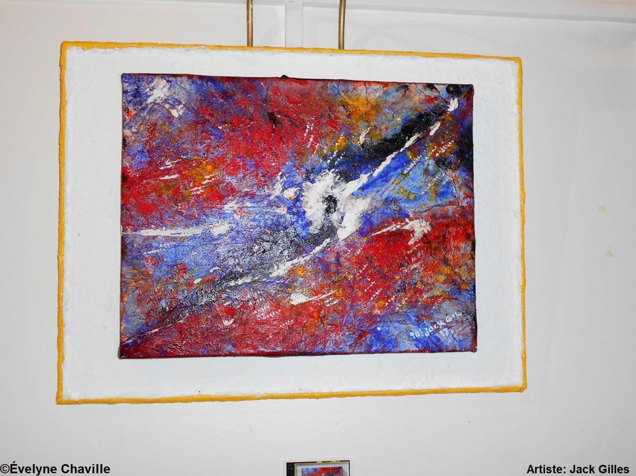 Jack Gilles: Je suis un passionné d’art, de la vie… J’utilise des couleurs vives car je veux que les gens soient joyeux, éclairés. Mais, le blanc et le noir sont aussi des couleurs. Je suis un anti-code. Je suis un peintre libre. Les oeuvres sont mi-figuratives, mi-abstraites, cela sort comme cela. C’est aussi pour cela que le sous-titre de l’exposition est “Expressions libres”…