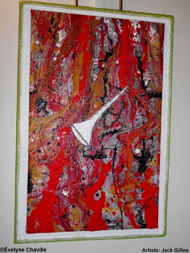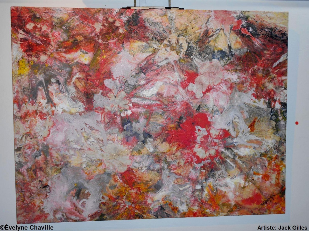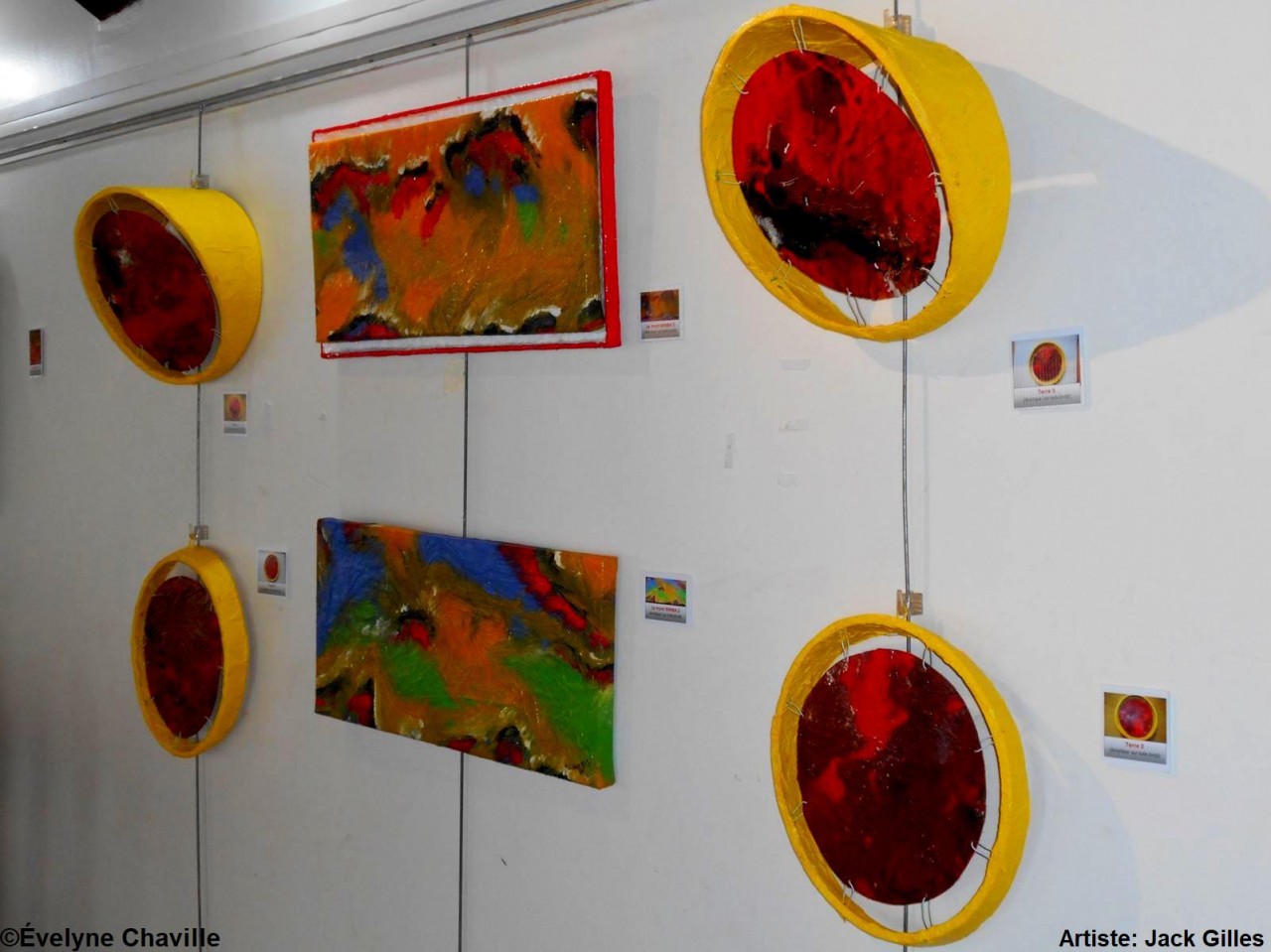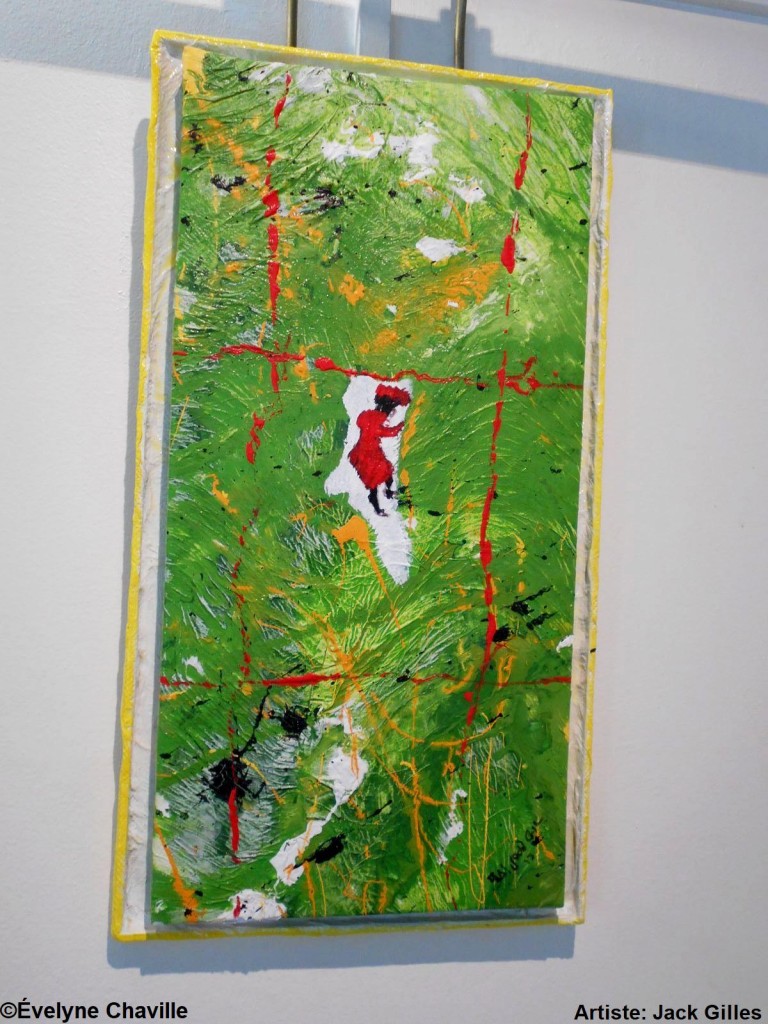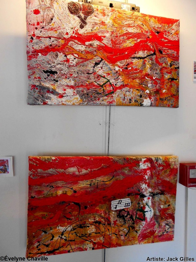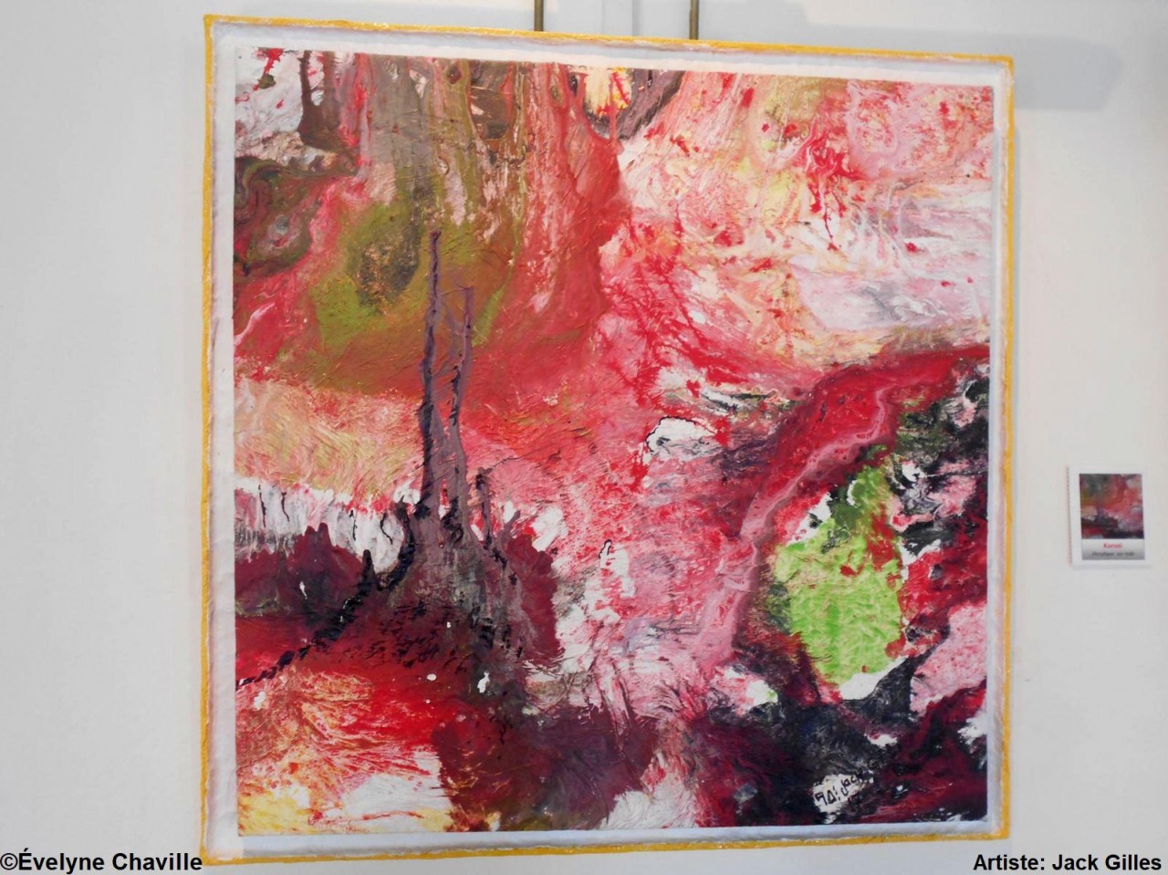 Jack Gilles: Je suis un passionné d’art, de la vie… J’utilise des couleurs vives car je veux que les gens soient joyeux, éclairés. Mais, le blanc et le noir sont aussi des couleurs. Je suis un anti-code. Je suis un peintre libre. Les oeuvres sont mi-figuratives, mi-abstraites, cela sort comme cela. C’est aussi pour cela que le sous-titre de l’exposition est “Expressions libres”…