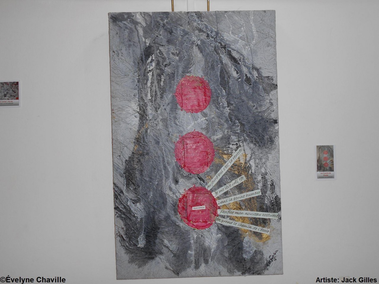 Jack Gilles: Il y a des oeuvres qu’il m’est impossible de vendre, c’est vrai. Avec le temps, j’ai appris à me séparer plus facilement de mes créations. Le docteur Jean-Marie Péan m’avait dit, un jour: “considère tes oeuvres comme tes enfants. Un jour, ils doivent partir”. Cela m’a aidé. L’exposition en Nouvelle-Calédonie, “Couleur Cannelle”, je l’ai faite en 2006 avec mon fils Olivier Gilles qui est poète et slammeur. Elle était itinérante, l’amour était le message qui était délivré.