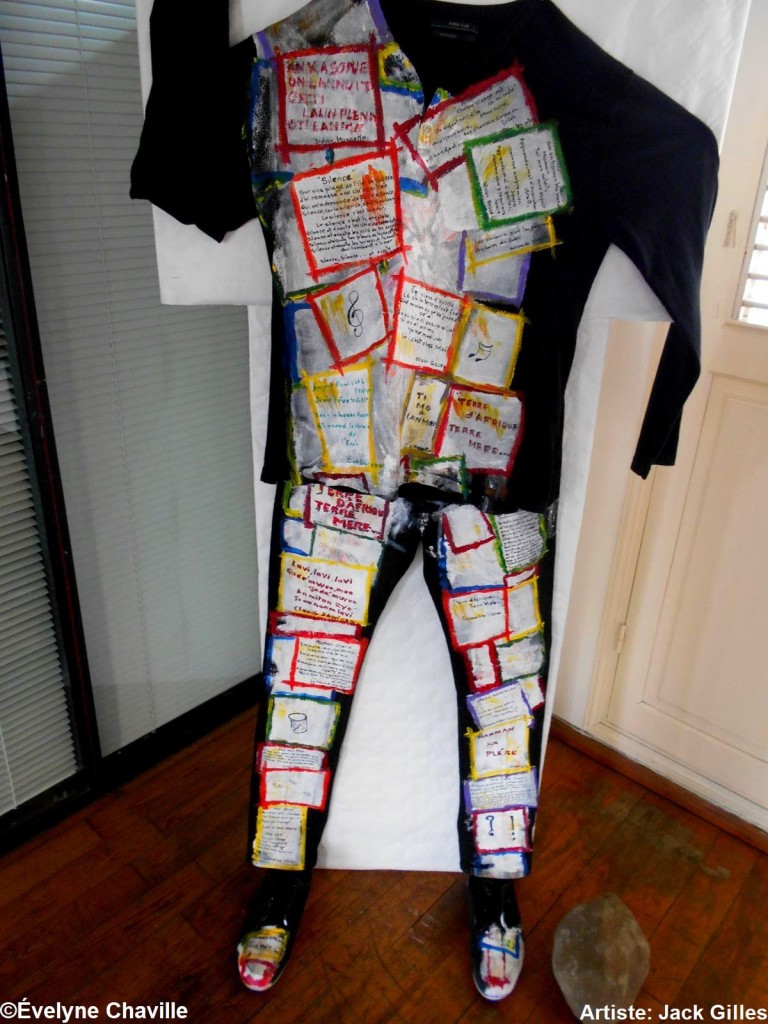 Jack Gilles: Oui, j’ai des amis africains qui sont peintres. En 2010, j’ai rencontré Lamine Sagna, un peintre sénégalais. On a travaillé ensemble pendant deux ans. En 2014, au Bénin, la personne avec qui je devais être en résidence d’artistes était tombée malade alors le directeur de l’hôtel où je séjournais m’a présenté un autre artiste-peintre. En faisant sa connaissance, je lui ai dit qu’il avait un très beau haut alors il l’a enlevé et me l’a offert… J’étais très surpris. Il s’appelle Tchif. Six mois plus tard, il est venu en Guadeloupe car je l’avais invité à exposer lors de mon exposition “F.A.M. Fanm An Mouvman” au Fort Fleur d’Épée; étant le trésorier du groupe “Fanm Ki Ka”, j’ai été inspiré par ces femmes et par les femmes en général, j’ai décidé de leur rendre hommage. Je connais aussi le peintre béninois, Laudamus Sègbo.