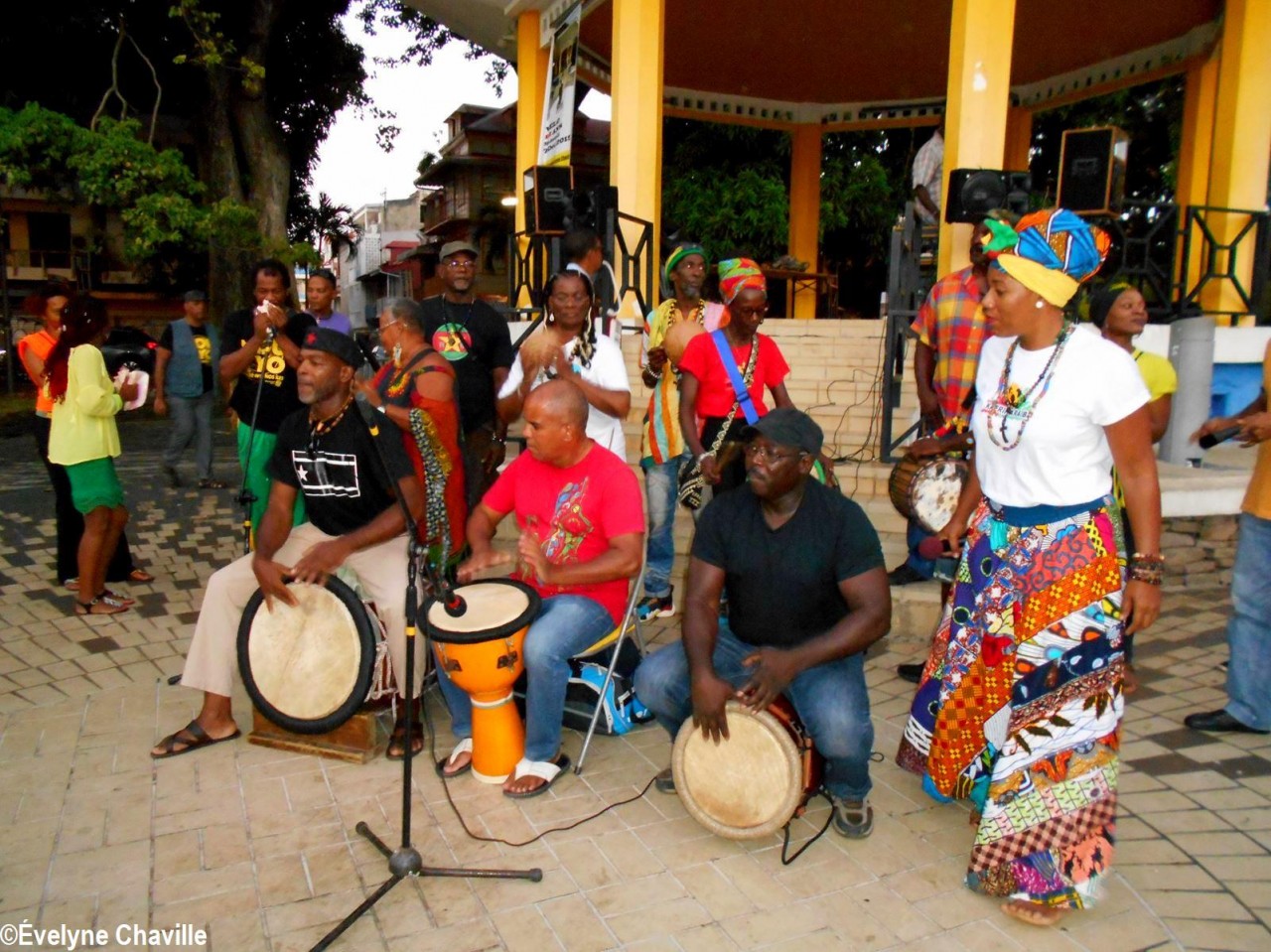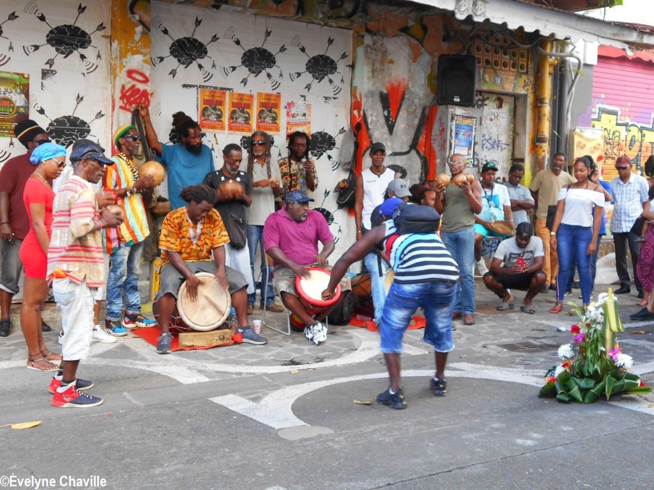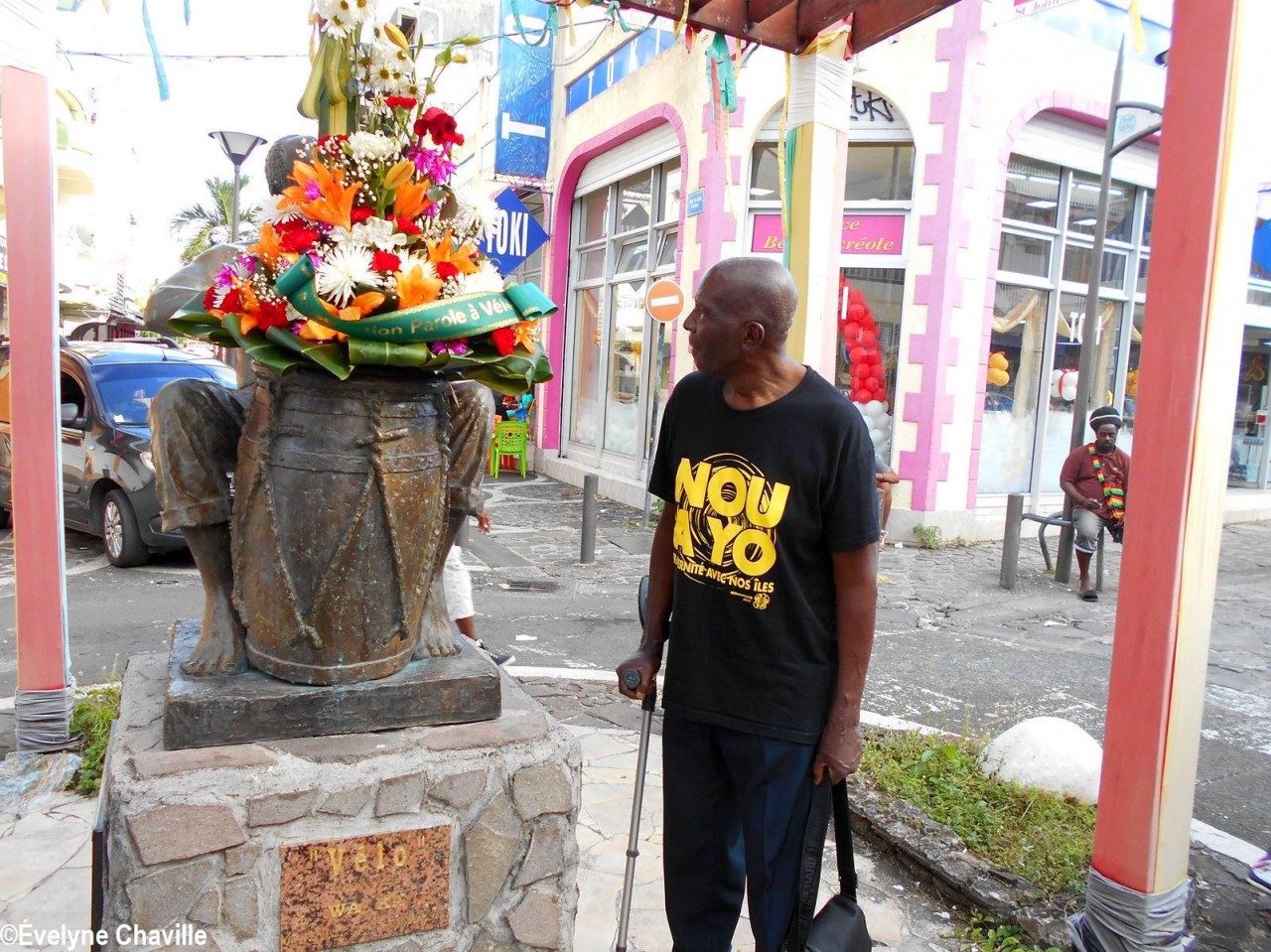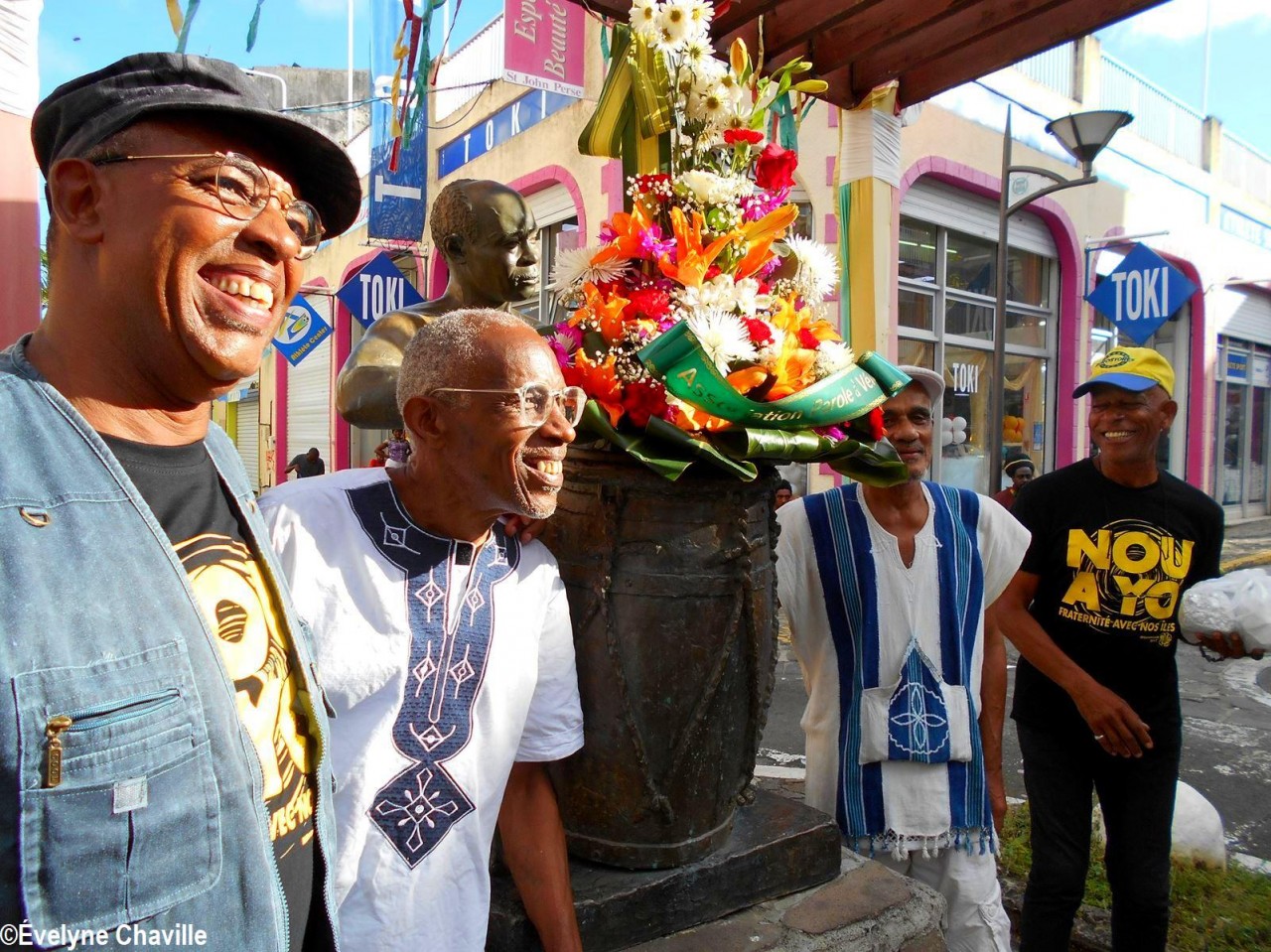 À 14h30, Patrick Nérini (délégué général de Nou a Yo) est arrivé avec une gerbe de fleurs qu’il a déposé devant les musiciens, chanteurs et danseurs, les tambours ka ont continué à s’exprimer de plus belle pour le bonheur total des spectateurs toujours fidèles à ce rendez-vous musical du samedi alors que les magasins de la ville commencent à baisser leurs volets roulants.