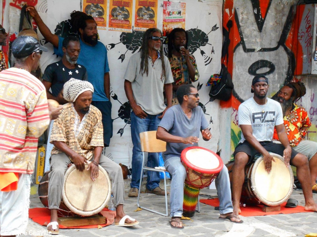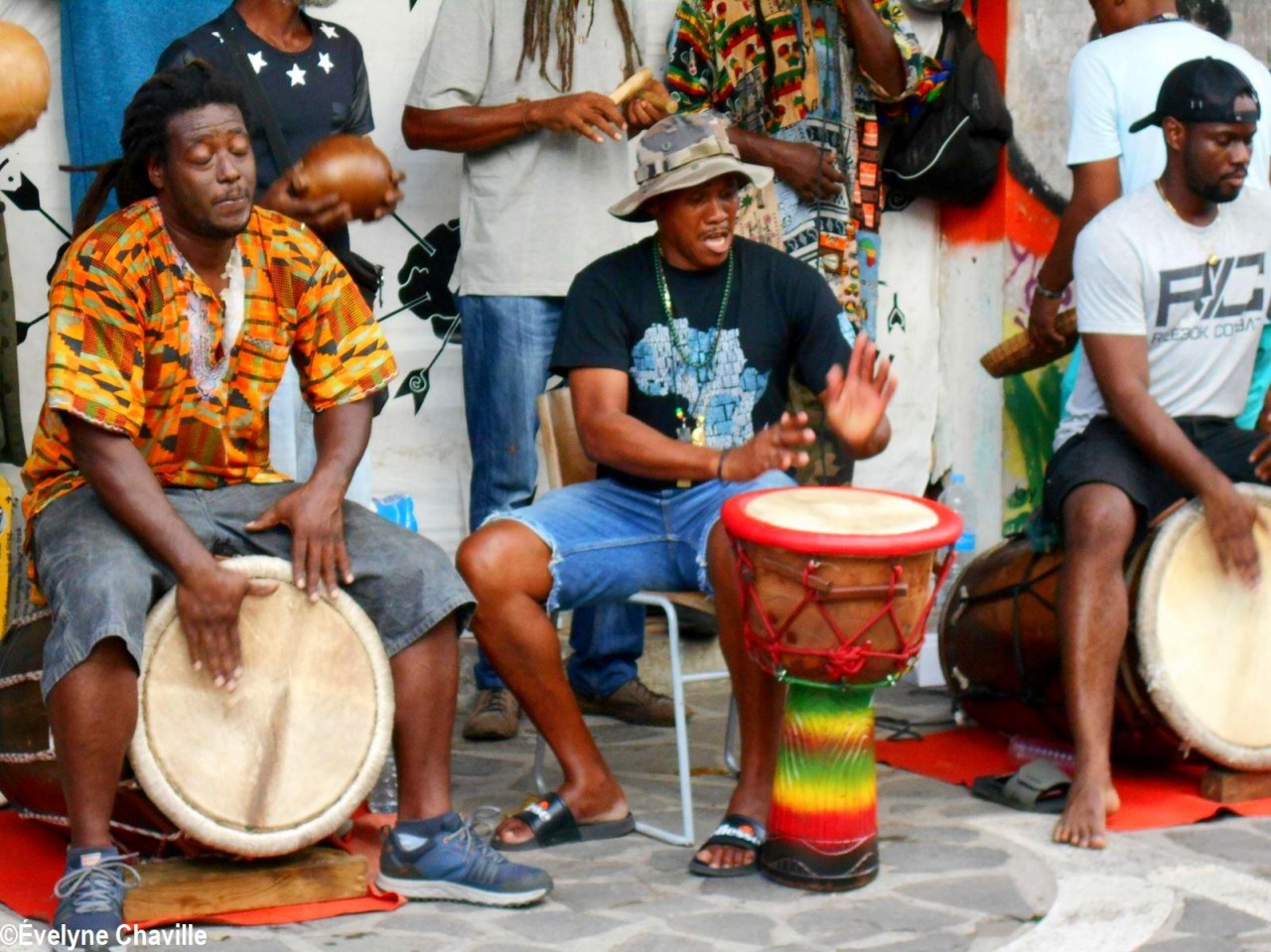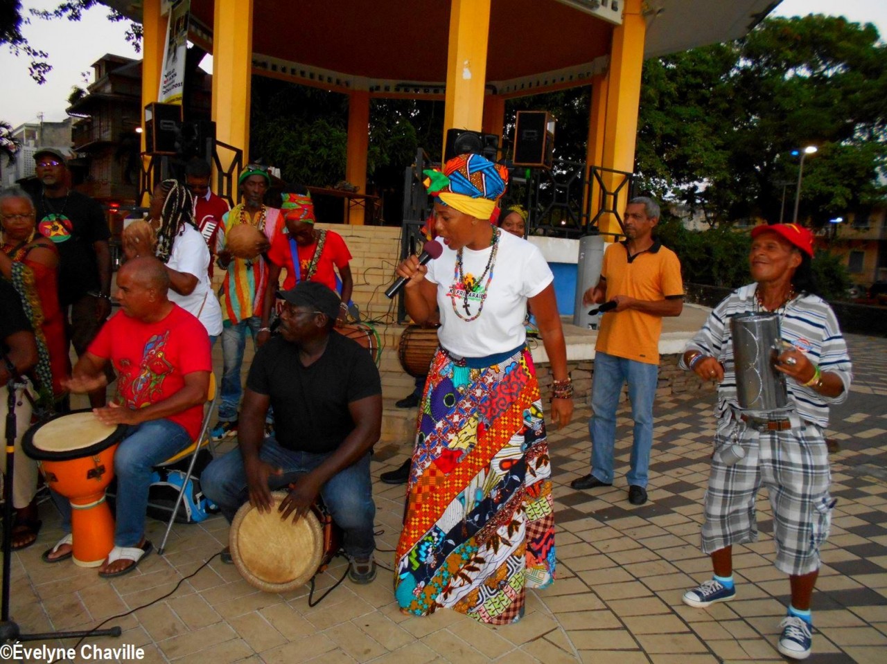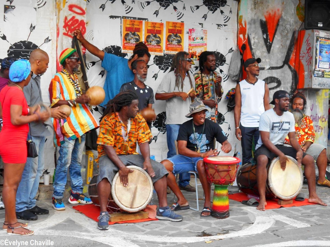 À 14h30, Patrick Nérini (délégué général de Nou a Yo) est arrivé avec une gerbe de fleurs qu’il a déposé devant les musiciens, chanteurs et danseurs, les tambours ka ont continué à s’exprimer de plus belle pour le bonheur total des spectateurs toujours fidèles à ce rendez-vous musical du samedi alors que les magasins de la ville commencent à baisser leurs volets roulants.