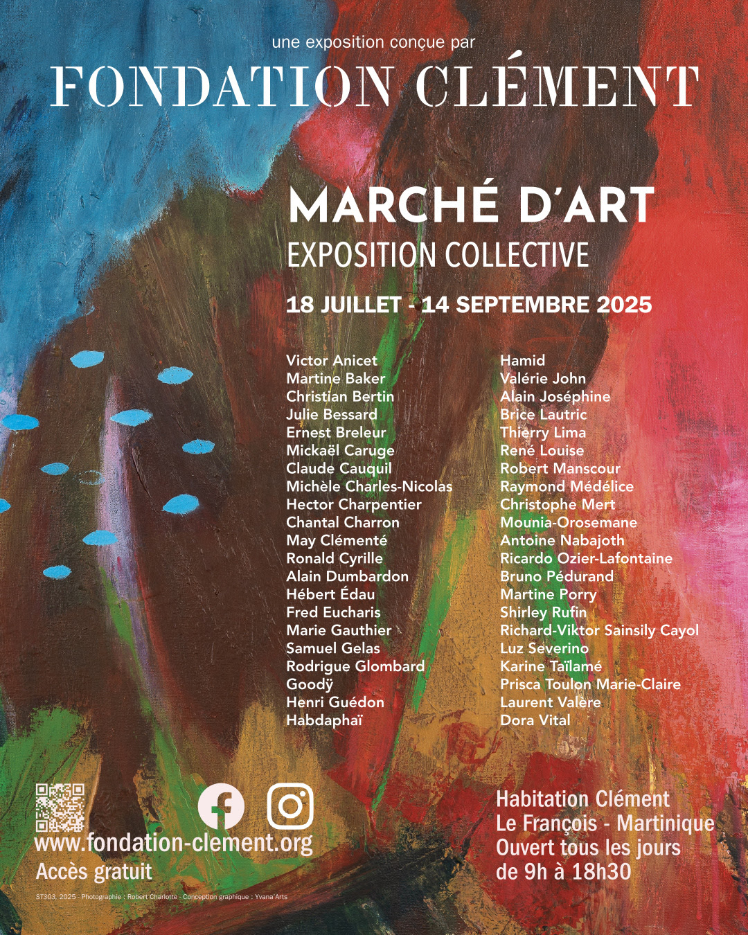 Comme chaque année, la Fondation Clément (Le François, Martinique) organise son grand marché de l’art. Cette fois-ci, cette grande exposition réunit 42 artistes caribéens, en particulier des Martiniquais et des Guadeloupéens, dont les oeuvres seront visibles tous les jours, de 9h00 à 18h30h, du 18 juillet au 14 septembre 2025.