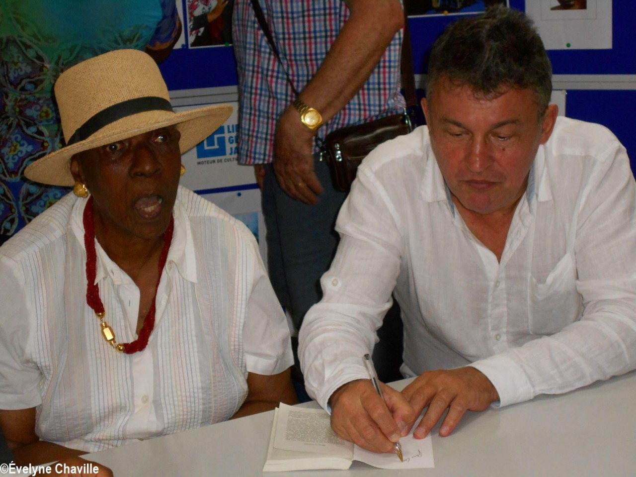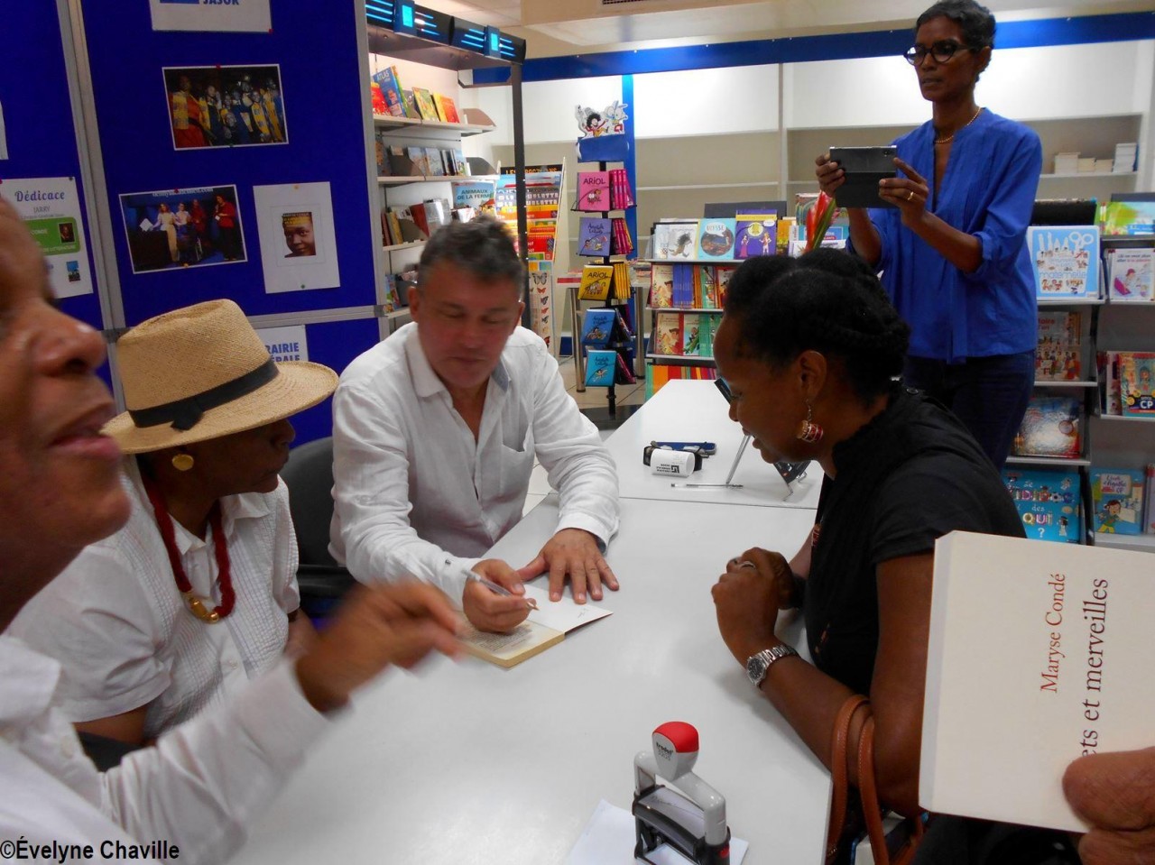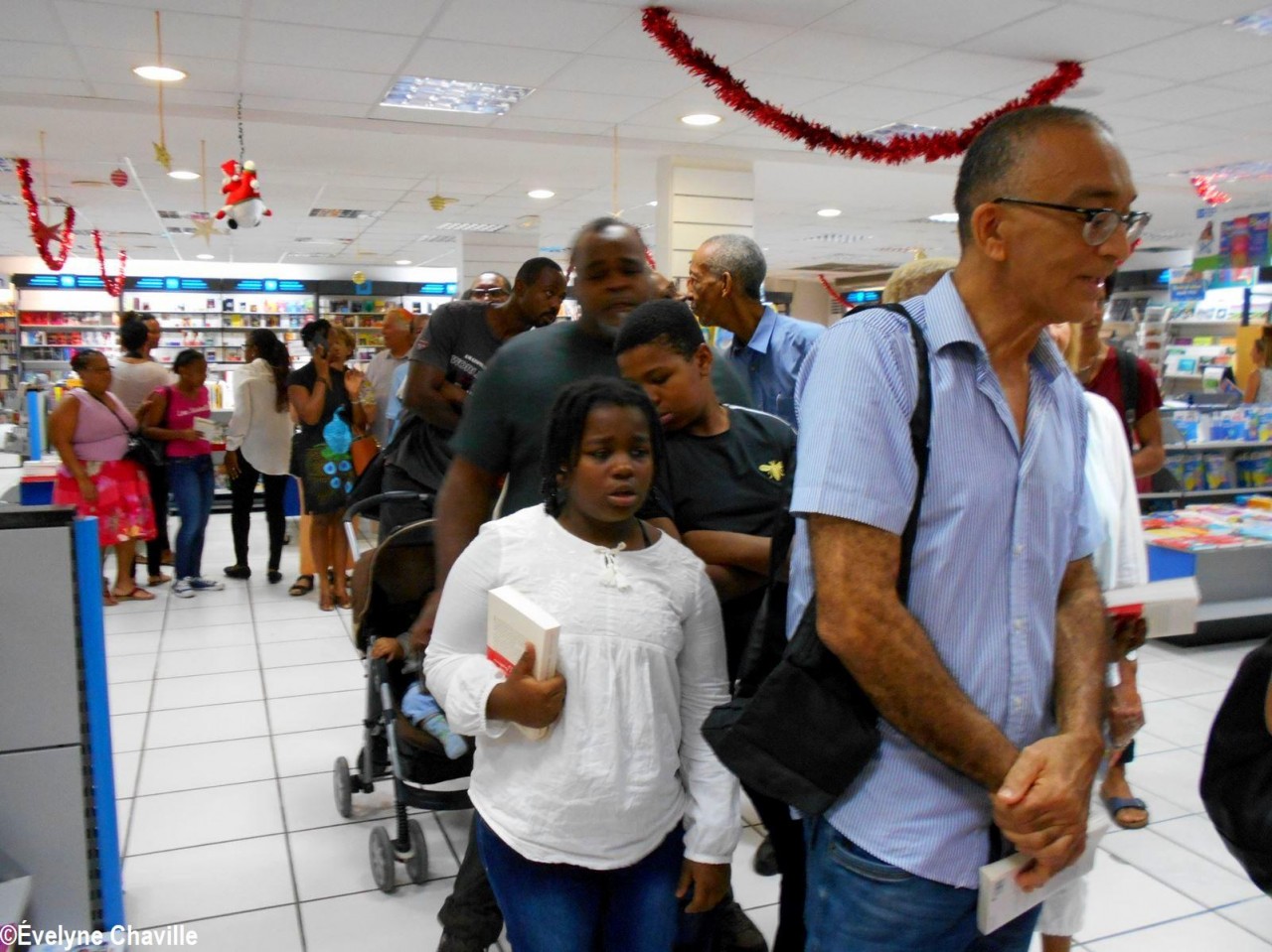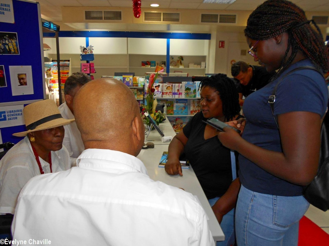 À ce rendez-vous convivial, il y avait par exemple cette lectrice, née en 1939, qui est venue avec des coupures de presse consacrées à l’écrivaine mondialement connue et qui a eu comme institutrice Madame Boucolon, c’est-à-dire la mère de Maryse Condé; cette dame qui n’avait pas de livre à faire dédicacer mais qui est venue dire à la romancière qu’elle cultive des plantes médicinales; cette professeure de lettres qui a demandé à Maryse Condé: “quel conseil donneriez-vous à une jeune enseignante comme moi?”, “Aucun”, a répondu l’ancienne professeure de littérature de l’Université Columbia aux États-Unis; cette jeune étudiante en master de créole à qui Maryse Condé a déclaré: “Toutes les langues sont belles”… Certains ont eu la chance d’embrasser l’auteur, de lui serrer la main et de faire des photos avec elle…