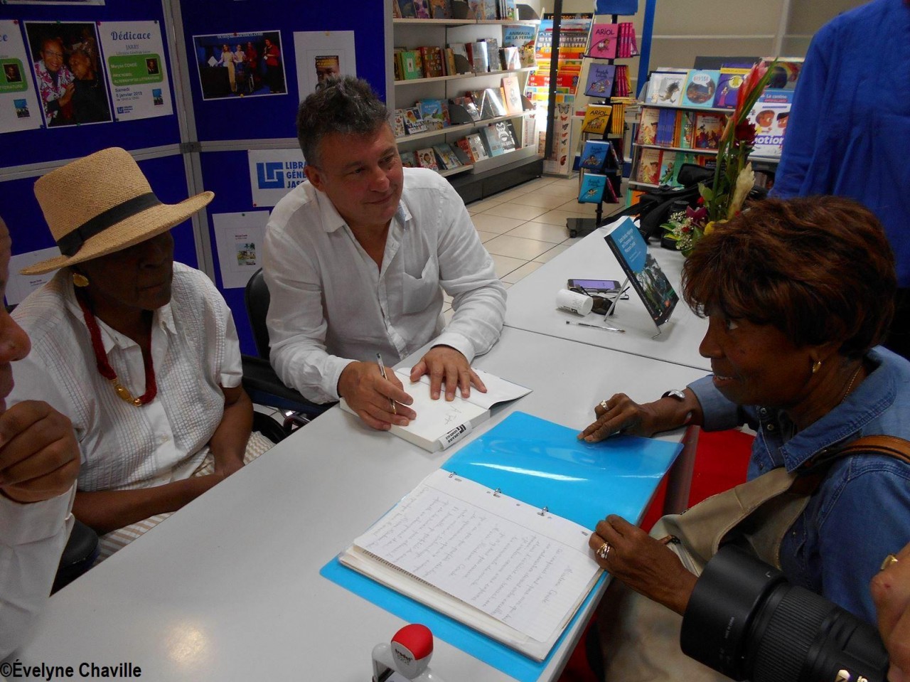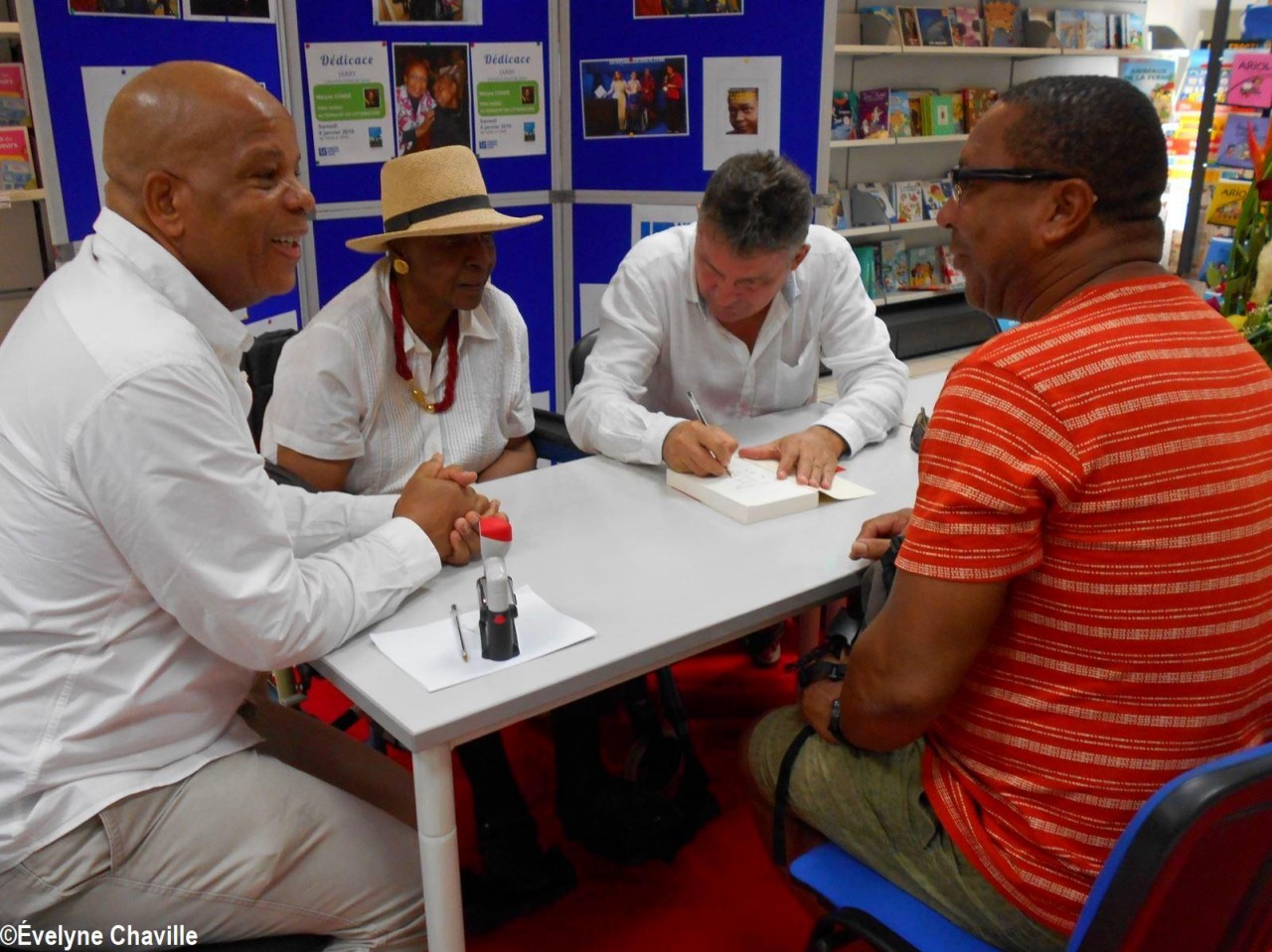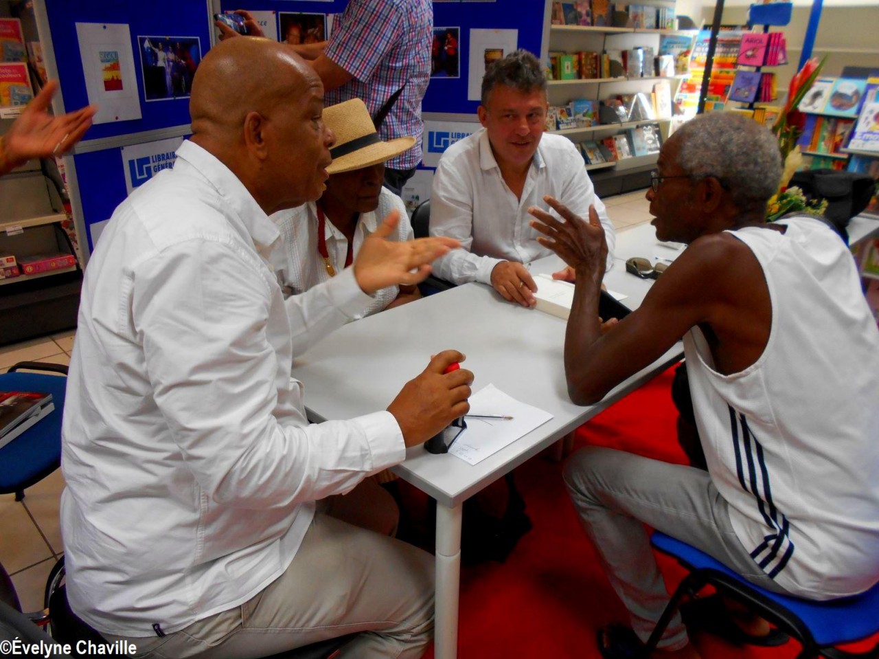 À ce rendez-vous convivial, il y avait par exemple cette lectrice, née en 1939, qui est venue avec des coupures de presse consacrées à l’écrivaine mondialement connue et qui a eu comme institutrice Madame Boucolon, c’est-à-dire la mère de Maryse Condé; cette dame qui n’avait pas de livre à faire dédicacer mais qui est venue dire à la romancière qu’elle cultive des plantes médicinales; cette professeure de lettres qui a demandé à Maryse Condé: “quel conseil donneriez-vous à une jeune enseignante comme moi?”, “Aucun”, a répondu l’ancienne professeure de littérature de l’Université Columbia aux États-Unis; cette jeune étudiante en master de créole à qui Maryse Condé a déclaré: “Toutes les langues sont belles”… Certains ont eu la chance d’embrasser l’auteur, de lui serrer la main et de faire des photos avec elle…