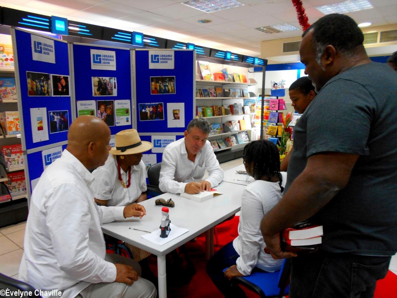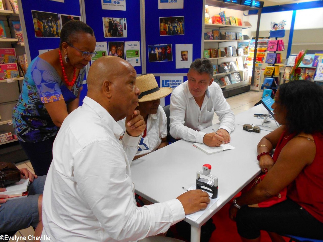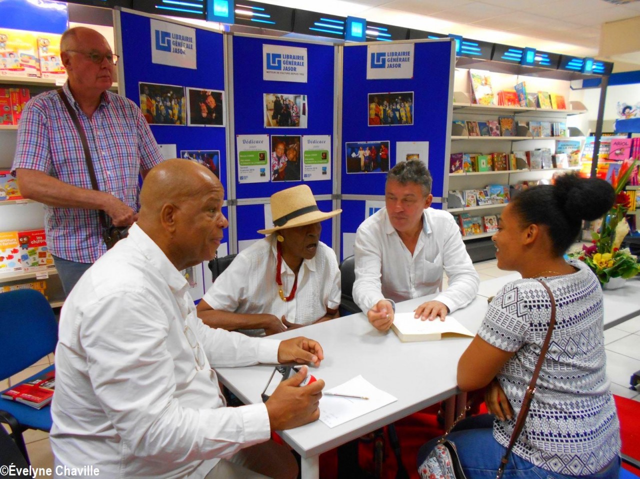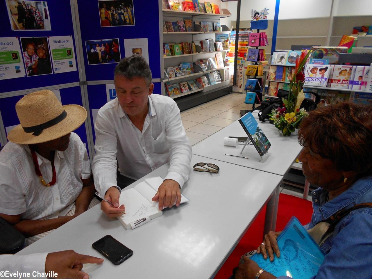 À ce rendez-vous convivial, il y avait par exemple cette lectrice, née en 1939, qui est venue avec des coupures de presse consacrées à l’écrivaine mondialement connue et qui a eu comme institutrice Madame Boucolon, c’est-à-dire la mère de Maryse Condé; cette dame qui n’avait pas de livre à faire dédicacer mais qui est venue dire à la romancière qu’elle cultive des plantes médicinales; cette professeure de lettres qui a demandé à Maryse Condé: “quel conseil donneriez-vous à une jeune enseignante comme moi?”, “Aucun”, a répondu l’ancienne professeure de littérature de l’Université Columbia aux États-Unis; cette jeune étudiante en master de créole à qui Maryse Condé a déclaré: “Toutes les langues sont belles”… Certains ont eu la chance d’embrasser l’auteur, de lui serrer la main et de faire des photos avec elle…