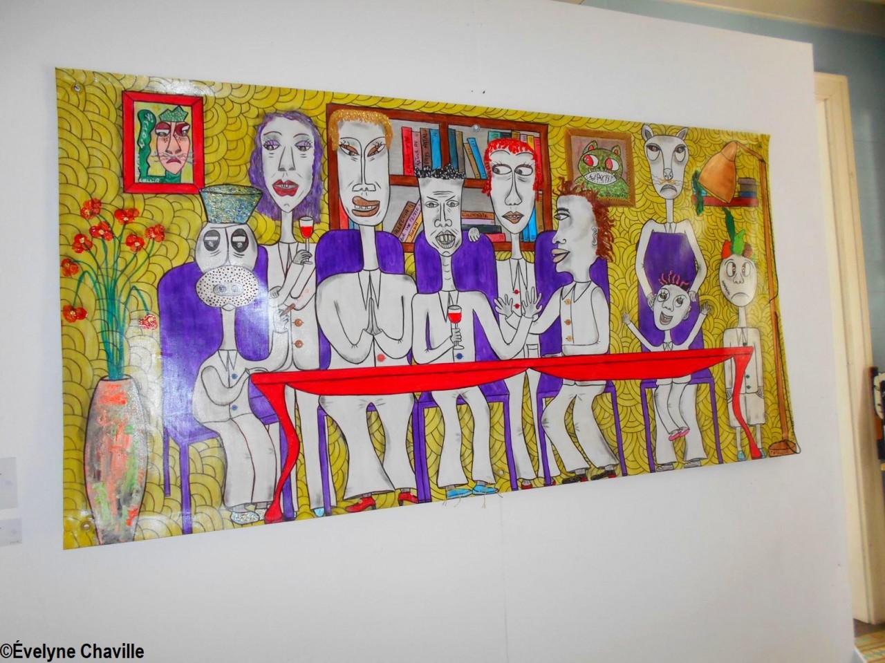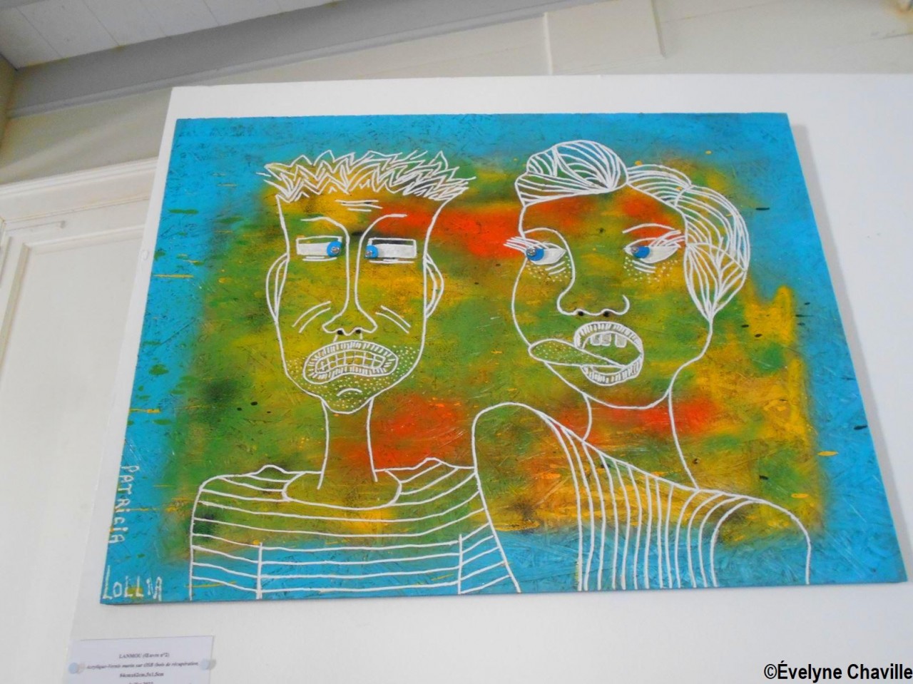 P. L. : Mon concept, c’est une œuvre, une histoire. Lorsque je réalise une œuvre, j’écris l’histoire. Il faut que je dise que c’est l’idée de ma fille, l’autre jour, elle m’en a fait le reproche ; en fait, quand j’ai commencé, elle m’a dit : “il faut que tu écrives l’histoire “. Au départ, je n’ai pas bien compris ce qu’elle me disait, je pensais que je devais écrire mon histoire, mon parcours dans les arts visuels. Elle m’a dit : “non, non, quand tu réalises une œuvres, tu écris l’histoire de l’œuvre”. Et c’est vrai que maintenant, je le fais et le travail d’écriture complète le travail pictural et donne encore davantage de vie aux personnages que je crée ; ils racontent leur histoire et l’on retrouve les émotions, les sentiments, les idées, souvent des messages à travers ces histoires humoristiques, sarcastiques, parfois cyniques, mais c’est aussi la vie.