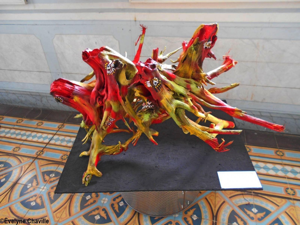 P. L. : Et même pour mes textes, je les travaille la nuit, je vais les déposer tout de suite sur le papier parce que parfois au réveil, je n’ai plus ce que j’avais réfléchi… Je travaille énormément. Le souci, c’est que je n’ai pas d’atelier, jusqu’à maintenant, je squattais la bibliothèque de la maison. Les sculptures prennent de la place, je vais essayer de me créer un atelier pour pouvoir vraiment m’exprimer, je pense.