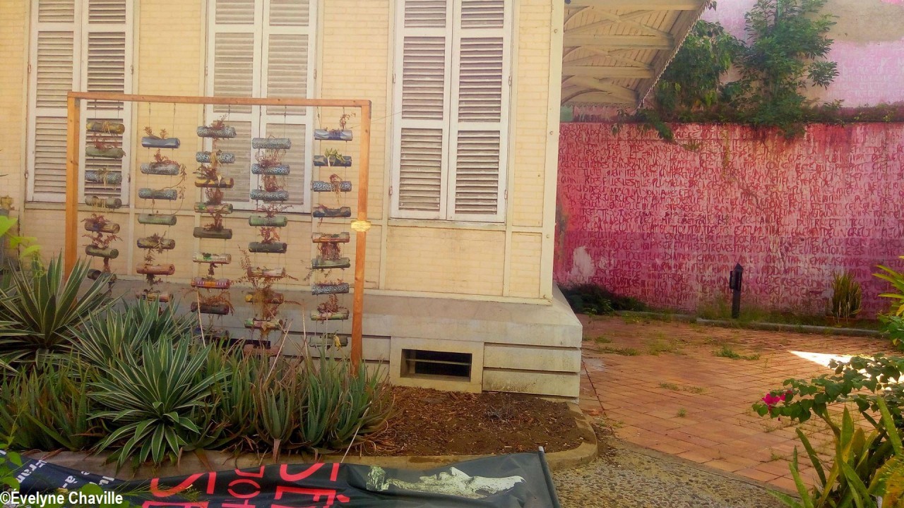 Le 2 juin 2018, à l’occasion de la manifestation nationale “Rendez-vous aux Jardins”, le musée Saint-John Perse de Pointe-à-Pitre avait inauguré le “Caribbean Green Wall”. Cette oeuvre artistique et écologique conçue par Myriam Maxo avec l’aide des élèves du Lycée Alexandre Buffon de Baie-Mahault représentait un mur végétal fait de cartouches d’encre vides recouvertes de tissu wax et accrochées avec de la corde à un support en bois.
