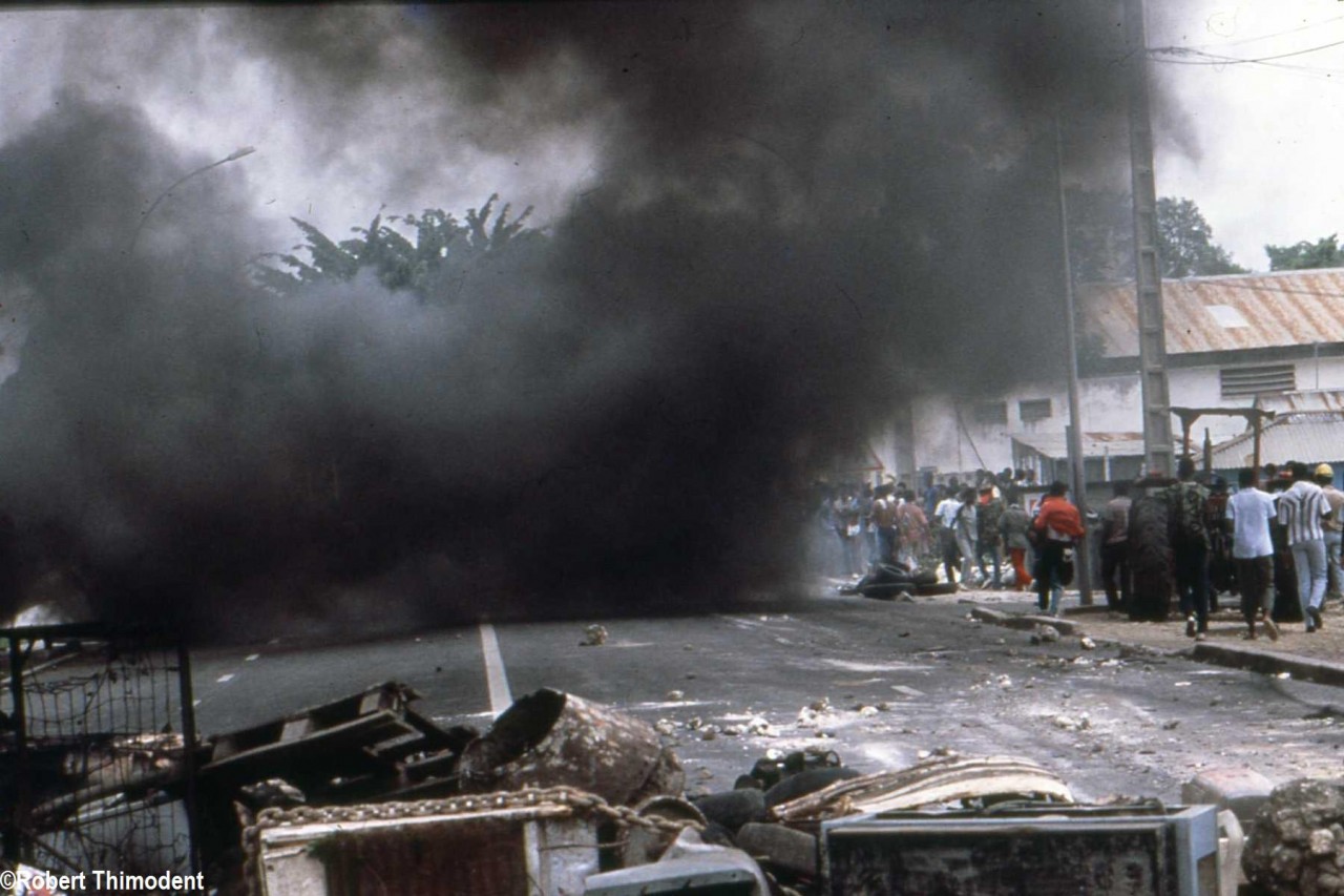 Du 25 au 29 juillet 1985, la Guadeloupe est secouée et paralysée par “l’Affaire Faisant”, Robert Thimodent est aux premières loges : “j’étais dans mon élément. J’avais un assistant et nous étions à moto pour couvrir les manifestations qui se déroulaient notamment à Vieux-Bourg et à Fouillole dans la région Pointe-à-Pitre/Abymes. Il y avait un photographe de Sygma ici mais il était avec les forces de l’ordre moi, j’étais idéalement bien placé car j’étais parmi les grévistes et, cette fois-ci, l’agence m’a pris plus d’une centaine de photos qui a été vendue dans plusieurs pays européens (Italie, Espagne etc)”, se souvient-il. Le photographe souhaite poursuivre sur sa lancée et se rend en Martinique pour un reportage sur le concert de la chanteuse et actrice française, Vanessa Paradis, mais les organisateurs lui répondent qu’un photographe venu de Paris a déjà été choisi…