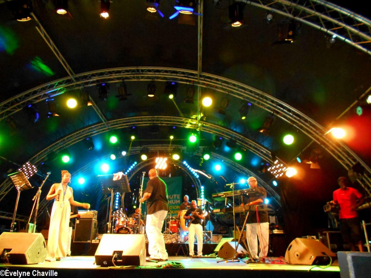 Devant un public composé surtout de locaux qui étaient venu écouter de la bonne musique locale, les membres ont interprété plusieurs morceaux appartenant à des chanteurs et groupes guadeloupéens, martiniquais ou haïtiens bien connus comme par exemple “Chiktay”, “Kwak”, Éric Virgal, Ti Mano, “Vayb”… Si la charmante chanteuse semblait parfaitement à l’aise devant cette foule, le chanteur par contre semblait plutôt impressionné, d’ailleurs il se cachait derrière des lunettes de soleil, se laissait difficilement prendre en photo et communiquait davantage avec les autres membres de groupe qu’avec l’assistance.