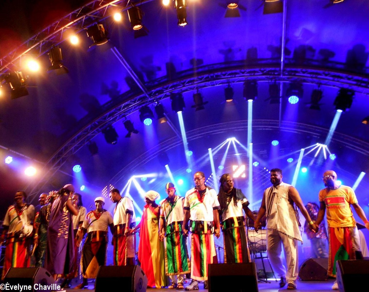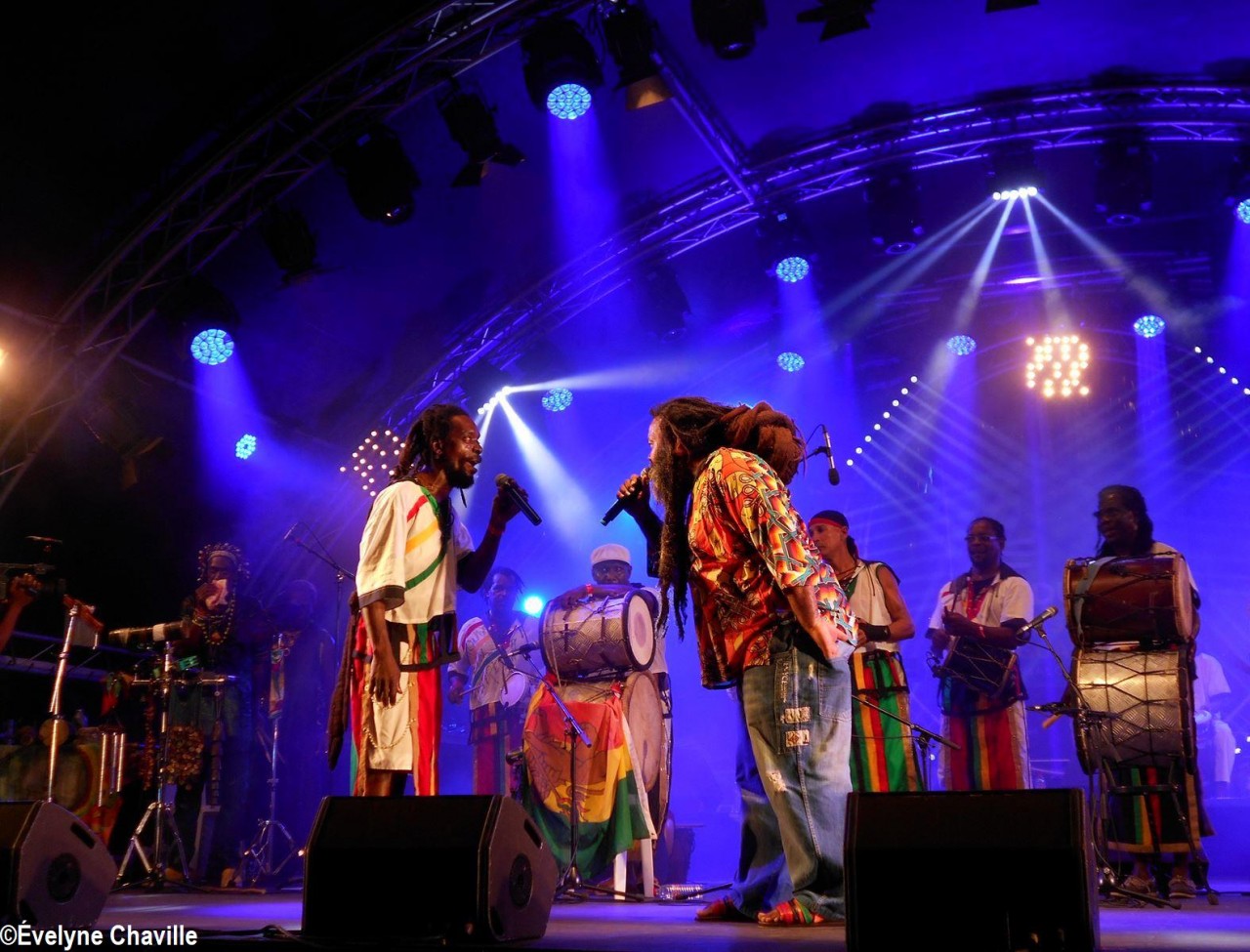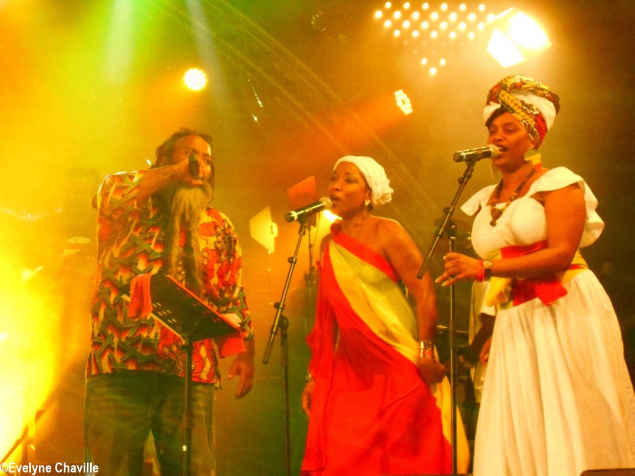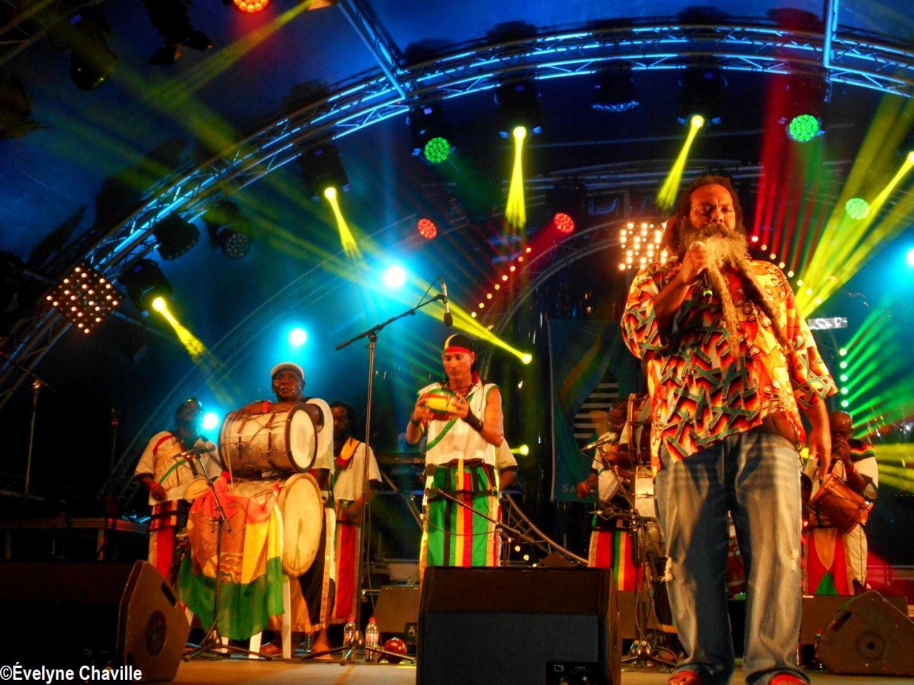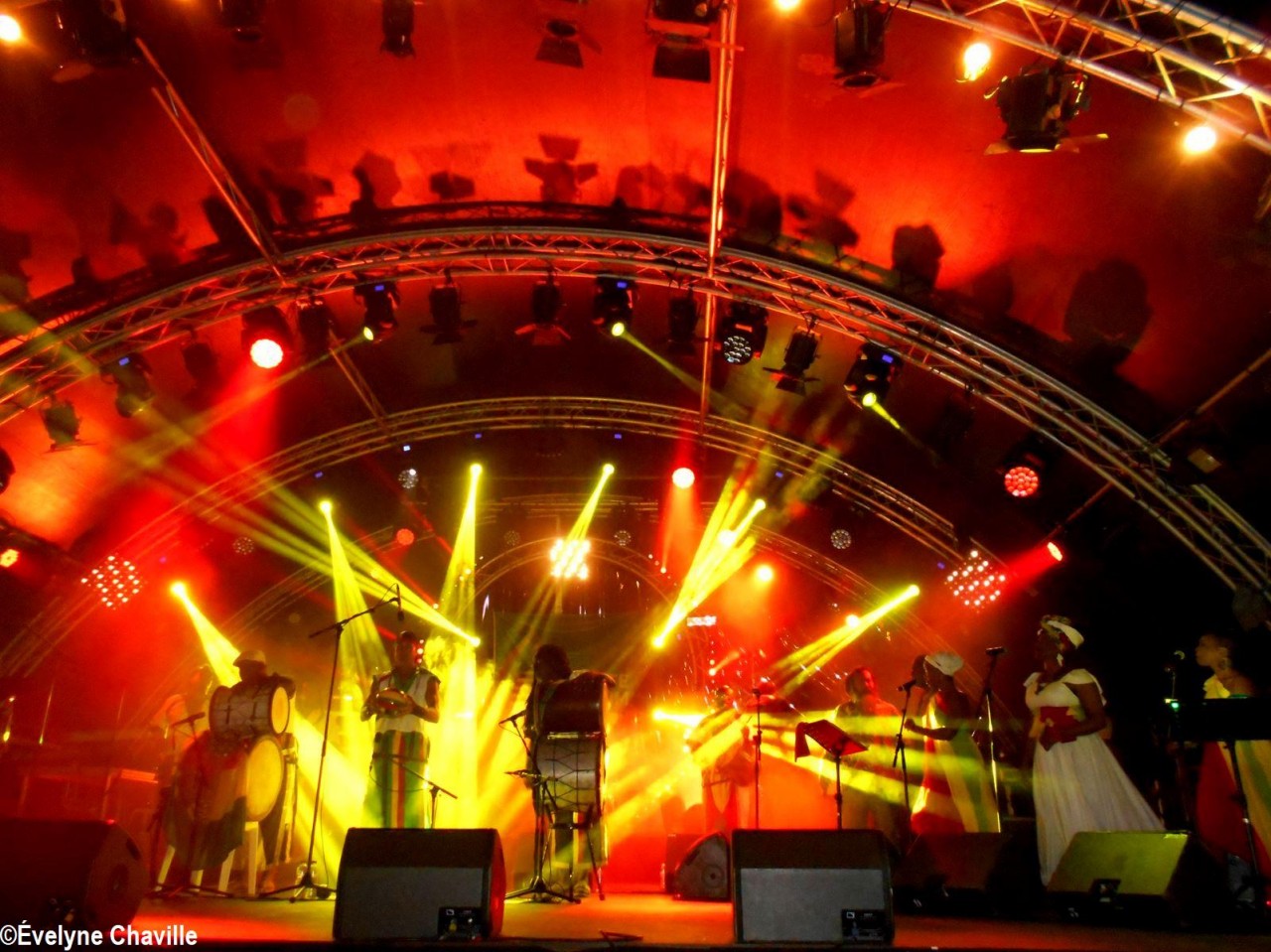 Parmi la vingtaine de membres sur scène, il y avait une dizaine de percussionnistes, un bassiste, un guitariste, trois choristes etc. Même si trois autres membres ont chanté un morceau, les deux principaux chanteurs étaient Fanswa Ladrézeau et Jean-Pierre Coquerel; ces derniers se sont relayés au micro pour interpréter des titres datant parfois de plus de 25 ans comme “Krak-la”, “Ki moun ki responsab”, “Pyèj”, “Joé” etc. Le nombreux public a chanté et dansé au rythme de cette musique traditionnelle jouée sur scène avec des notes modernes. Durant la saison carnavalesque qui commence en Guadeloupe le premier dimanche de janvier jusqu’au Mercredi des Cendres, il retrouvera dans les rues la musique purement traditionnelle du phénomène “Akiyo”.