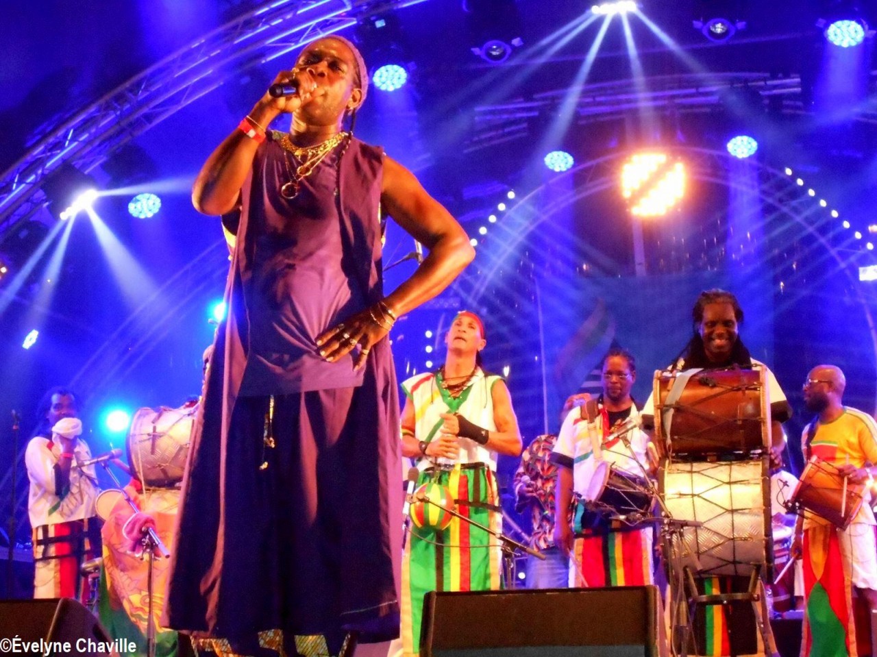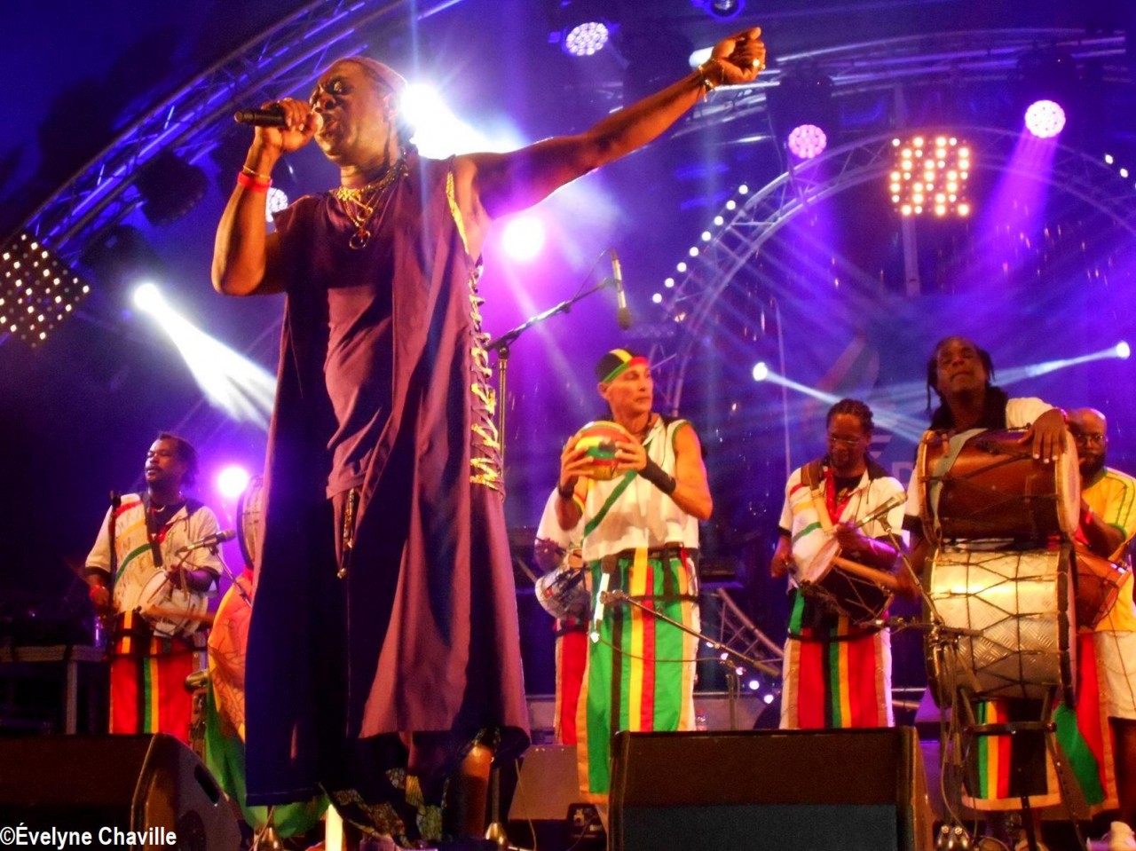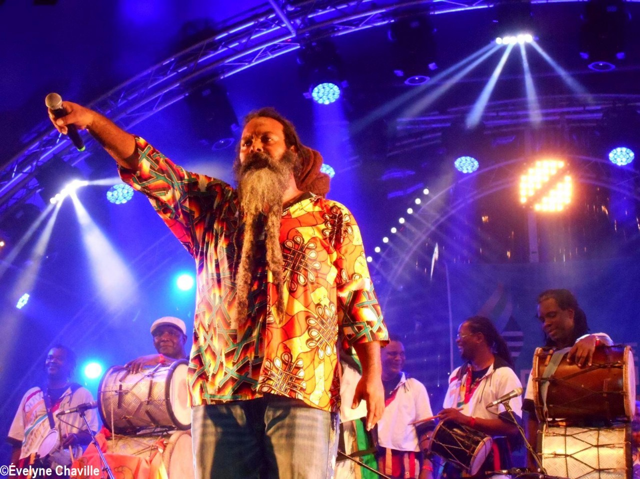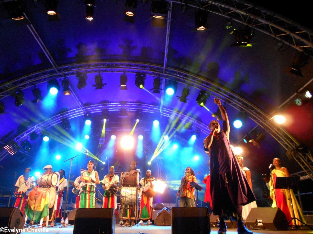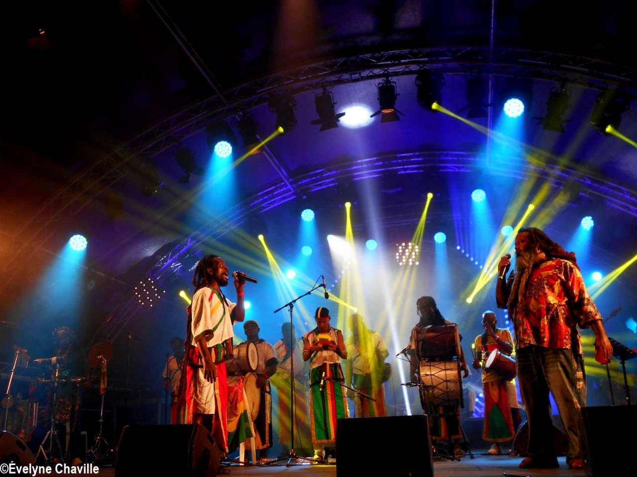 Parmi la vingtaine de membres sur scène, il y avait une dizaine de percussionnistes, un bassiste, un guitariste, trois choristes etc. Même si trois autres membres ont chanté un morceau, les deux principaux chanteurs étaient Fanswa Ladrézeau et Jean-Pierre Coquerel; ces derniers se sont relayés au micro pour interpréter des titres datant parfois de plus de 25 ans comme “Krak-la”, “Ki moun ki responsab”, “Pyèj”, “Joé” etc. Le nombreux public a chanté et dansé au rythme de cette musique traditionnelle jouée sur scène avec des notes modernes. Durant la saison carnavalesque qui commence en Guadeloupe le premier dimanche de janvier jusqu’au Mercredi des Cendres, il retrouvera dans les rues la musique purement traditionnelle du phénomène “Akiyo”.