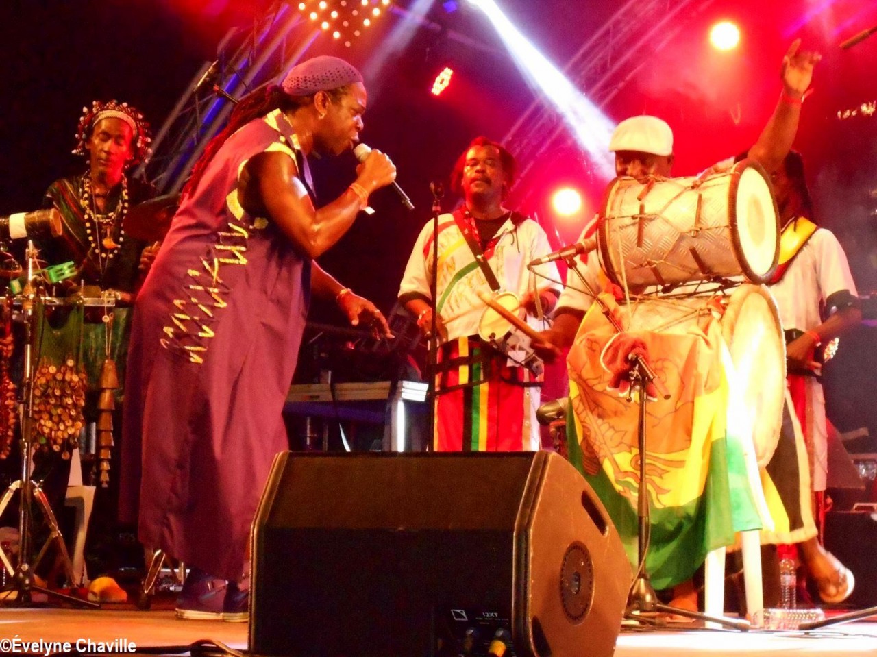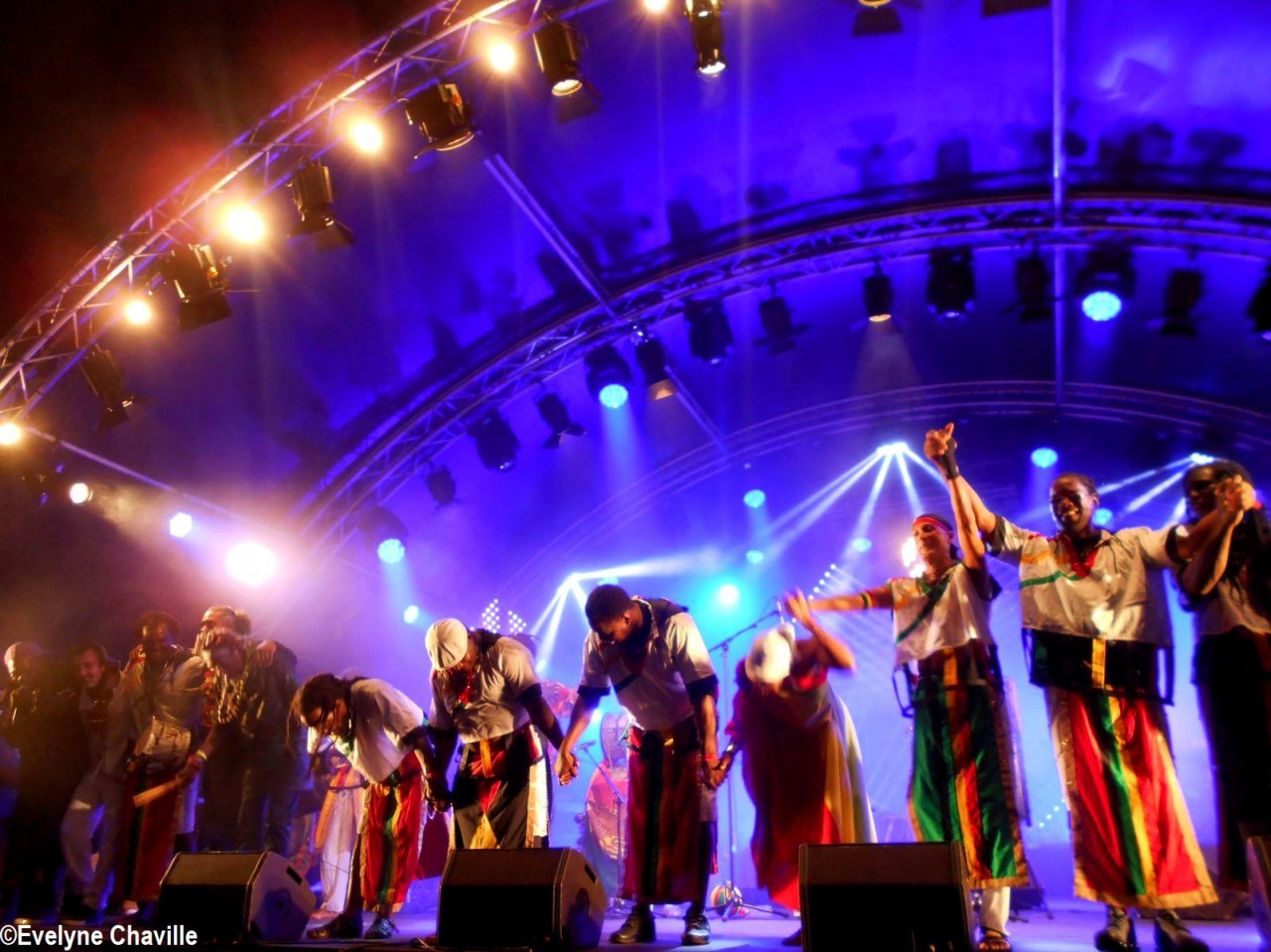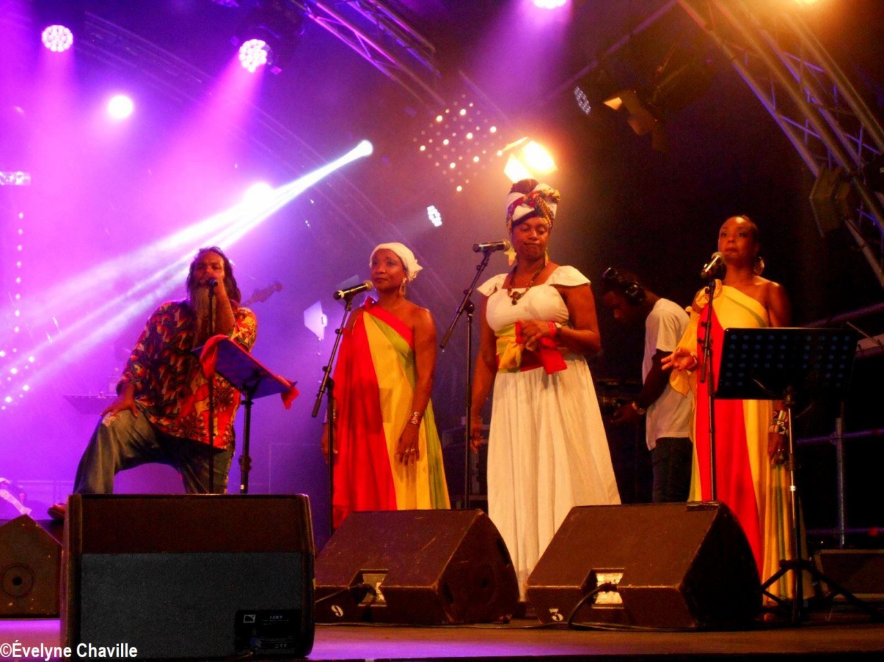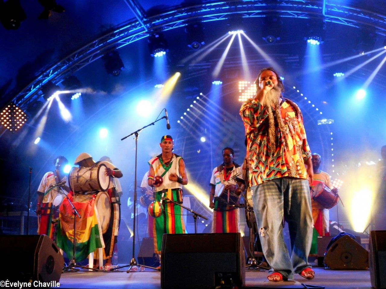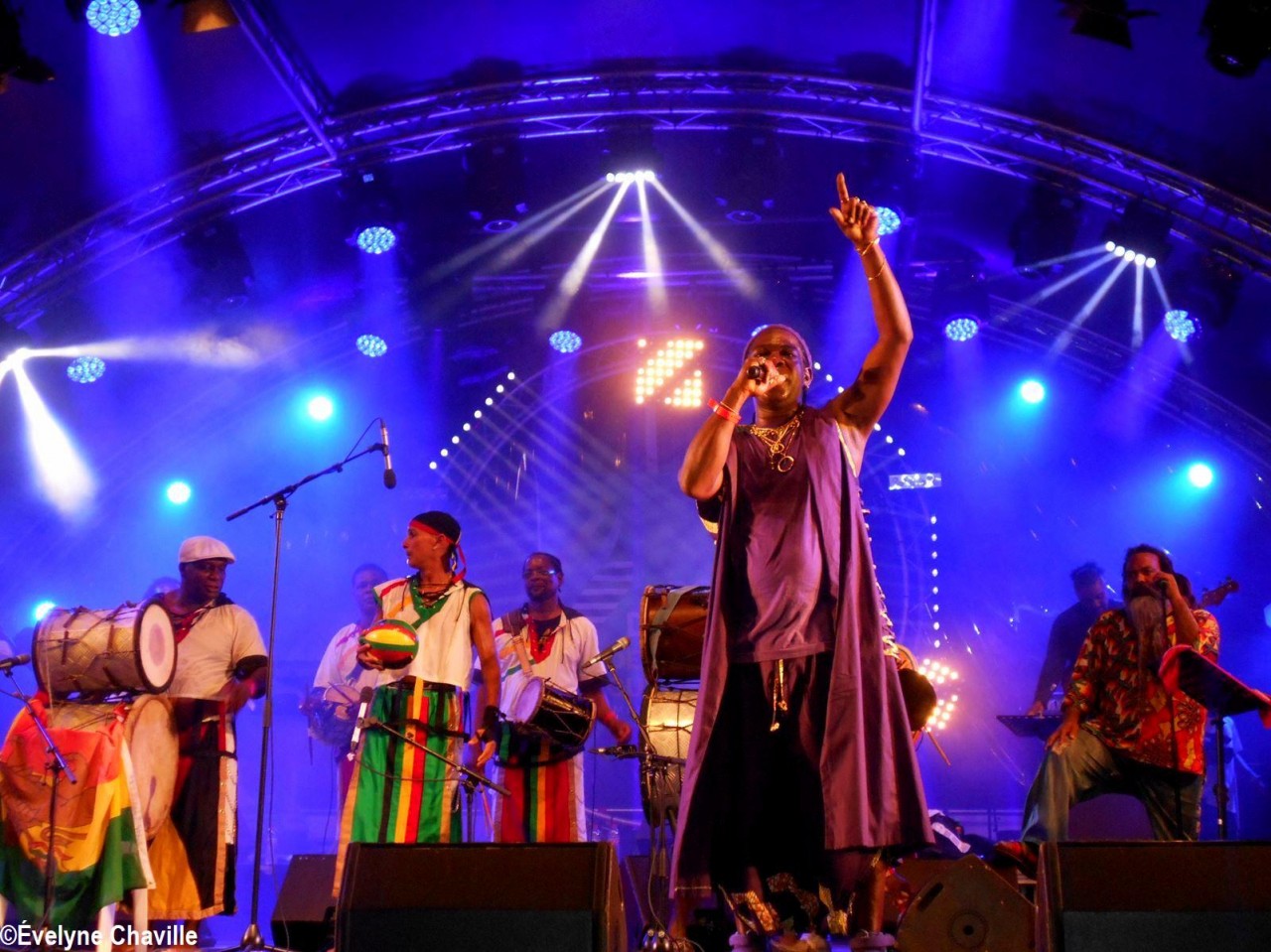 Parmi la vingtaine de membres sur scène, il y avait une dizaine de percussionnistes, un bassiste, un guitariste, trois choristes etc. Même si trois autres membres ont chanté un morceau, les deux principaux chanteurs étaient Fanswa Ladrézeau et Jean-Pierre Coquerel; ces derniers se sont relayés au micro pour interpréter des titres datant parfois de plus de 25 ans comme “Krak-la”, “Ki moun ki responsab”, “Pyèj”, “Joé” etc. Le nombreux public a chanté et dansé au rythme de cette musique traditionnelle jouée sur scène avec des notes modernes. Durant la saison carnavalesque qui commence en Guadeloupe le premier dimanche de janvier jusqu’au Mercredi des Cendres, il retrouvera dans les rues la musique purement traditionnelle du phénomène “Akiyo”.