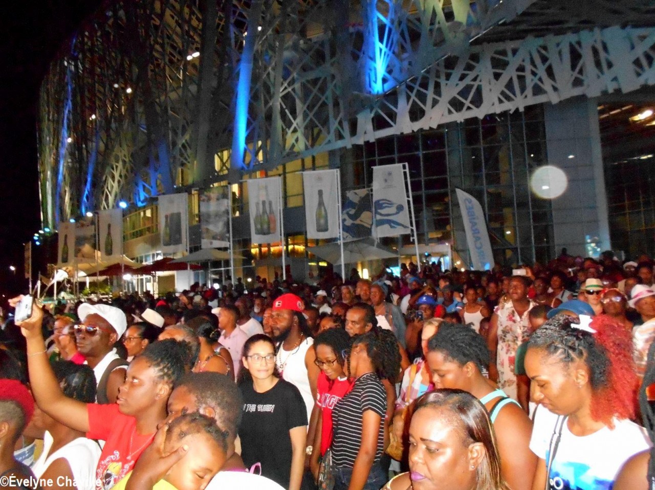 Cependant, à l’heure dite – le concert du célèbre groupe étant programmé entre 20h30 et 22h00 sur la scène du Mémorial ACTe – une immense foule était présente. Ce public était composé de plusieurs milliers de personnes (adultes, jeunes et enfants de sexe féminin et masculin) venues voir ou revoir ce spectacle qu’Akiyo a préparé pour son 40e anniversaire et qu’il a déjà présenté en Guadeloupe mais aussi en Martinique, dans l’Hexagone et au Bénin.