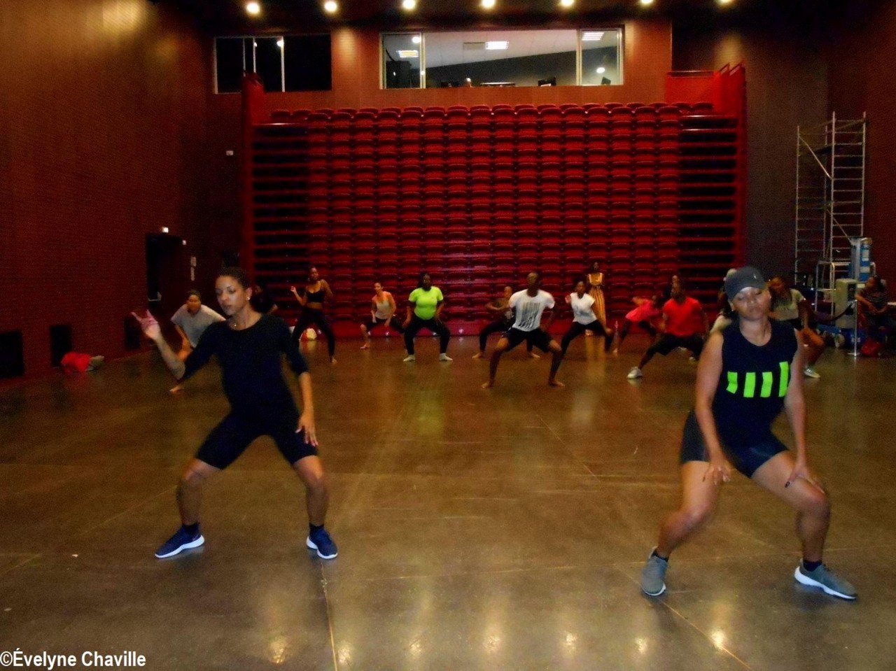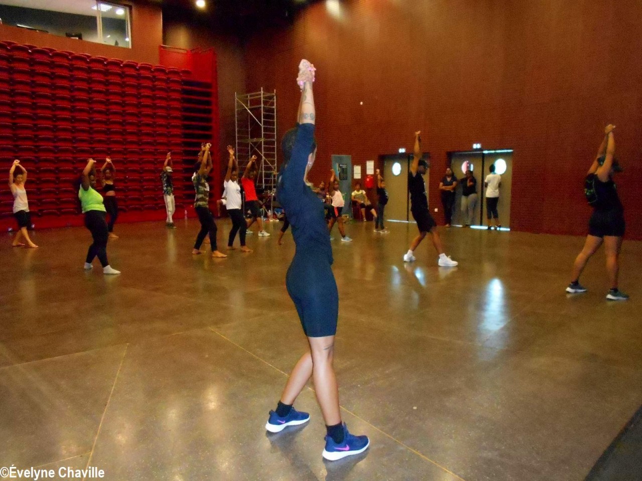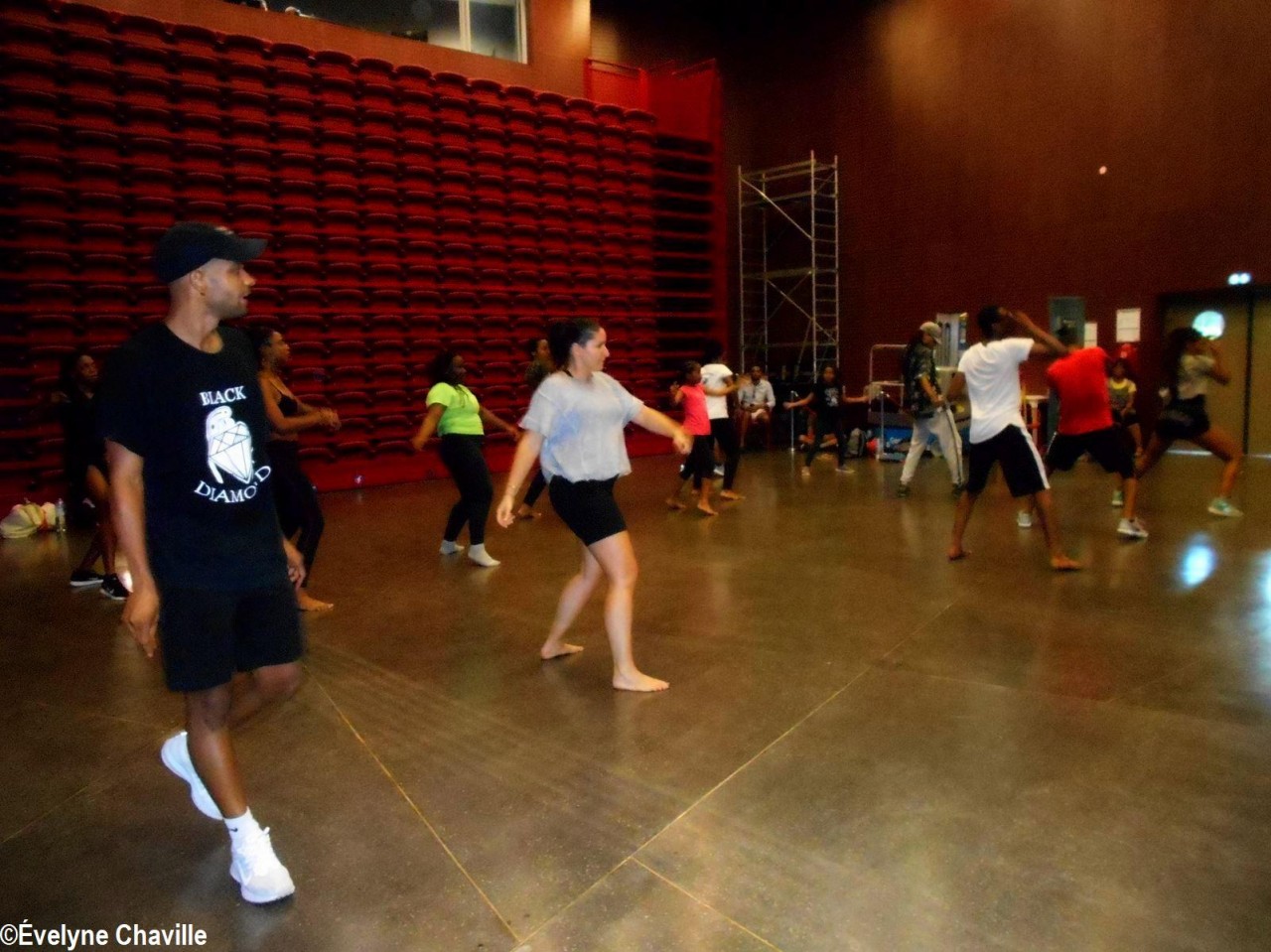 Personne n’a été déçu. En effet, le danseur est arrivé dans la Salle des Congrès et des Arts vivants du Mémorial ACTe à 15h00 avec ses deux danseuses assistantes, Cindy et Octavia. Après une courte introduction par la danseuse guadeloupéenne, Natty Montella, “Babas” s’est présenté à ses stagiaires. Puis, ses deux assistantes ont commencé les exercices d’échauffement et, au premier regard, tout le monde a compris qu’il fallait être plutôt souple… Ensuite, le “maître” – accompagné de ses deux danseuses – a montré aux participants ce qu’il attendait d’eux en exécutant la chorégraphie très énergique qu’il allait leur apprendre durant ces deux heures de cours intensifs. Après un “wouaw” d’émerveillement, les stagiaires ont commencé à répéter les différents pas. Au début, il y a eu beaucoup d’hésitation, mais petit-à-petit, encouragés par Sébastien Nicolas, la chorégraphie a pris forme, les mouvements n’étaient plus “mécaniques” mais naturels et on sentait que les élèves prenaient du plaisir à danser.