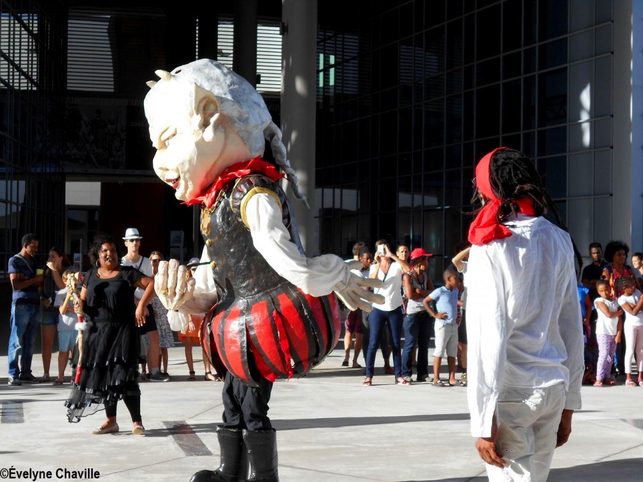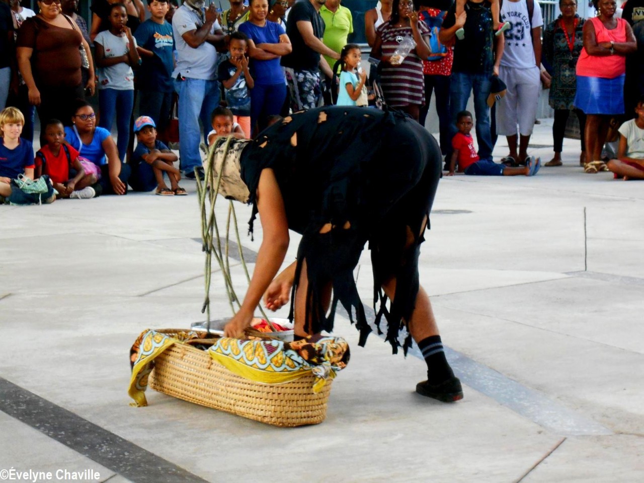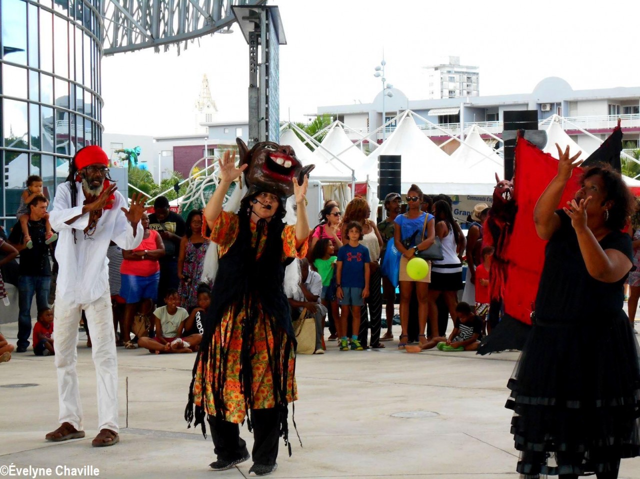 Il faut dire que cette oeuvre théâtrale avait parfaitement sa place dans cette manifestation qui était destinée à sensibiliser la population sur les problèmes liés à l’environnement et à conduire la Guadeloupe vers la production de “zéro déchet” grâce au recyclage, en 2035. En effet, les masques du spectacle ont été réalisés en papier mâché.