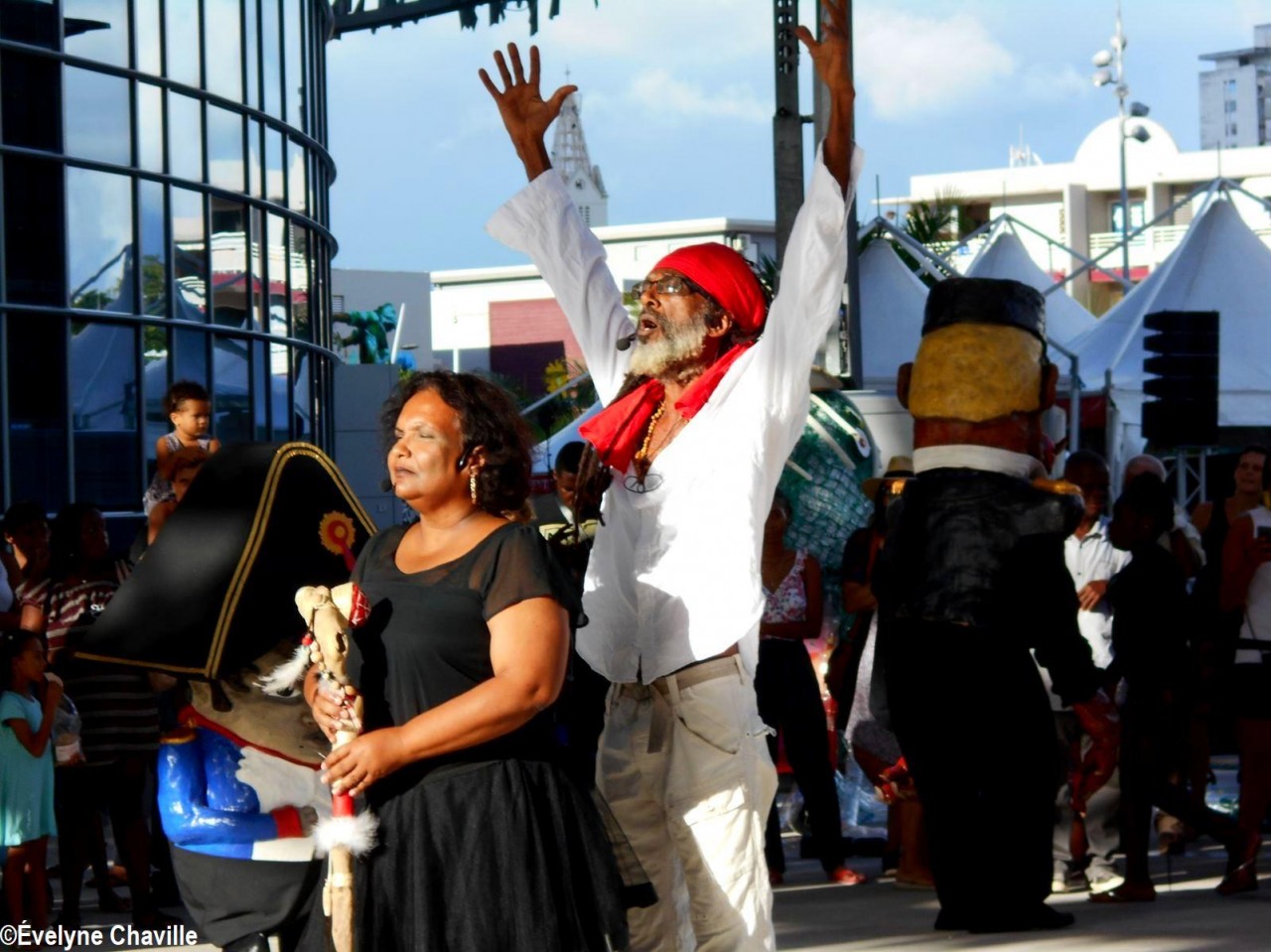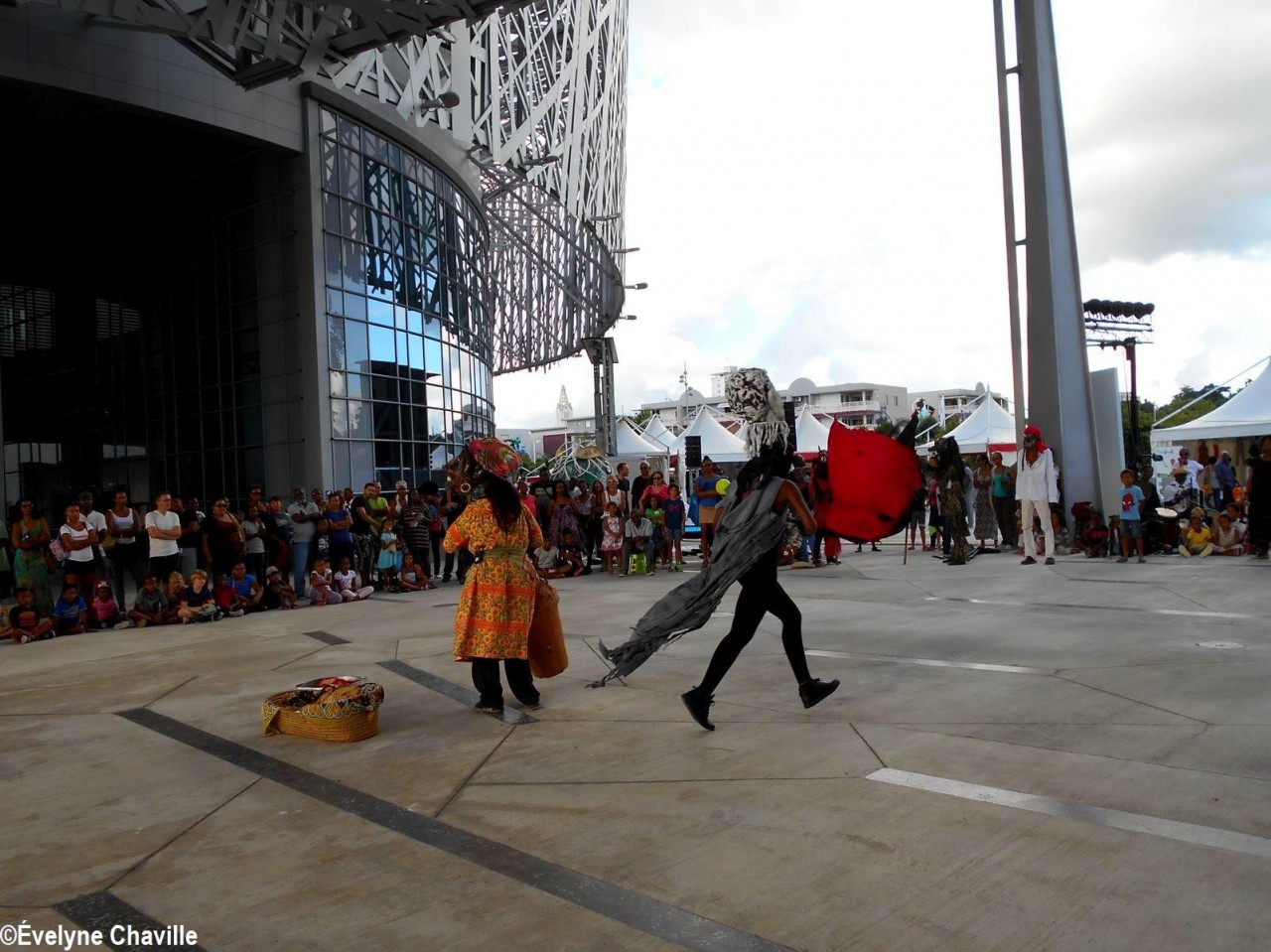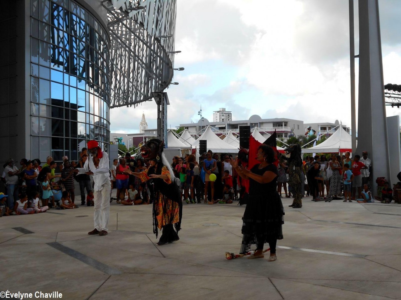Il faut dire que cette oeuvre théâtrale avait parfaitement sa place dans cette manifestation qui était destinée à sensibiliser la population sur les problèmes liés à l’environnement et à conduire la Guadeloupe vers la production de “zéro déchet” grâce au recyclage, en 2035. En effet, les masques du spectacle ont été réalisés en papier mâché.