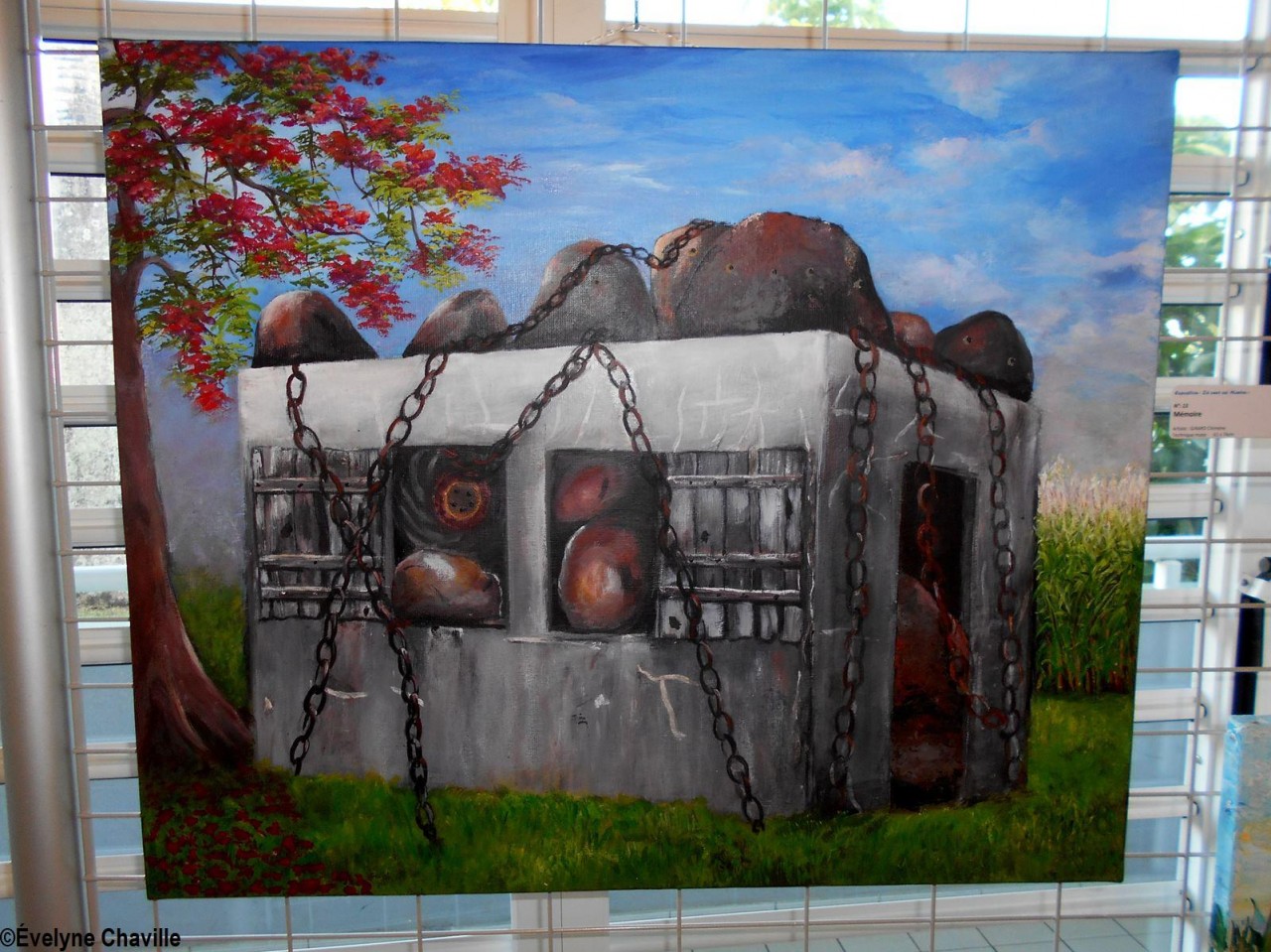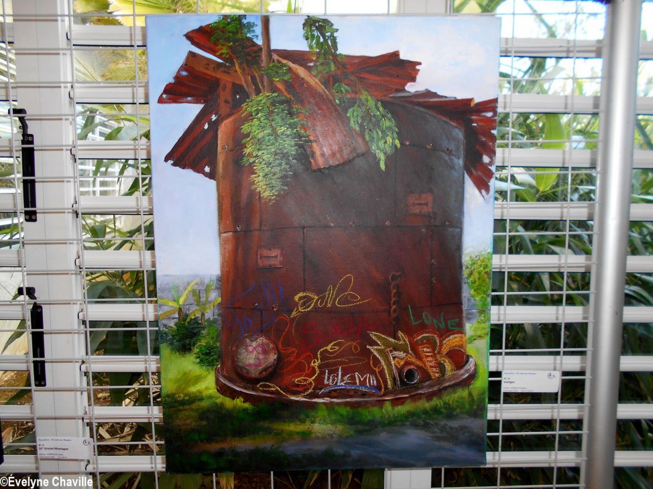 Dix artistes peintres et plasticiens – Jimmy Cétout, Françoise Charol, Claude Chovino, Céline Funfrock, Chimène Girard, Jean-Louis Halley, Florence Le Quellec, Rose-Marie Pascotto, Monique Rinaldo et Maurice Vital – ont participé à cette exposition intitulée “Zyé Ouvè asi Manten” (Regard sur Le Lamentin). Tous devaient présenter des oeuvres en relation avec cette commune du Nord de la Basse-Terre et ils ont été très inspirés par son histoire, son économie, son habitat, sa faune et sa flore, sa culture ou encore sa vie politique…