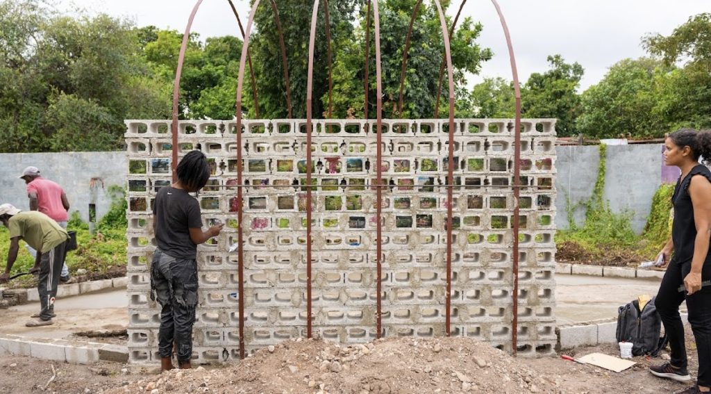 Là où se trouvait autrefois un parc tombé dans un état de délabrement sauvage, prospère aujourd’hui un espace public actif ravivé par l’art. Dans ce parc communautaire, les voisins se réunissent à l’ombre pour réfléchir et, au besoin, ils peuvent se nourrir et se soigner avec les plantes médicinales et comestibles qui s’épanouissent dans cet espace. À l’heure où les préoccupations climatiques se transforment en réalité de crise climatique, cette œuvre d’art publique écologique invite la communauté à retourner à la terre, à ses racines pour se nourrir. Dans ce “lieu commun sauvage”, de nouvelles graines de résilience climatique ont été plantées. Les soins environnementaux repose désormais entre les mains compétentes de la communauté, comme c’était le cas il y a longtemps. Pour survivre, les personnes et les plantes doivent coexister dans la jungle de béton qu’est Kingston.
