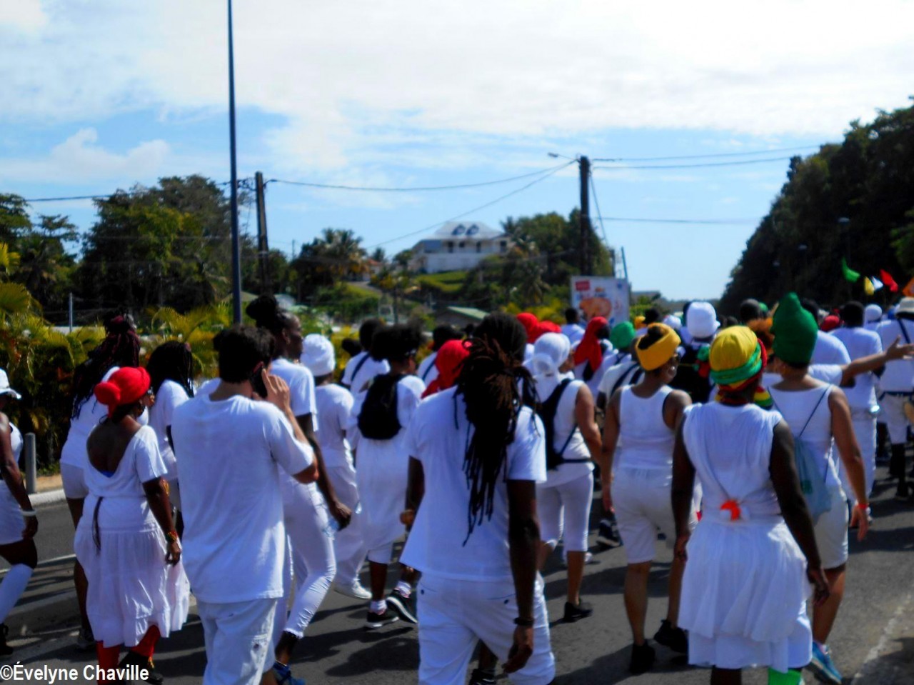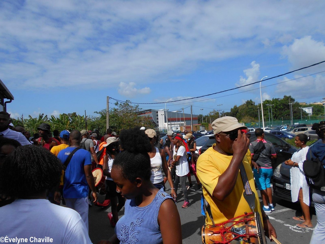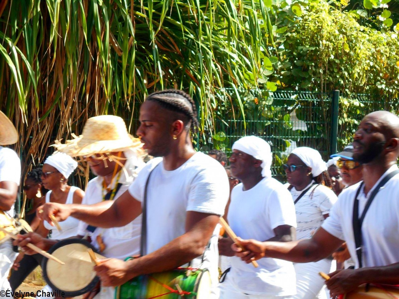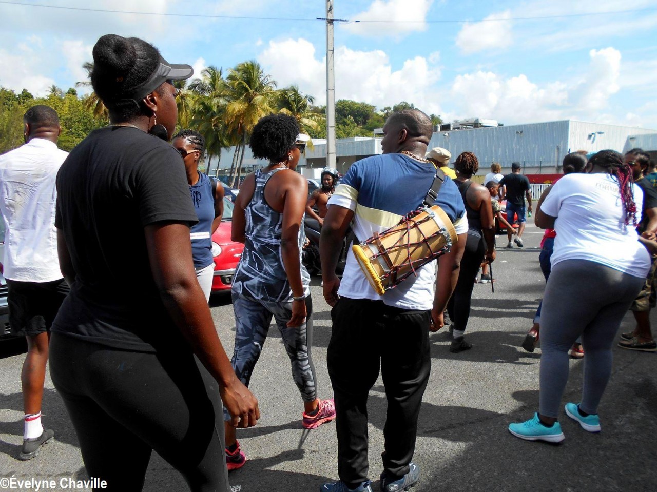 Comme chaque année, la tradition a été respectée, en ce 1er janvier de l’année 2020. Afin de marquer leur ouverture de la saison carnavalesque en Guadeloupe, certains groupes à peau (gwoup a po, en créole) comme Nasyon a Nèg Mawon, Klé la, Mas Ka Klé ou Moun Ki Moun, ont traversé les rues des villes des Abymes et de Pointe-à-Pitre pour se rendre au Gosier et prendre leur “ben démaré” (bain démarré) dans la mer. Ce défilé du Jour de l’An s’est fait au son des conques de lambi, des “chacha” et des tambours traditionnels (le fameux tambour recouvert d’une peau de cabri d’où le nom des groupes) en dansant quand on le pouvait mais surtout en marchant à vive allure. Même si le départ du défilé a eu lieu vers 8:00 du matin, au moment où le soleil commençait à se lever, les groupes ont effectué plusieurs haltes afin de permettre aux carnavaliers souvent habillés en blanc de supporter la chaleur. Tout au long du parcours, notamment au rond-point Blanchard, des amoureux du carnaval ont attendu patiemment les groupes pour partager l’ambiance de fête ou les accompagner à pied ou en voiture à la plage.