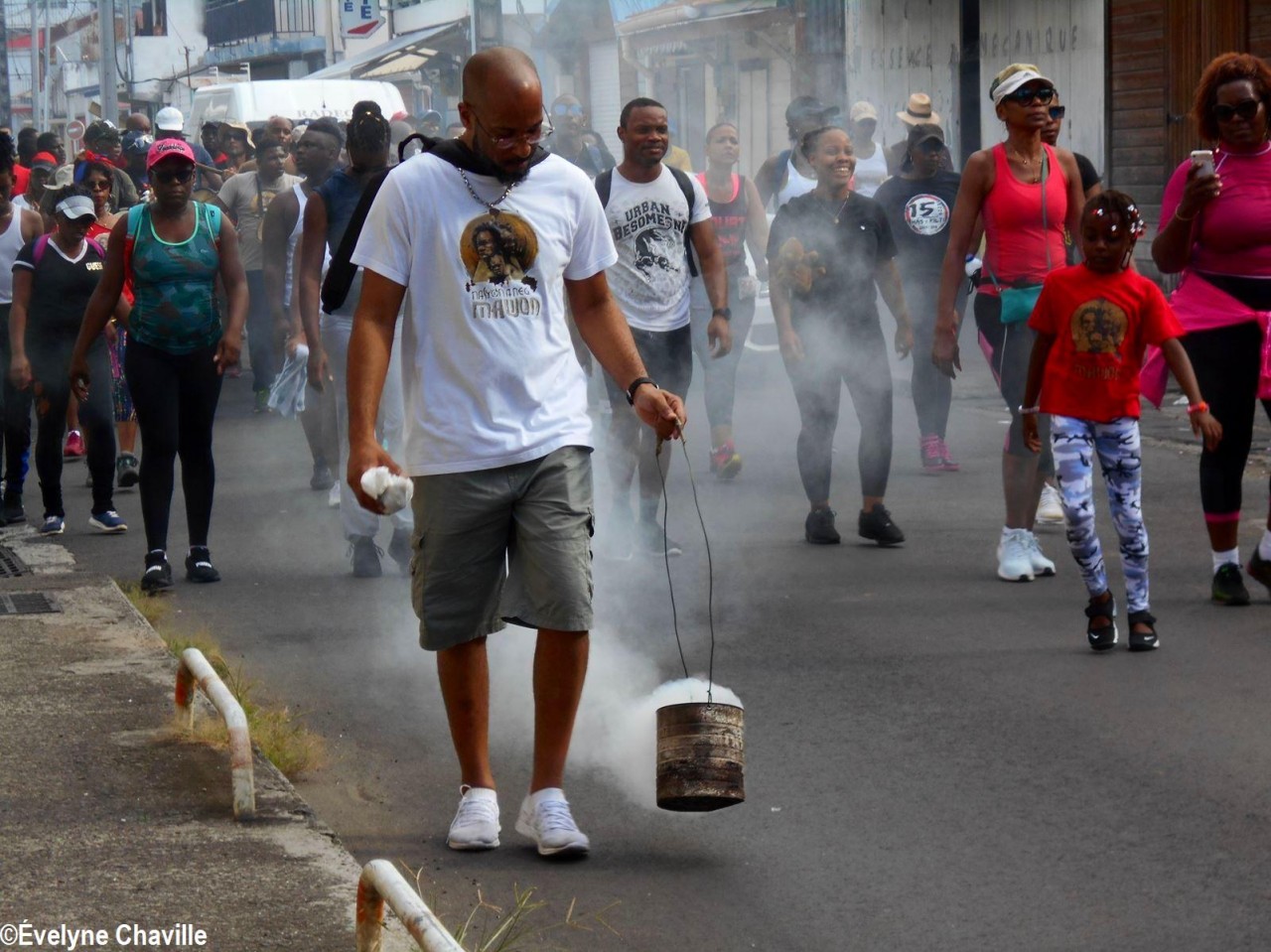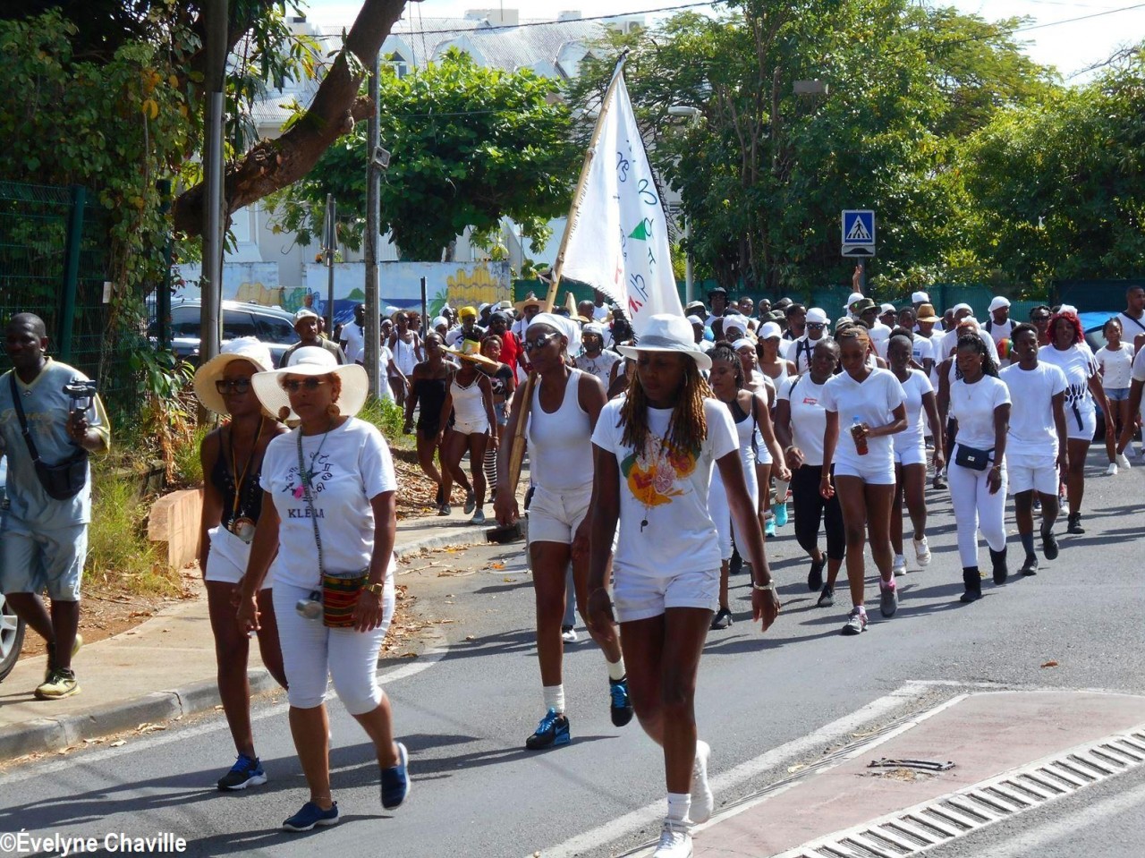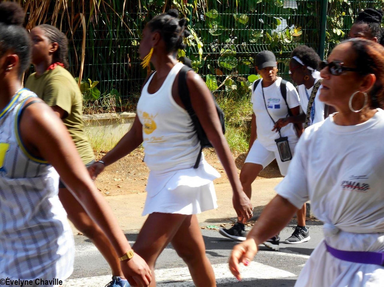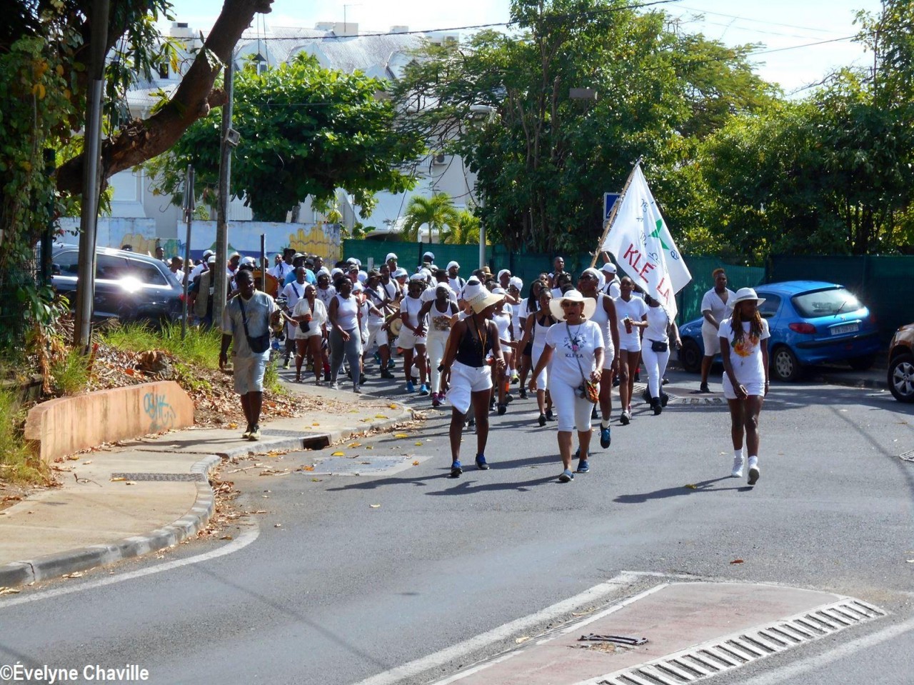 Comme chaque année, la tradition a été respectée, en ce 1er janvier de l’année 2020. Afin de marquer leur ouverture de la saison carnavalesque en Guadeloupe, certains groupes à peau (gwoup a po, en créole) comme Nasyon a Nèg Mawon, Klé la, Mas Ka Klé ou Moun Ki Moun, ont traversé les rues des villes des Abymes et de Pointe-à-Pitre pour se rendre au Gosier et prendre leur “ben démaré” (bain démarré) dans la mer. Ce défilé du Jour de l’An s’est fait au son des conques de lambi, des “chacha” et des tambours traditionnels (le fameux tambour recouvert d’une peau de cabri d’où le nom des groupes) en dansant quand on le pouvait mais surtout en marchant à vive allure. Même si le départ du défilé a eu lieu vers 8:00 du matin, au moment où le soleil commençait à se lever, les groupes ont effectué plusieurs haltes afin de permettre aux carnavaliers souvent habillés en blanc de supporter la chaleur. Tout au long du parcours, notamment au rond-point Blanchard, des amoureux du carnaval ont attendu patiemment les groupes pour partager l’ambiance de fête ou les accompagner à pied ou en voiture à la plage.