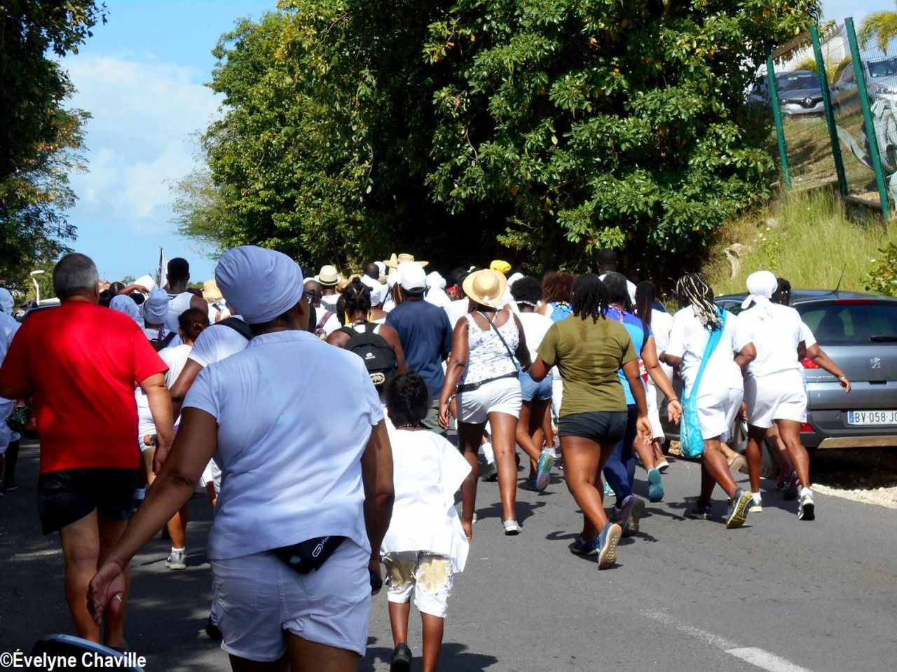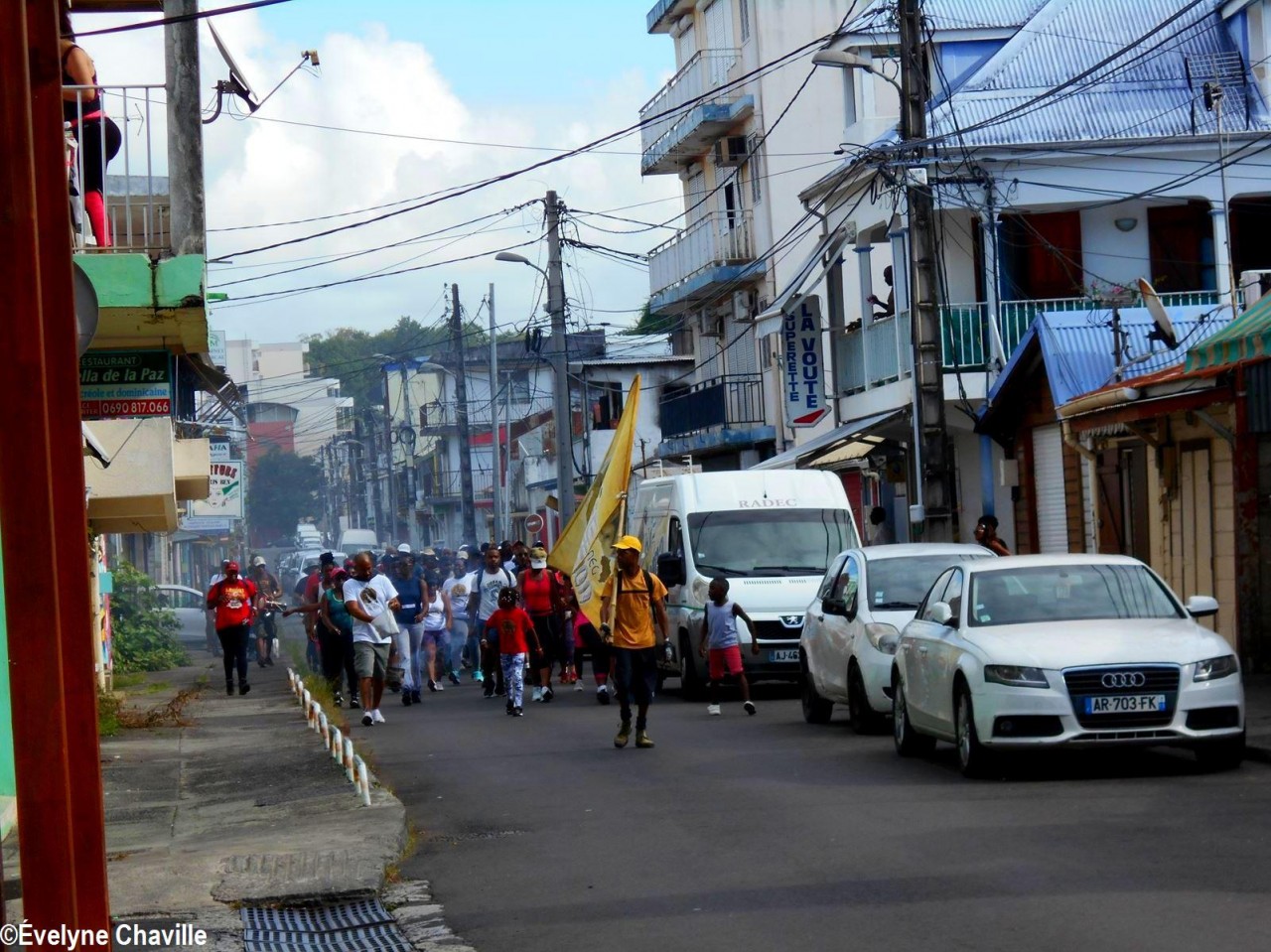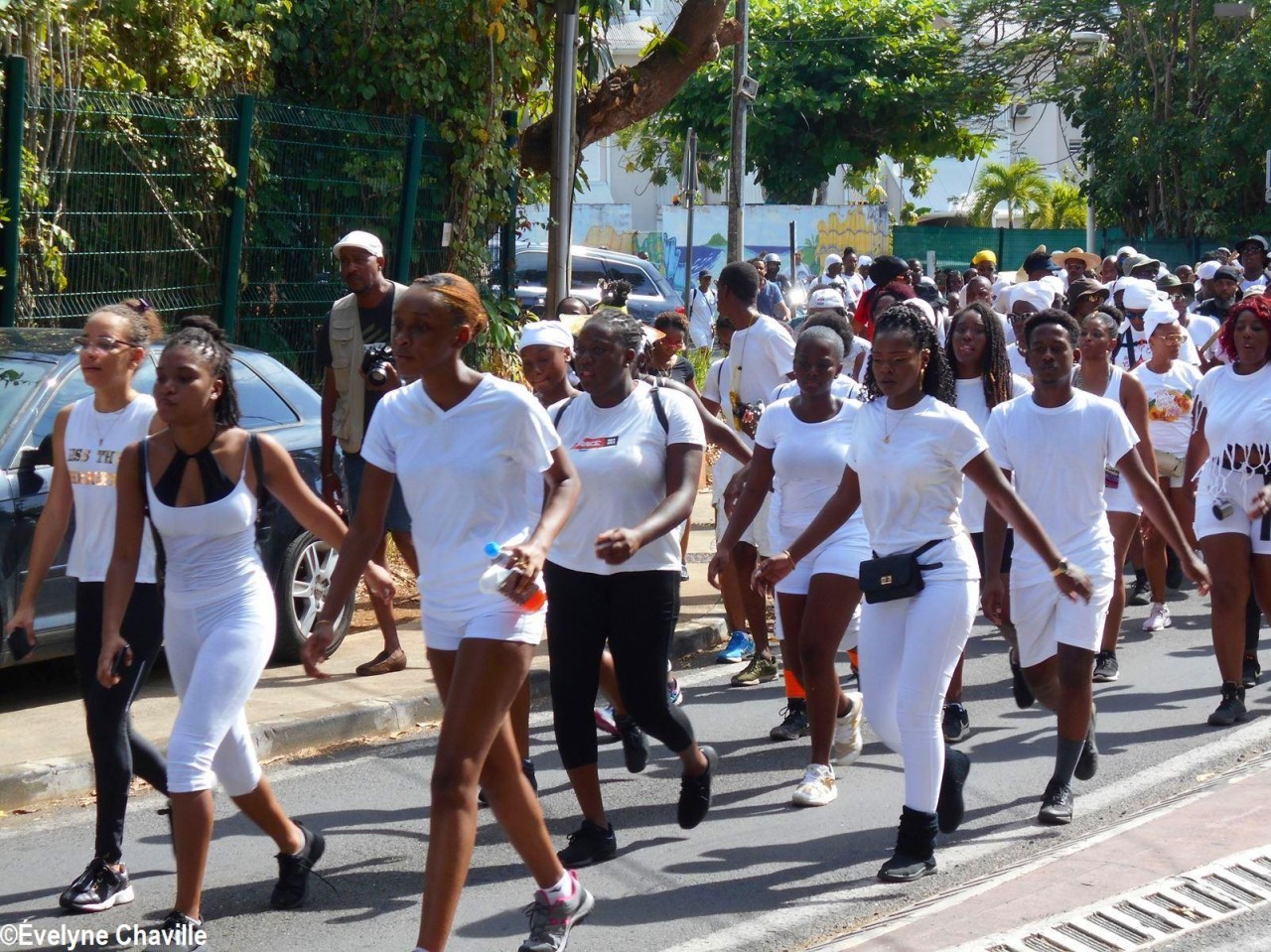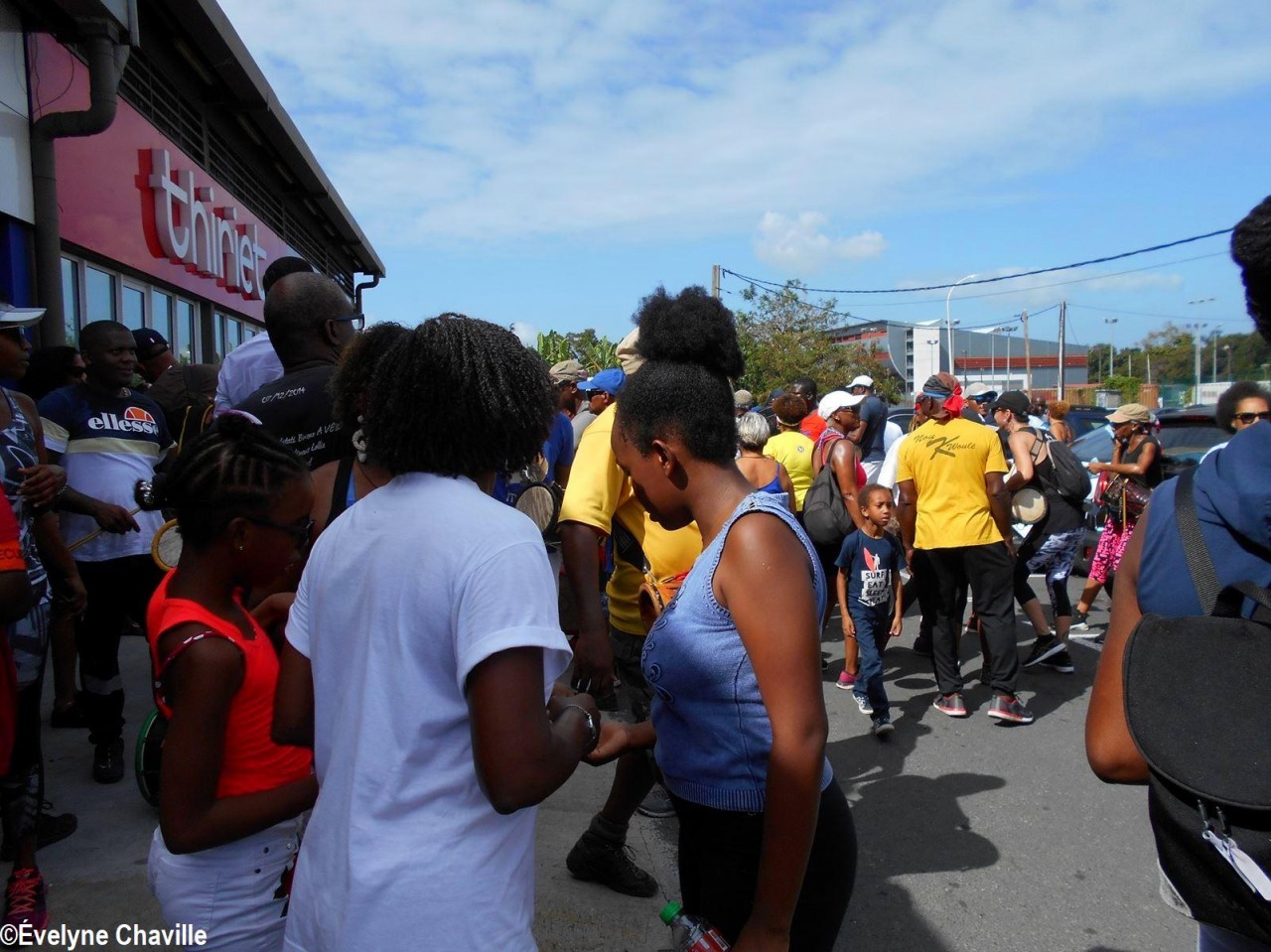 Comme chaque année, la tradition a été respectée, en ce 1er janvier de l’année 2020. Afin de marquer leur ouverture de la saison carnavalesque en Guadeloupe, certains groupes à peau (gwoup a po, en créole) comme Nasyon a Nèg Mawon, Klé la, Mas Ka Klé ou Moun Ki Moun, ont traversé les rues des villes des Abymes et de Pointe-à-Pitre pour se rendre au Gosier et prendre leur “ben démaré” (bain démarré) dans la mer. Ce défilé du Jour de l’An s’est fait au son des conques de lambi, des “chacha” et des tambours traditionnels (le fameux tambour recouvert d’une peau de cabri d’où le nom des groupes) en dansant quand on le pouvait mais surtout en marchant à vive allure. Même si le départ du défilé a eu lieu vers 8:00 du matin, au moment où le soleil commençait à se lever, les groupes ont effectué plusieurs haltes afin de permettre aux carnavaliers souvent habillés en blanc de supporter la chaleur. Tout au long du parcours, notamment au rond-point Blanchard, des amoureux du carnaval ont attendu patiemment les groupes pour partager l’ambiance de fête ou les accompagner à pied ou en voiture à la plage.
