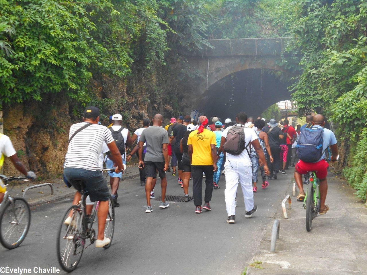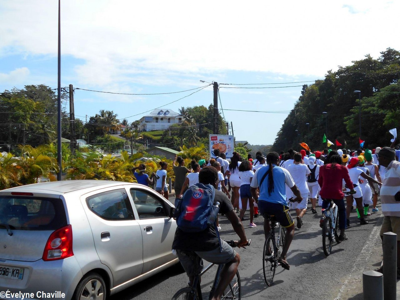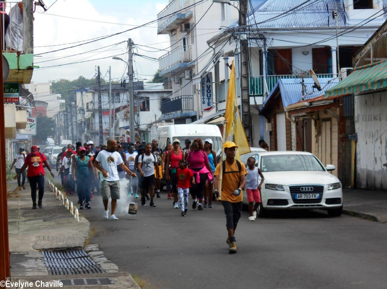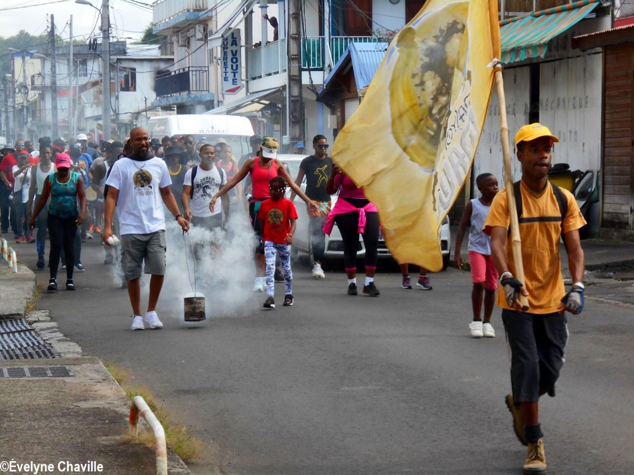 Comme chaque année, la tradition a été respectée, en ce 1er janvier de l’année 2020. Afin de marquer leur ouverture de la saison carnavalesque en Guadeloupe, certains groupes à peau (gwoup a po, en créole) comme Nasyon a Nèg Mawon, Klé la, Mas Ka Klé ou Moun Ki Moun, ont traversé les rues des villes des Abymes et de Pointe-à-Pitre pour se rendre au Gosier et prendre leur “ben démaré” (bain démarré) dans la mer. Ce défilé du Jour de l’An s’est fait au son des conques de lambi, des “chacha” et des tambours traditionnels (le fameux tambour recouvert d’une peau de cabri d’où le nom des groupes) en dansant quand on le pouvait mais surtout en marchant à vive allure. Même si le départ du défilé a eu lieu vers 8:00 du matin, au moment où le soleil commençait à se lever, les groupes ont effectué plusieurs haltes afin de permettre aux carnavaliers souvent habillés en blanc de supporter la chaleur. Tout au long du parcours, notamment au rond-point Blanchard, des amoureux du carnaval ont attendu patiemment les groupes pour partager l’ambiance de fête ou les accompagner à pied ou en voiture à la plage.