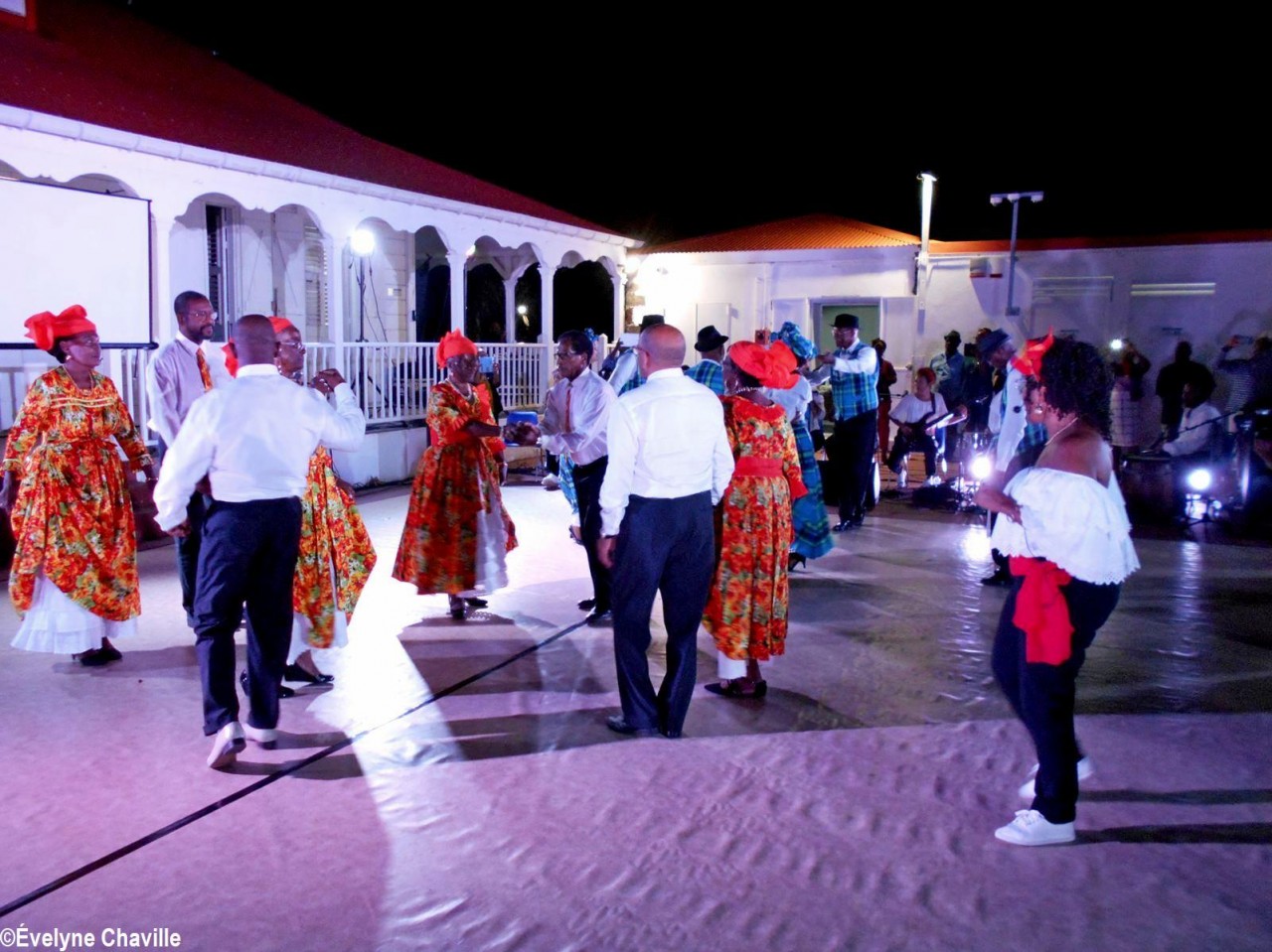 Durant cette soirée culturelle animée par les membres de la compagnie “Difé Kako”, un hommage a été rendu aux anciens musiciens et tout particulièrement à Iréné Reynoir Casimir dit “Négoce”, le talentueux accordéoniste guadeloupéen et amoureux des danses traditionnelles dont le quadrille, décédé en décembre 2017 à l’âge 68 ans. “Repriz”, le Centre Régional des Musiques et Danses Traditionnelles et Populaires de la Guadeloupe, est venu faire part de ses actions pour collecter, préserver et diffuser le patrimoine culturel immatériel de l’île. Deux associations de quadrille – “L’Âme des Roses” de Sainte-Rose et “Soleil du Sud” du Baillif – ont offert plusieurs danses avec la participation de Nita Alphonso, l’une des rares femmes à “commander” le quadrille guadeloupéen ce qui signifie dire aux danseurs les différentes figures à exécuter (la poule, l’été, le pantalon etc.). Quant à Isabelle Calabre, écrivain et journaliste qui était en résidence à l’habitation La Ramée jusqu’au 26 avril, elle a parlé au public de son futur livre intitulé “Contredanses et Quadrilles Créoles : Identités, Esthétiques et Histoire”. Afin de clore la manifestation, la chorégraphe Chantal Loïal a invité les spectateurs sur la piste pour danser avec sa troupe et les deux groupes de quadrille. Un grand moment de partage et de joie…