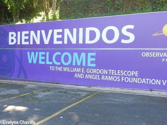 From January 24 to 30, 2014, with 7 colleagues and our teacher, I had the opportunity to stay in Puerto Rico for a language training course. On Sunday January 26, we left our hotel in San Juan around 9.00 am to go to the town of Arecibo on the north coast of the island and visit its observatory with the famous giant radio telescope located on a mountain’s crest. After 82 km and almost an hour’s drive we arrived at our destination. I thought I was in Guadeloupe crossing the countryside of Arecibo, it’s the Caribbean…