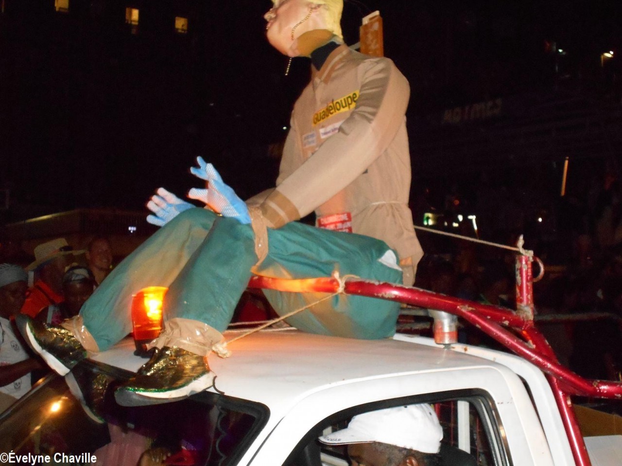 We regret to announce the death of King Vaval which occurred on Ash Wednesday, February 14, 2018. Nobody knows exactly how the King of all carnival lovers in Guadeloupe and Martinique died. His body was cremated that same Wednesday in front of a huge crowd come to say goodbye to him. Previously, carnival lovers who wore the colors of mourning (black, white, purple) organized a last parade in the streets to thank him for these six weeks of joy and celebration (from January 1 to February 14) he brought in their life.