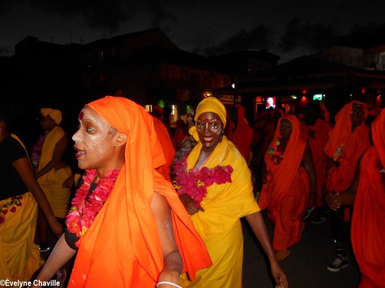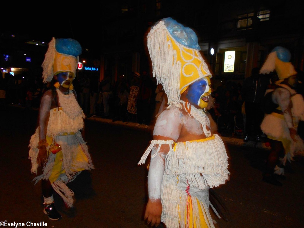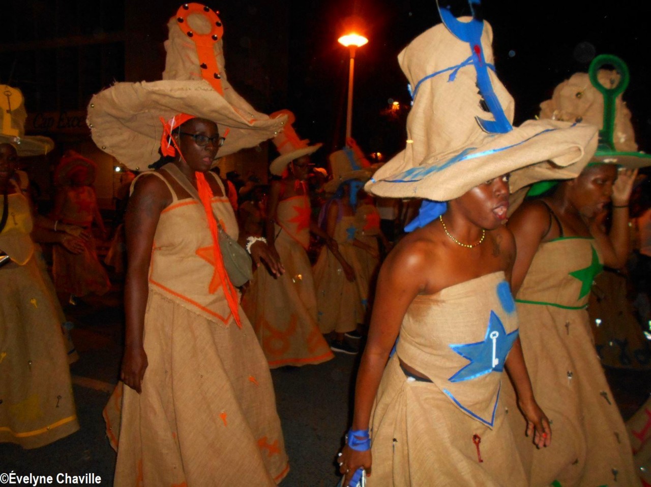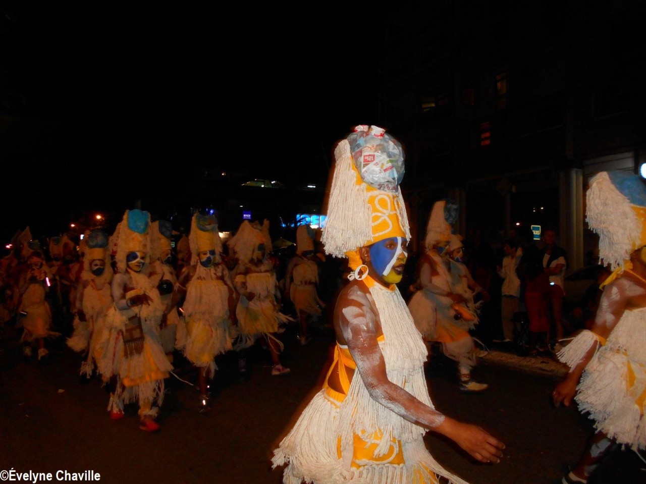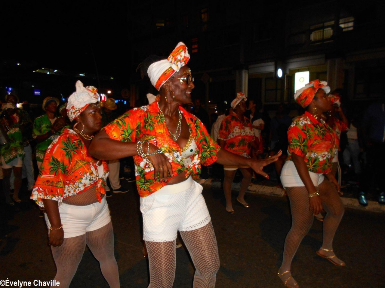 The themes were various but the most striking was that of the Ku Klux Klan, this American secret society founded around 1865 in the the South of the United States to impede the rights of black people which was dissolved in 1877, re-formed in 1915 and banned in 1928 which did not prevent it from continuing its activities… “Nou peké janmé pawdoné yo” (We will never forgive them) sang in Creole the carnaval lovers from the group called Point d’Interrogation, some members represented the hanged ones and were dressed in black with the rope around their neck and others their executioners, were dressed in white… All that took place at a fast pace and with the incense smoke, a compulsory ingredient for the “skin groups” that is intented to keep the evil spirits away, among other things…
