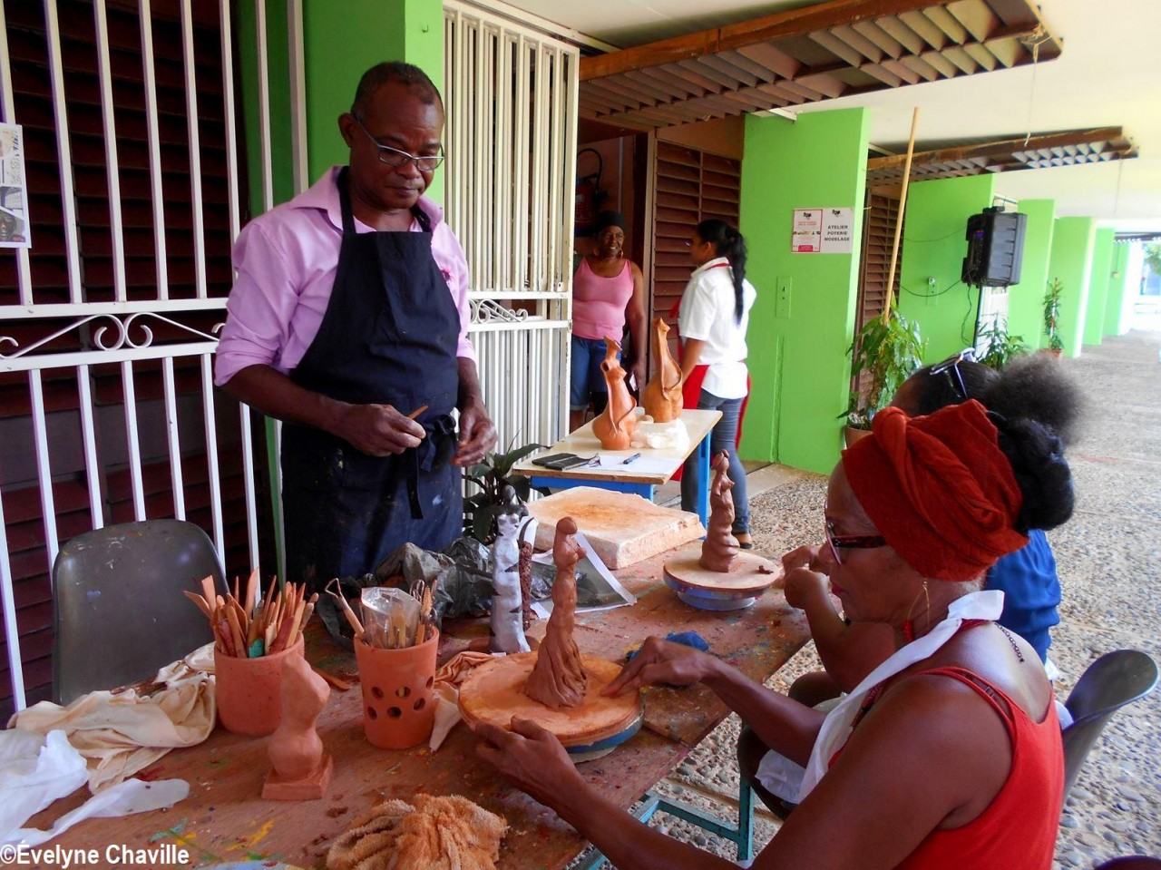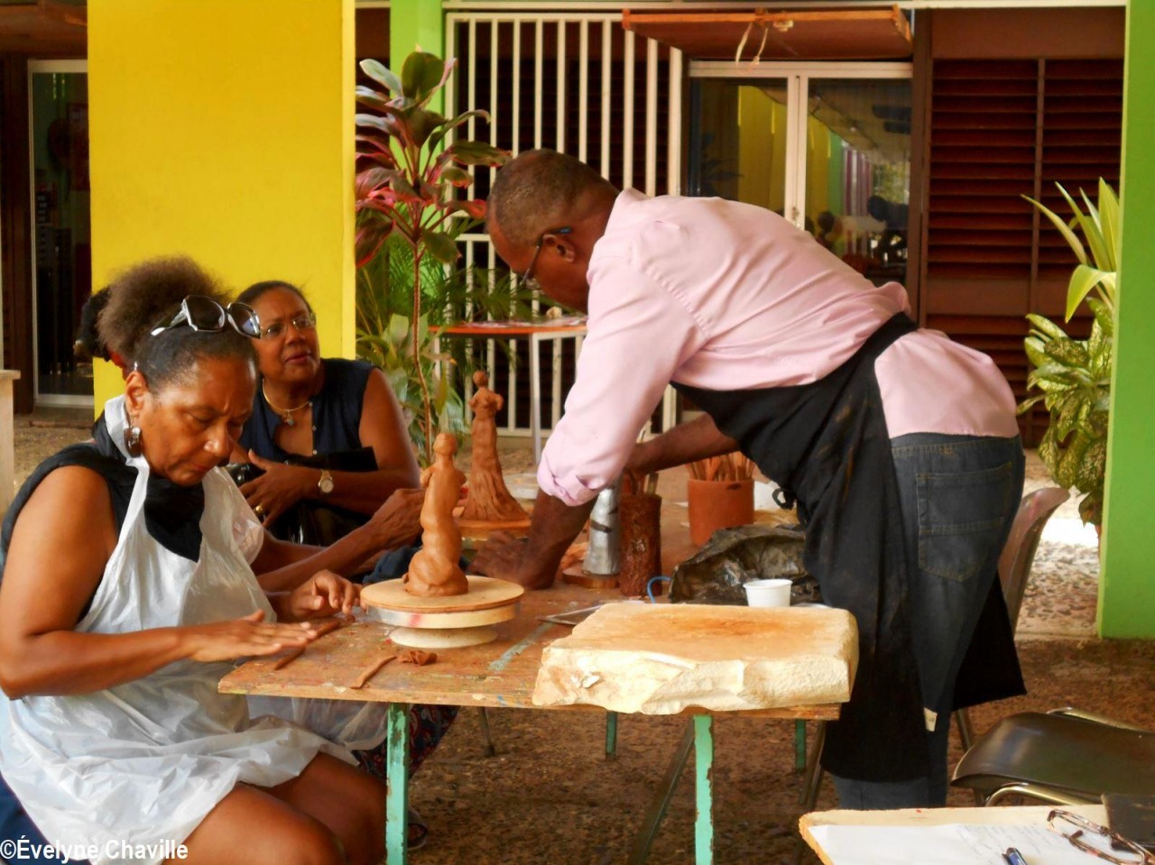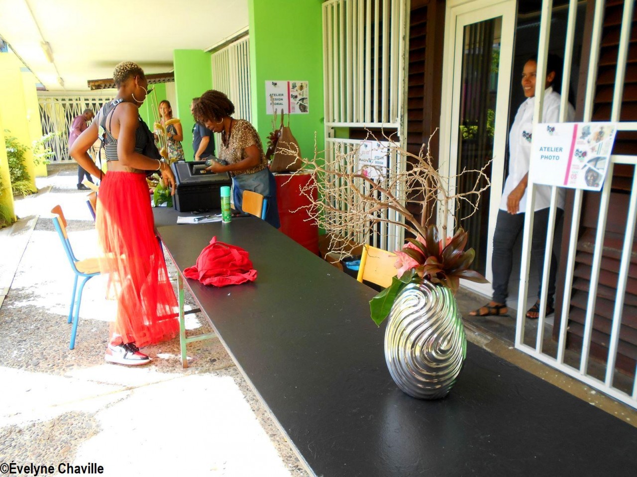 The public responded to the invitation of the Centre des Métiers d’Art because, despite the many obligations of Saturday (housework, market, shopping etc.), over a hundred visitors came to meet the teaching staff. Among them, there were not only people from the city of Pointe-à-Pitre, indeed some came from Basse-Terre or Sainte-Rose… Schoolchildren, students, employees, job seekers or retired people were able to ask all the questions they wanted to the trainers of the various workshops, to practise some activities such as pottery or mosaic and to enroll for courses offered by this association which is a pioneer in teaching and democratization of artistic activities in Guadeloupe since 1973. In spite of the approach of fifty, the CMA has continuously diversified its workshops which are today drawing, plastic arts, modelling, pottery, sculpting, paper mache, photography, comics, computer graphics, floral design, wickerwork, sewing.