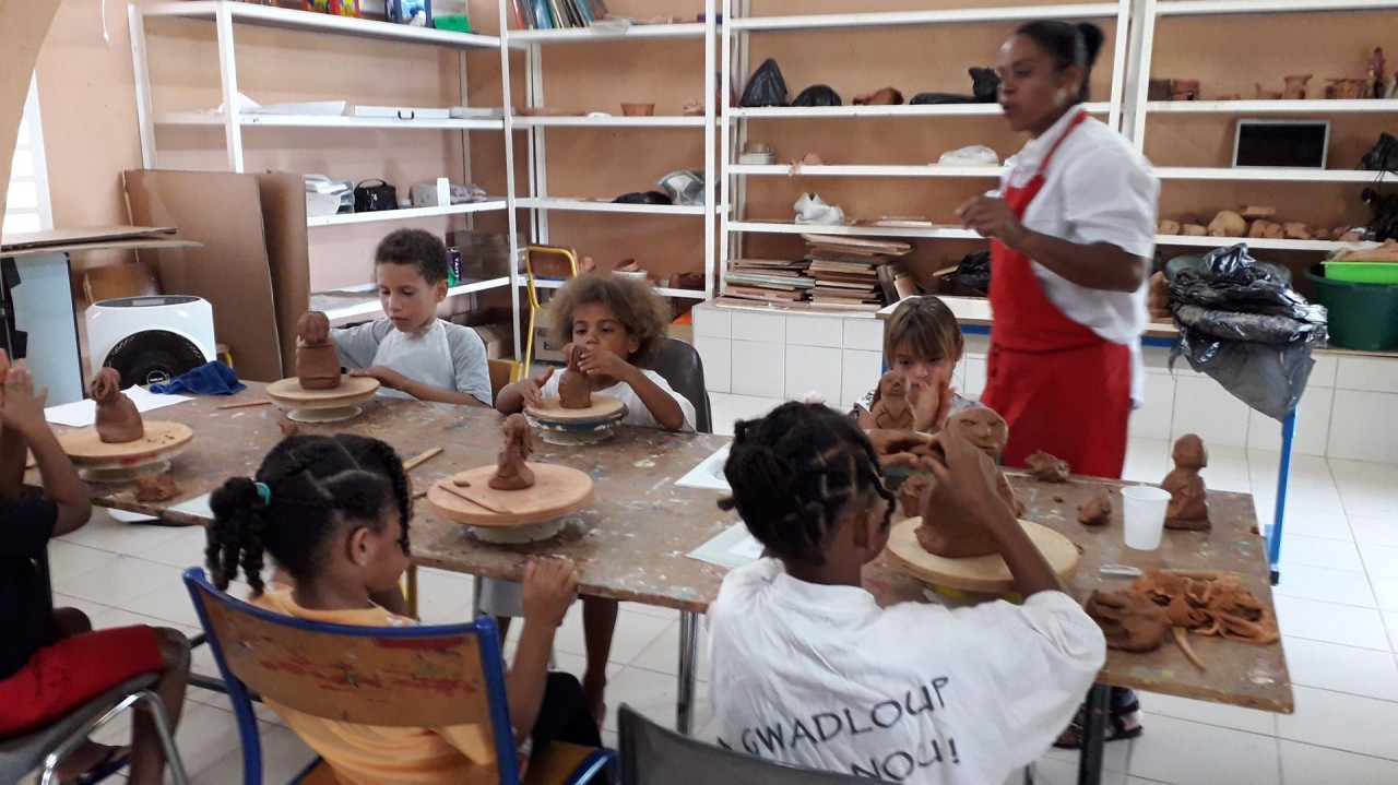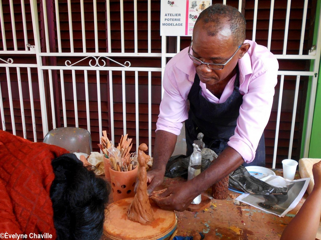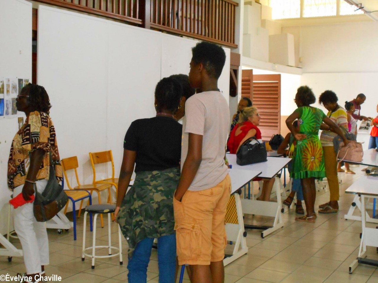 The public responded to the invitation of the Centre des Métiers d’Art because, despite the many obligations of Saturday (housework, market, shopping etc.), over a hundred visitors came to meet the teaching staff. Among them, there were not only people from the city of Pointe-à-Pitre, indeed some came from Basse-Terre or Sainte-Rose… Schoolchildren, students, employees, job seekers or retired people were able to ask all the questions they wanted to the trainers of the various workshops, to practise some activities such as pottery or mosaic and to enroll for courses offered by this association which is a pioneer in teaching and democratization of artistic activities in Guadeloupe since 1973. In spite of the approach of fifty, the CMA has continuously diversified its workshops which are today drawing, plastic arts, modelling, pottery, sculpting, paper mache, photography, comics, computer graphics, floral design, wickerwork, sewing.