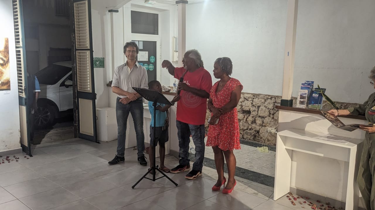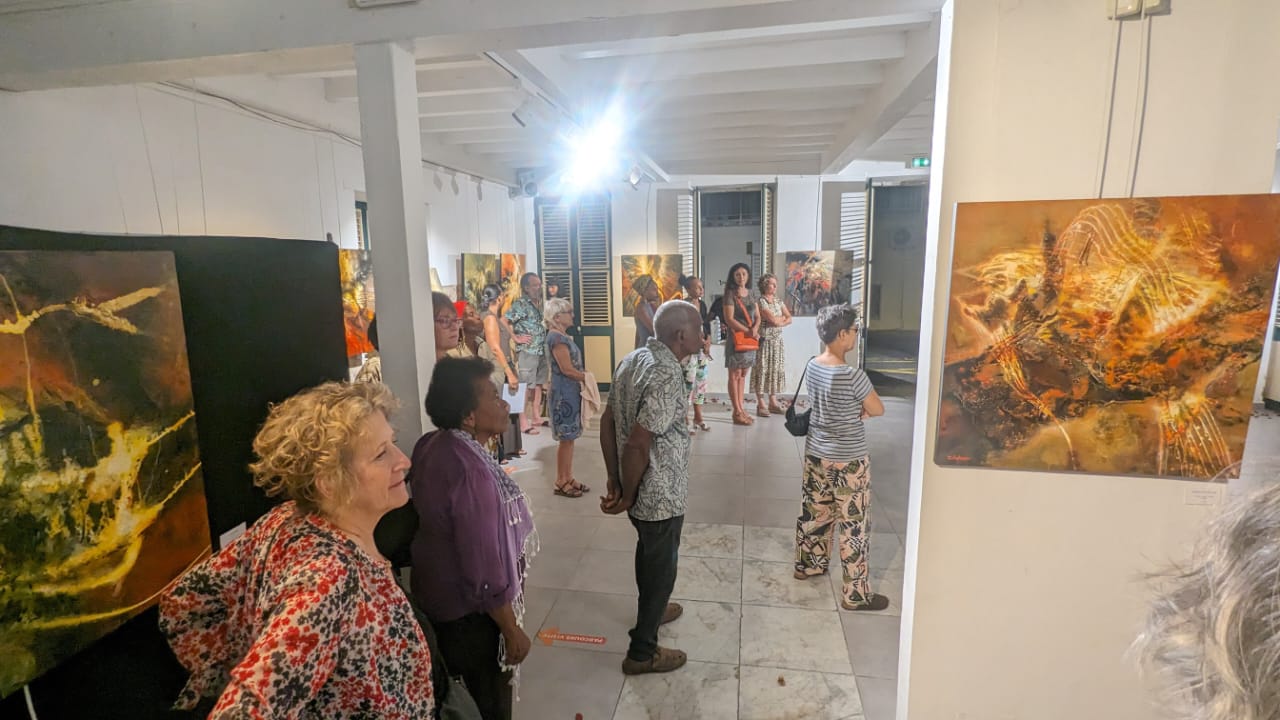 On March 22, at 6:30 p.m., the public accepted his invitation and that of his partners (the Jipé F’Awt association, chaired by painter Jipé Fronton, and the town hall of the administrative centre) to visit his first exhibition. In a very friendly atmosphere, painting enthusiasts saw in preview the artist’s magnificent works on display at the Maison du Patrimoine in Basse-Terre, and learned more about his artistic career.