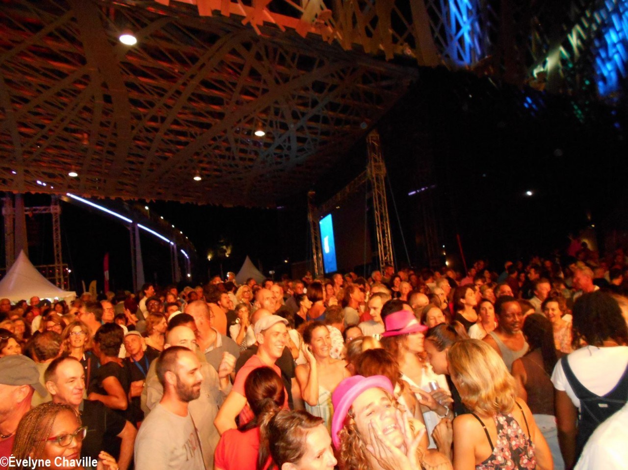 The singer who has a young man’s body came on stage wearing a nice black jacket and black leather trousers. He sang rock, French songs like “On the road again” and, of course, reggae rhythm like the famous “Stand the Ghetto” or latin rhythm like “La Salsa”.