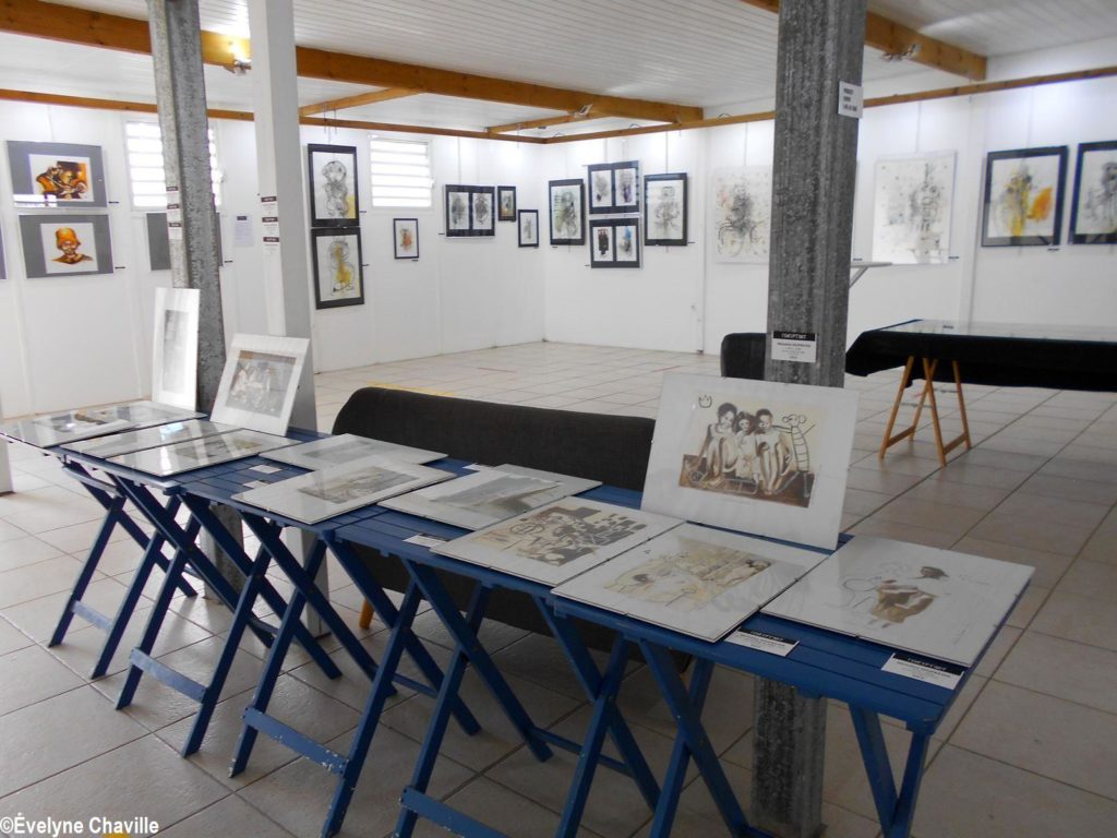 Afterwards, there was an artist who lives in Canada, Marion H. Gérard, who paints in the water. She came in December with a friend to visit the area, she was looking for someone to take her scuba-diving, my daughter being a diving instructor, she said that not only she had found an instructor but also an art gallery! When she came back to Canada, she called me to tell me that she will be in Guadeloupe from January to March and she would like to book the gallery for an exhibition. She painted about twenty paintings here, ten of which under water : she goes down to 10 or 15 metres in the sea, she sits down and she paints with oil, it’s very impressive. There are six in the world doing this.